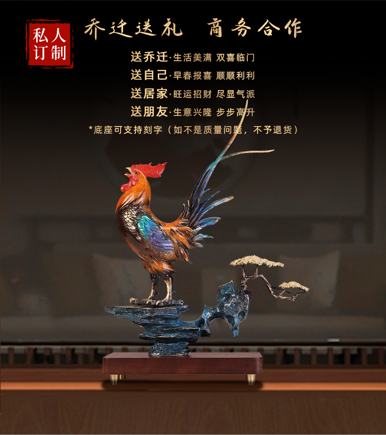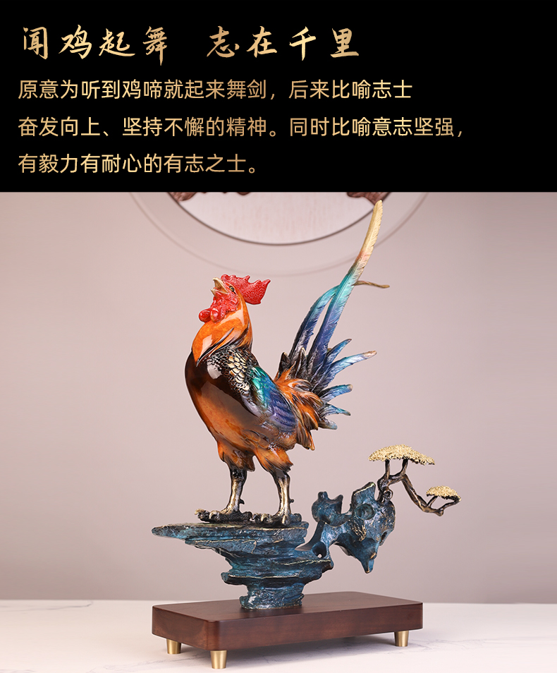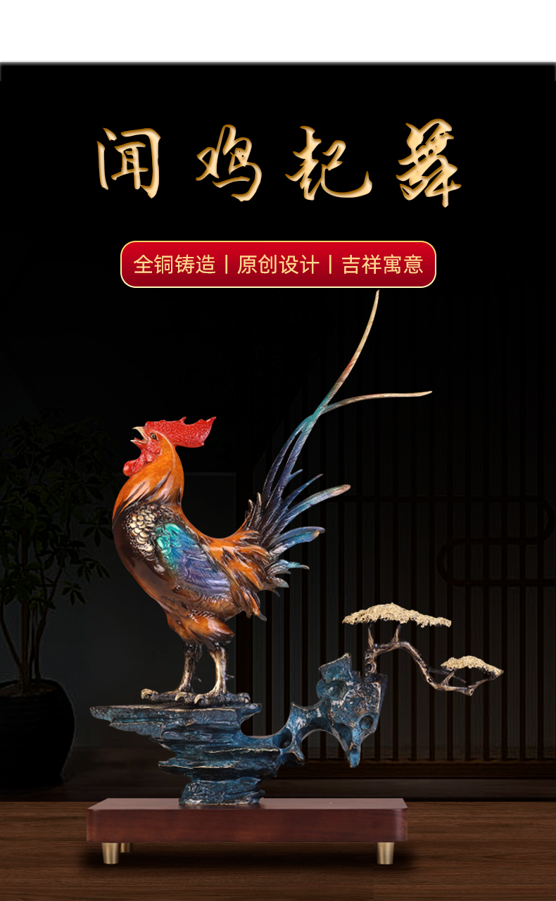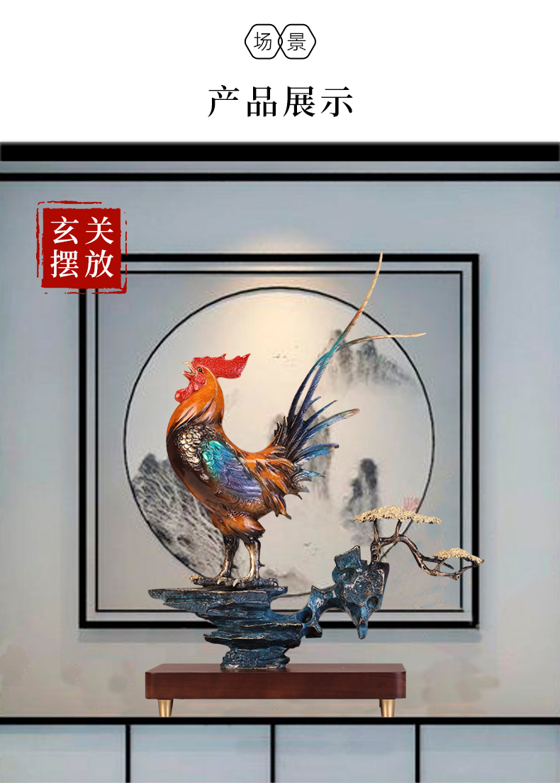 大公鸡纯铜摆件客厅玄关装饰品办公室茶室铜鸡摆设公司开业乔迁礼品
