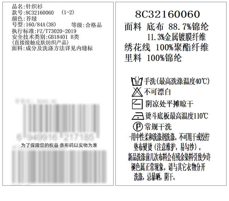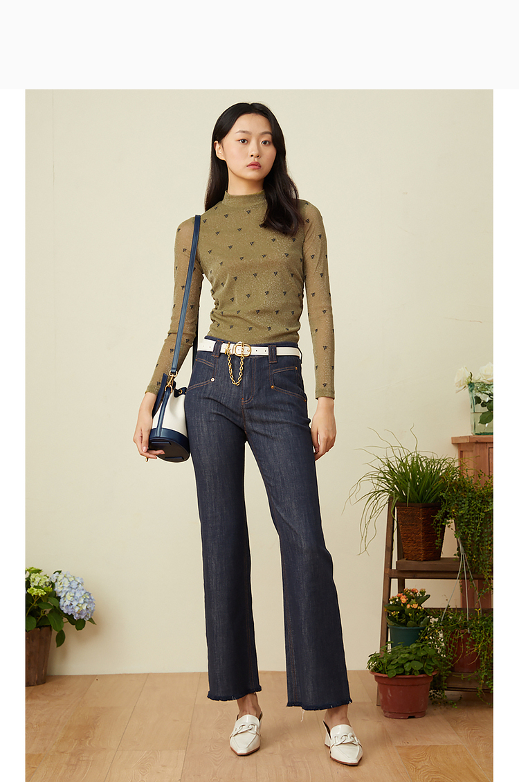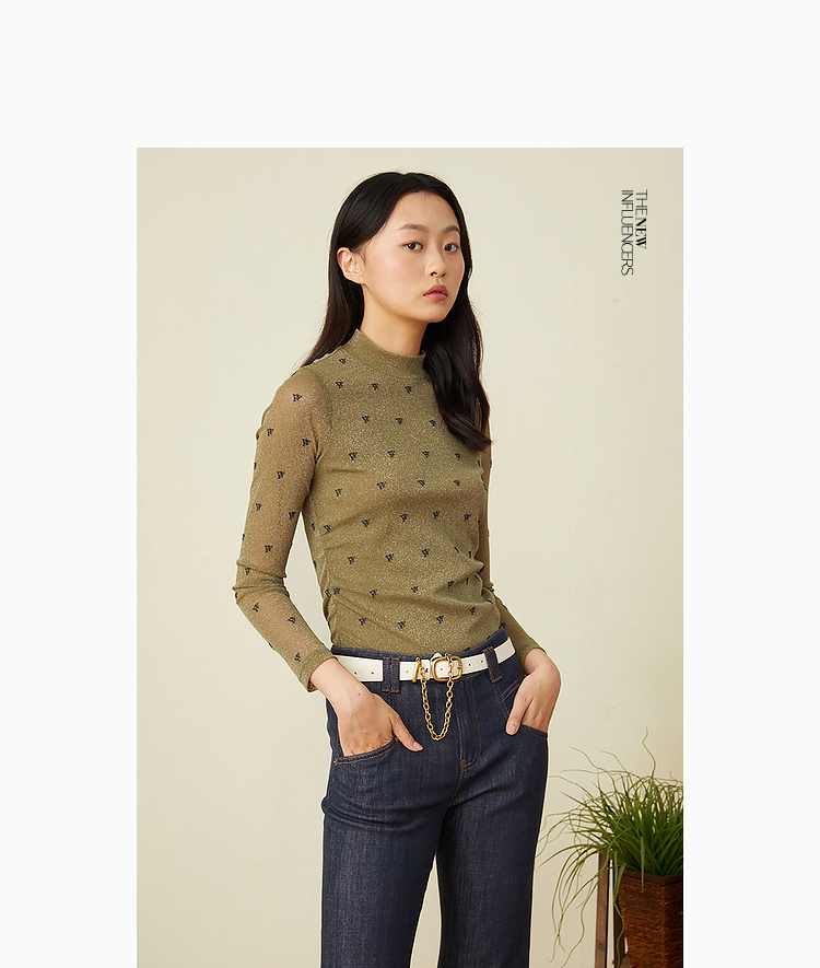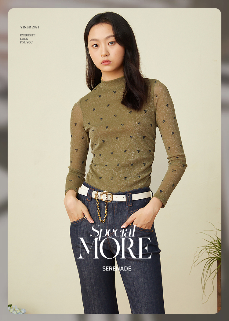 YINER音儿2022春季新款亮丝拼接字母绣花针织衫8c32160060