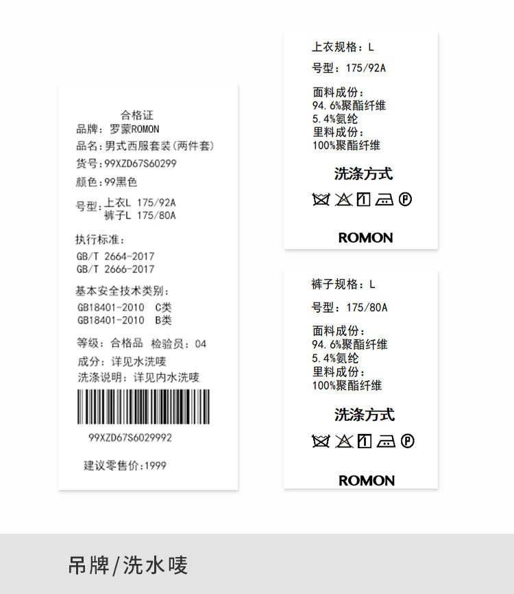 面料成份:94.6%聚酯纤维5.4%氨纶,里料成份:100%聚酯纤维
