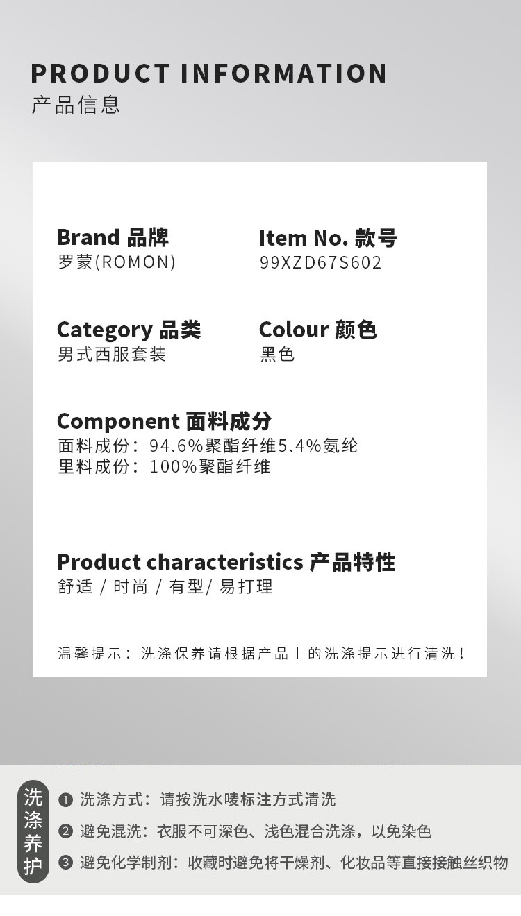 【西服+西裤】罗蒙春秋西服套装男士两件套舒适通勤松紧腰设计百搭西装