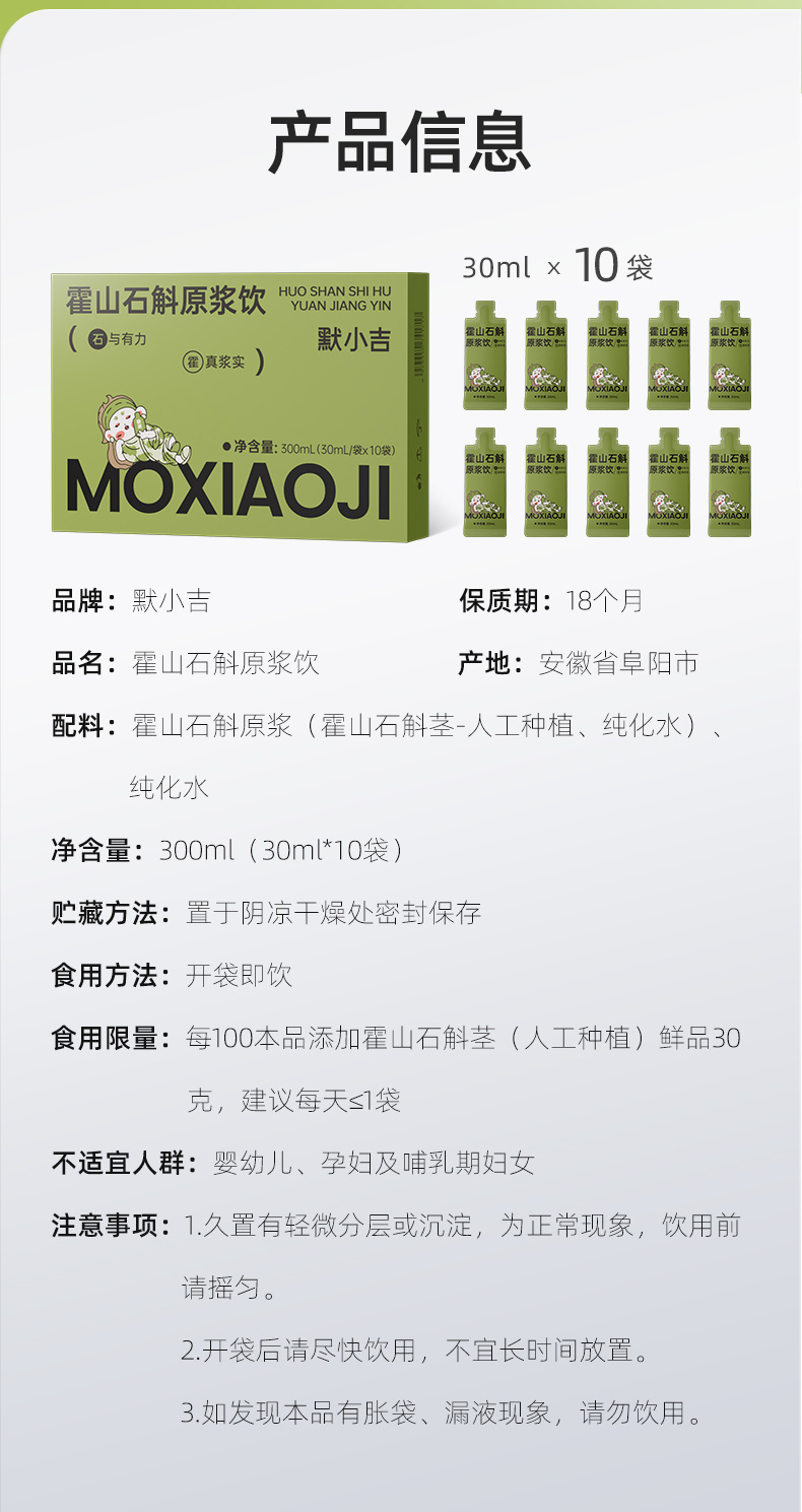 默小吉霍山石斛原浆30ml*10袋装