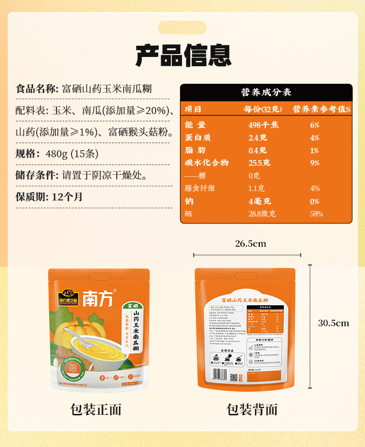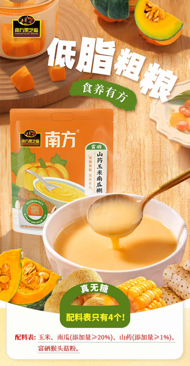 南方黑芝麻富硒山药玉米南瓜糊480g0添加0糖药食同源低脂粗粮营养早餐