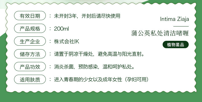 ZIAJA齐叶雅 蒲公英私处护理液 200ML 波兰