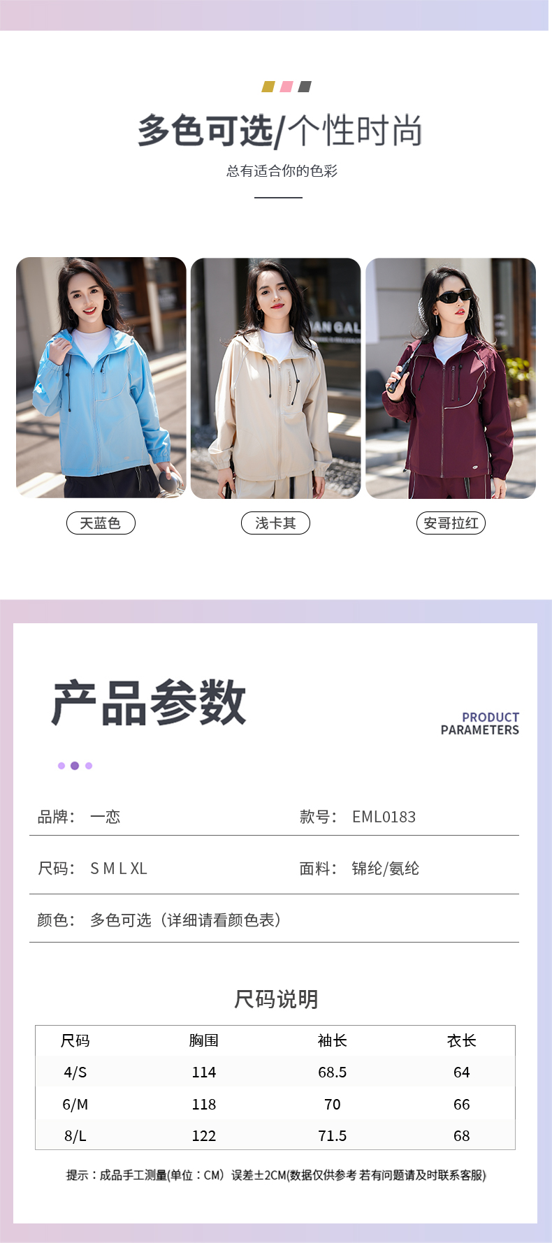 一恋•普拉提 2025春季新款透气薄款防晒服连帽反光拉链骑行薄款外套EML0183