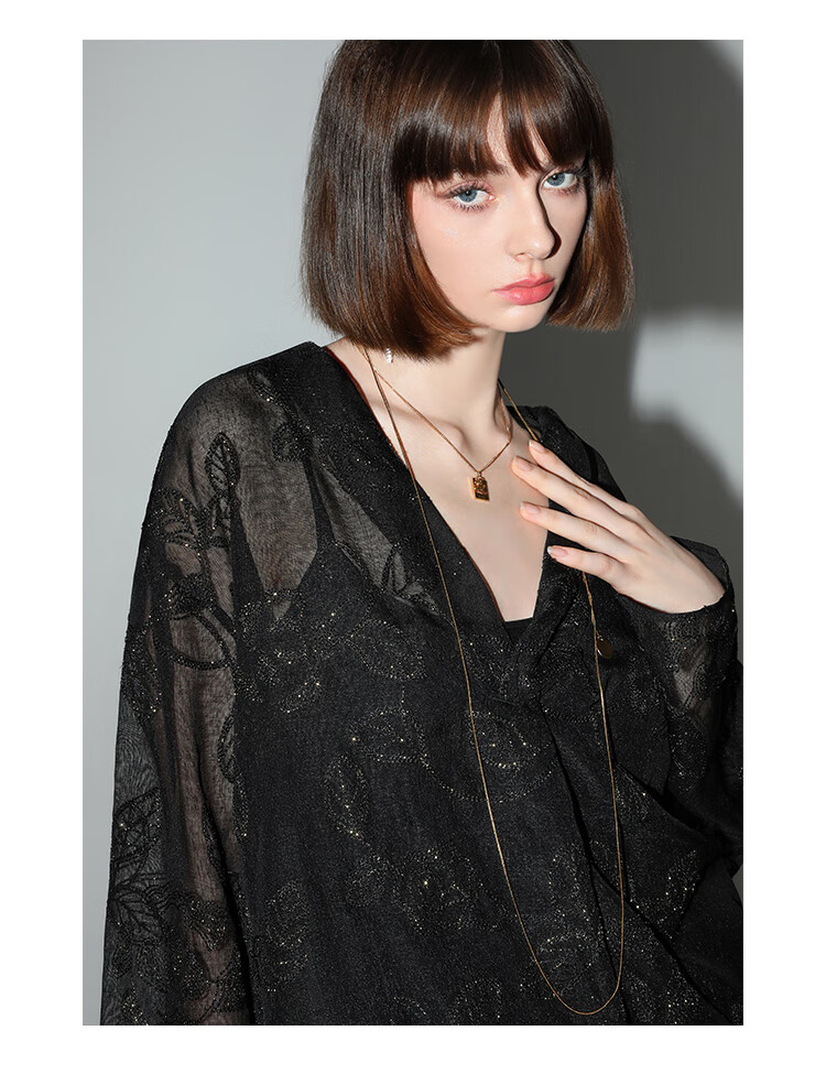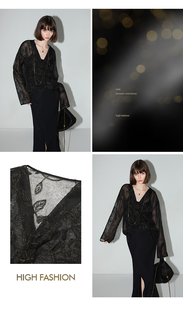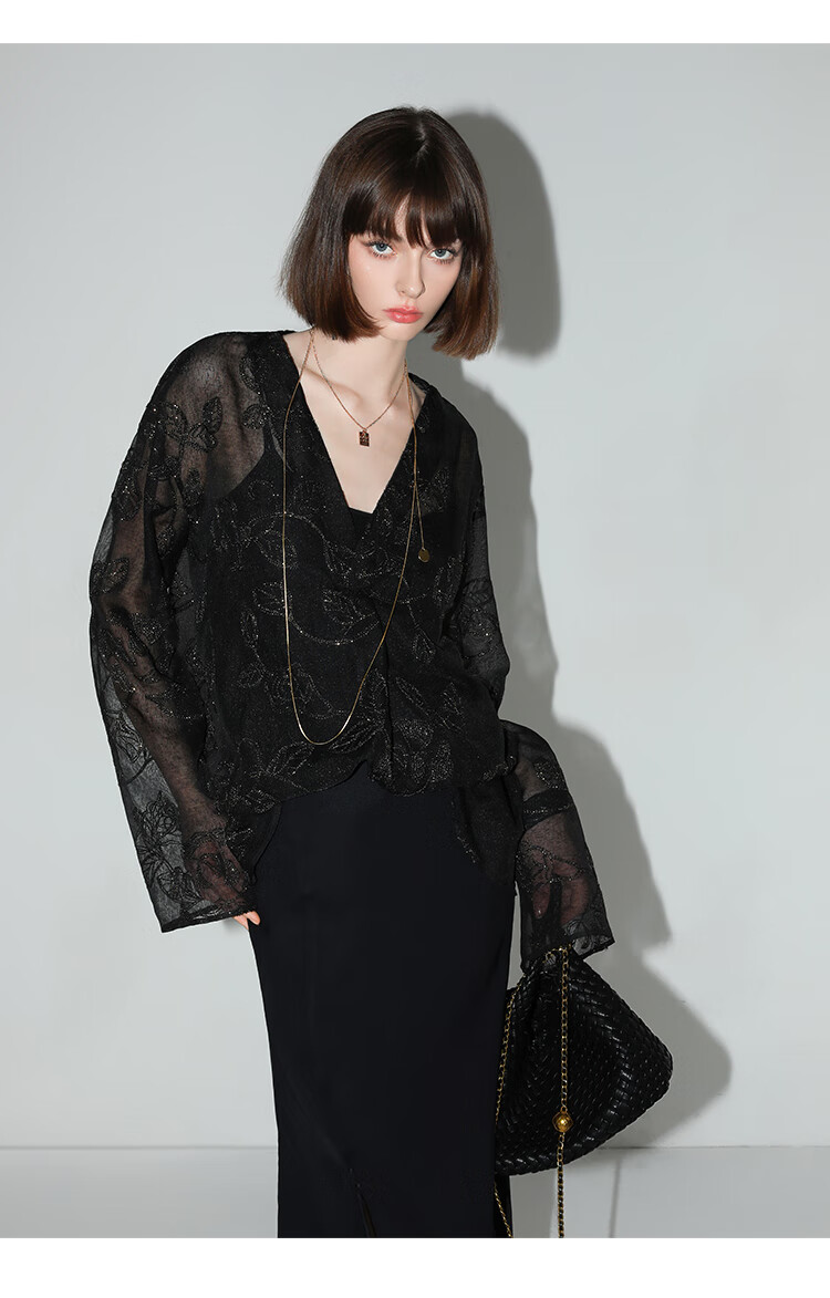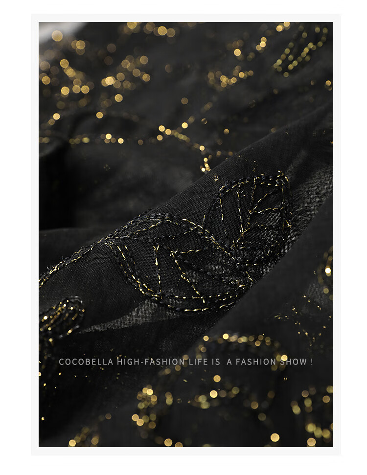 COCOBELLA金葱刺绣肌理感气质衬衫喇叭袖罩衫吊带套装SR3068