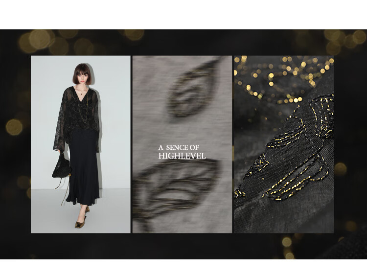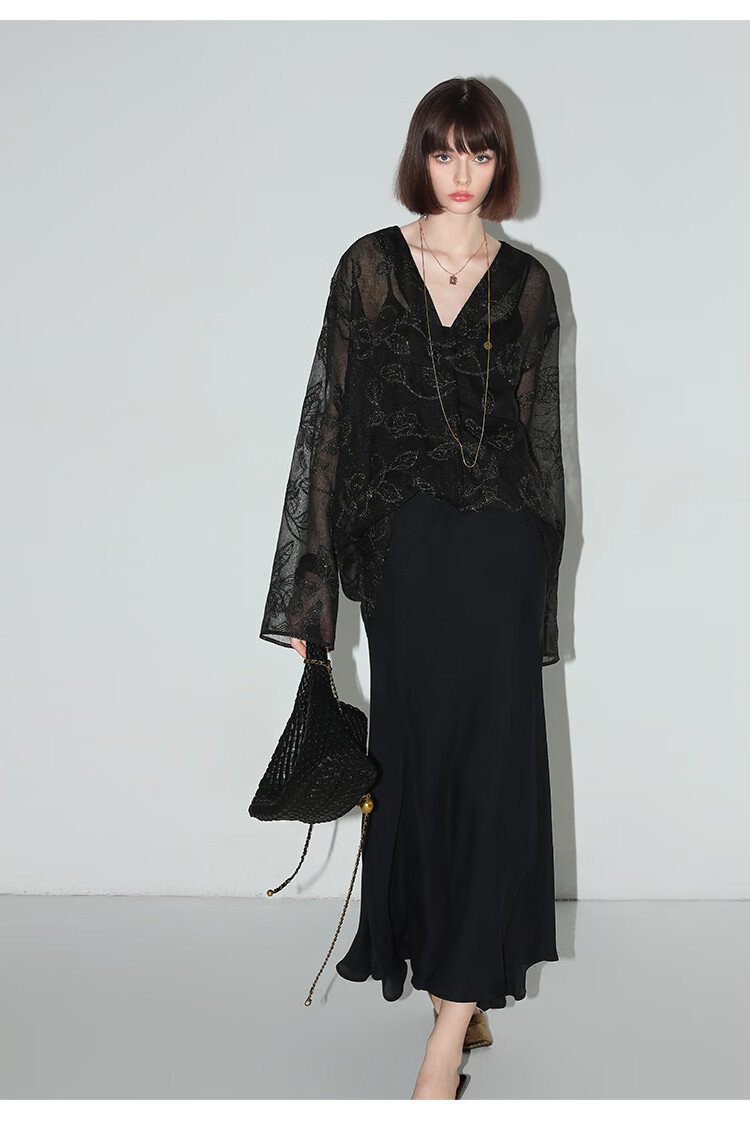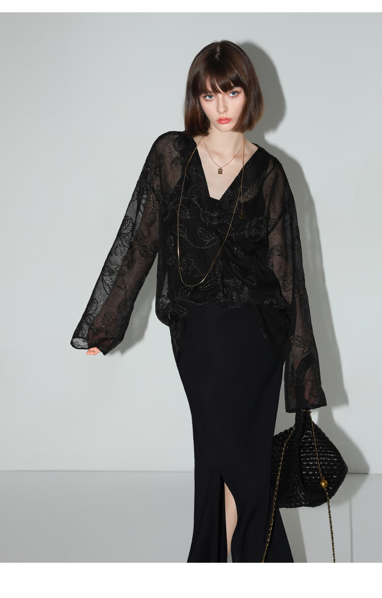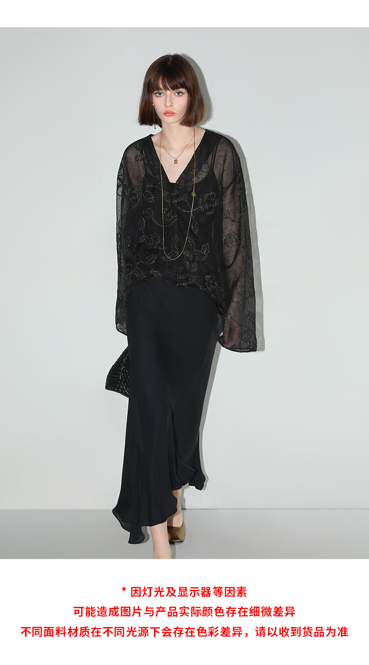 COCOBELLA金葱刺绣肌理感气质衬衫喇叭袖罩衫吊带套装SR3068