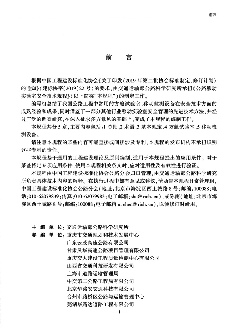 书名:公路移动实验室安全技术规程(T/CECS G:E36-01—2023)