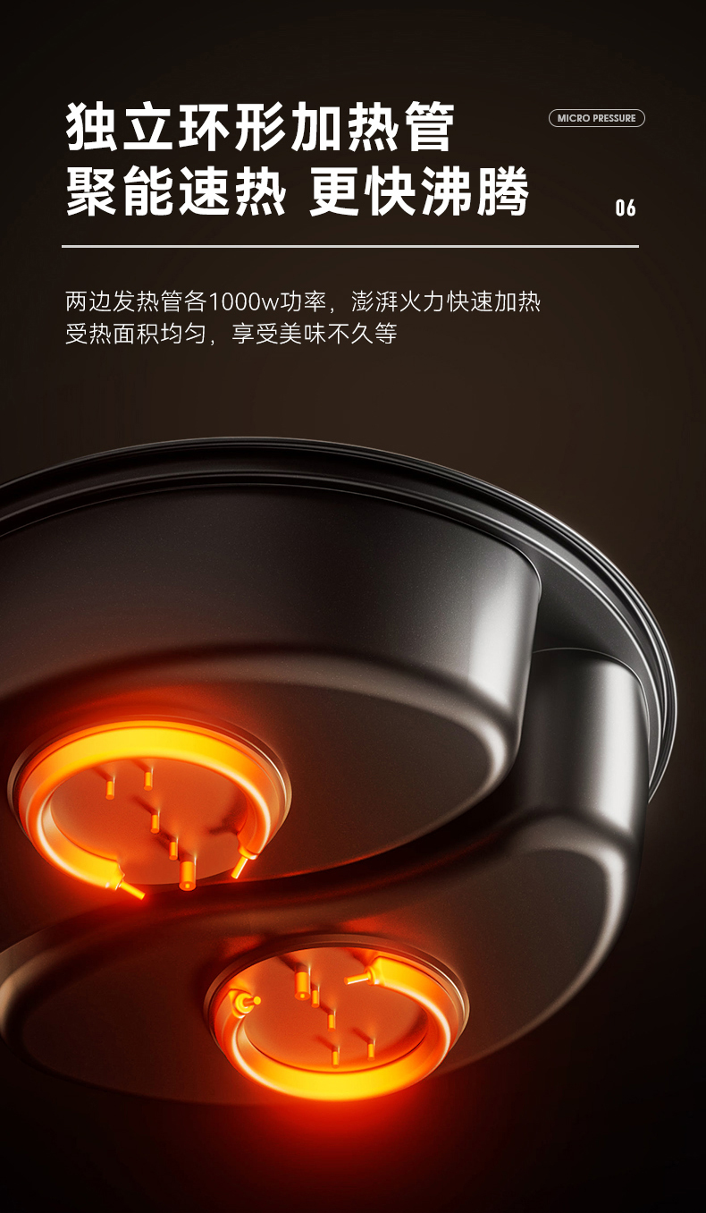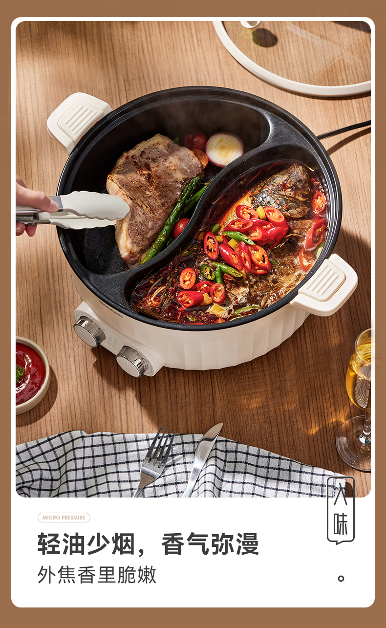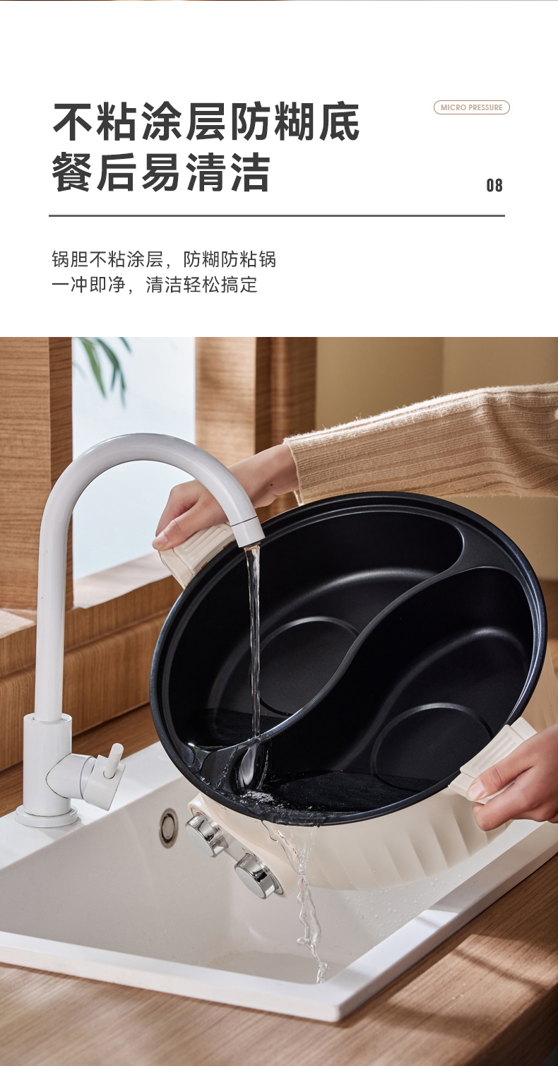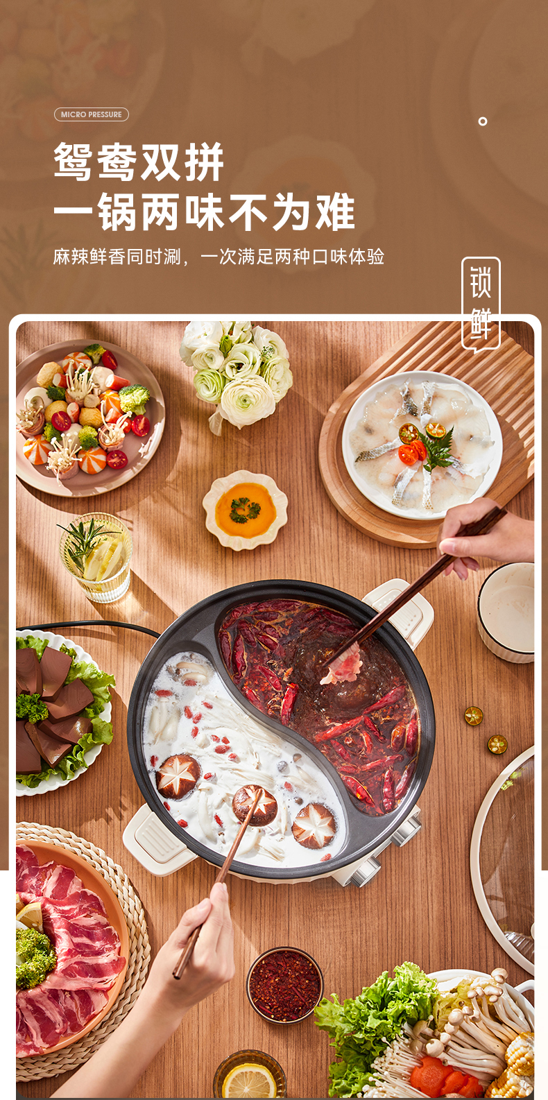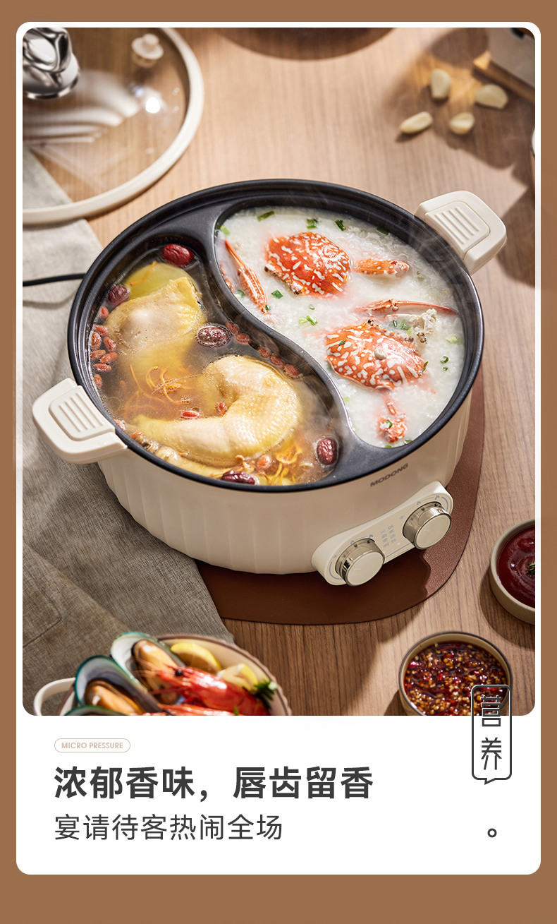 【一锅多用 分区控温】摩动微压鸳鸯火锅一体/分体式微压烹饪推拉耳扣防漏锁温不沾内胆轻松端洗