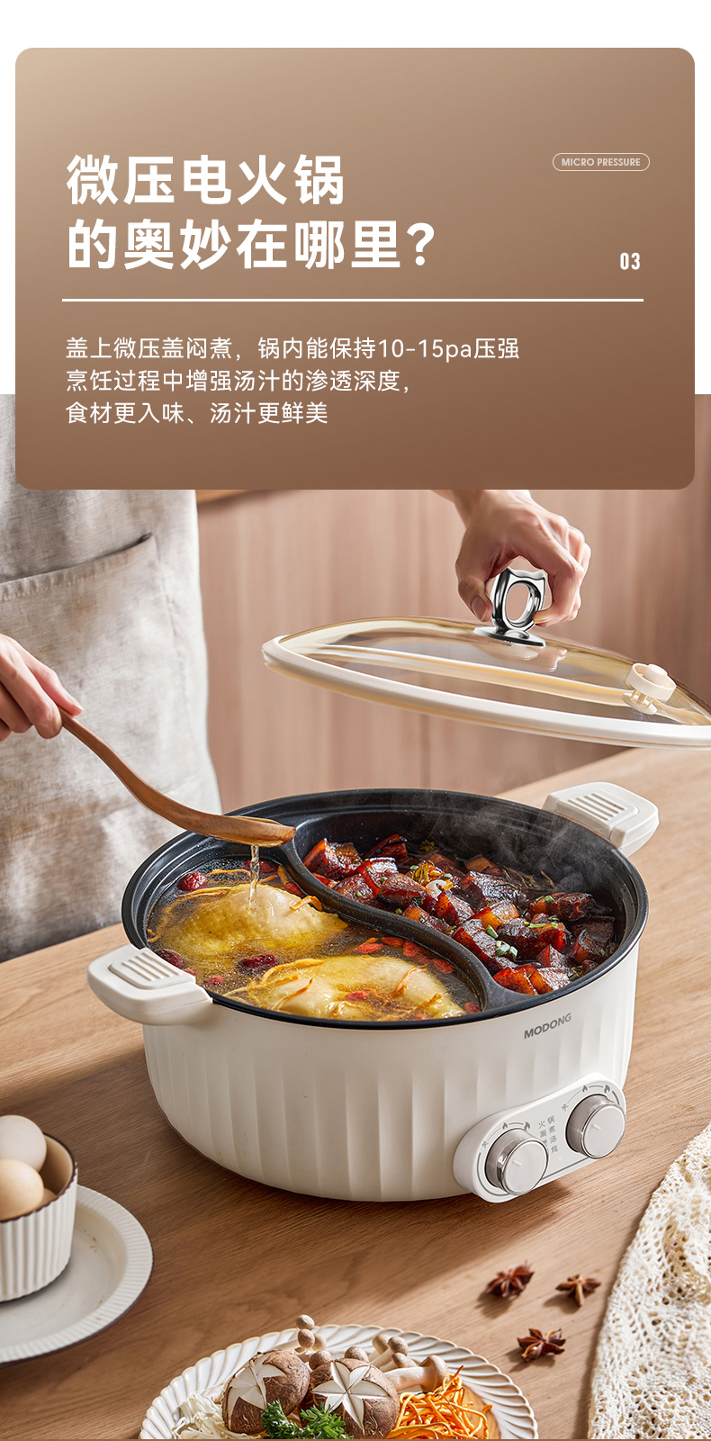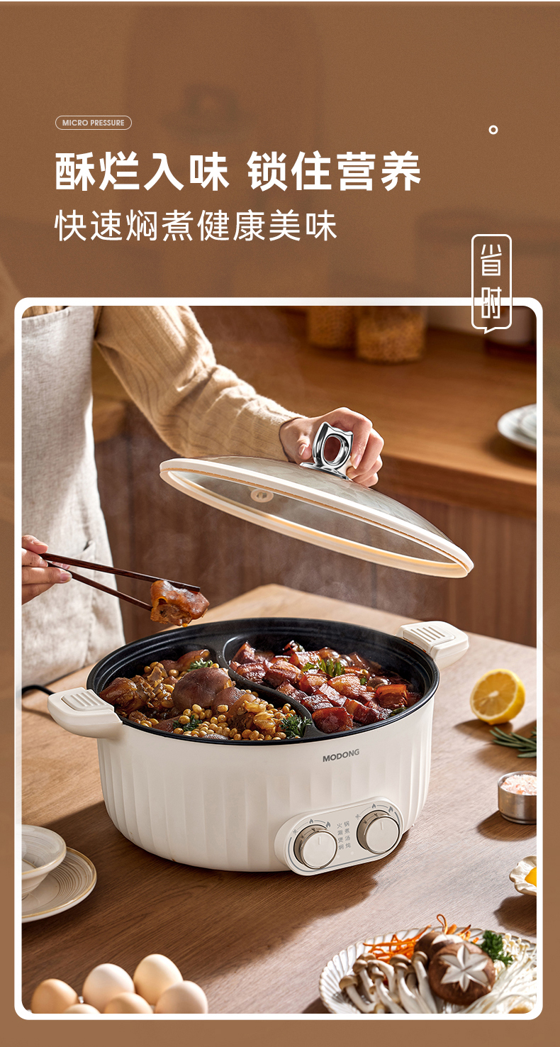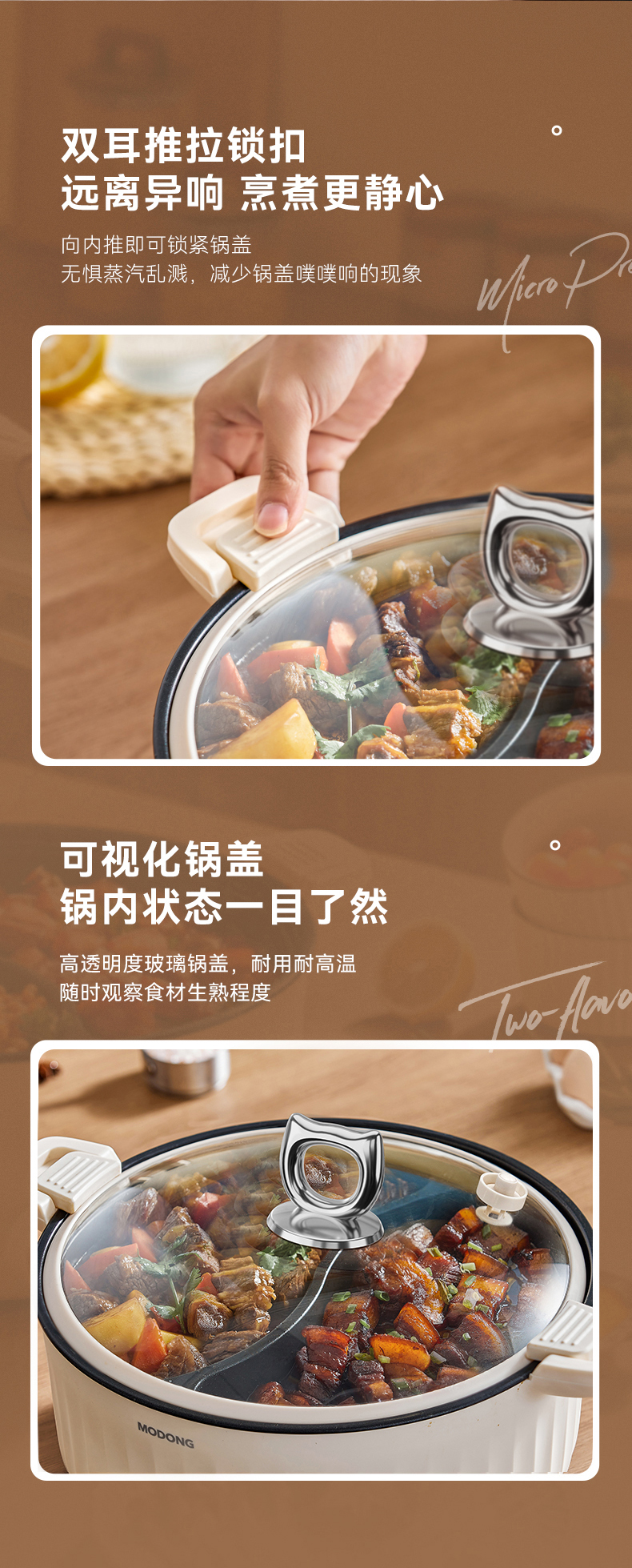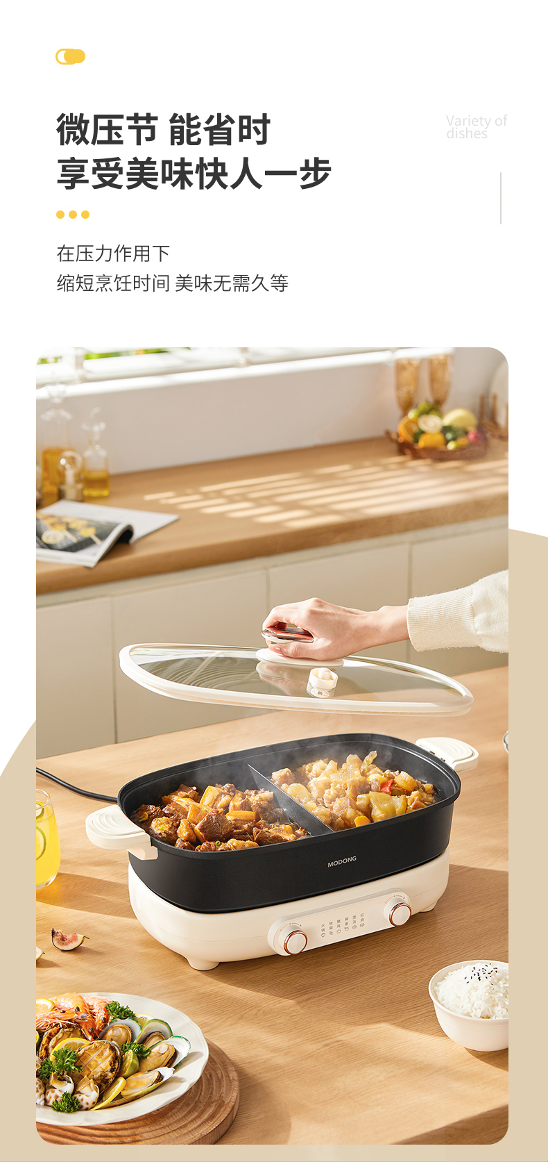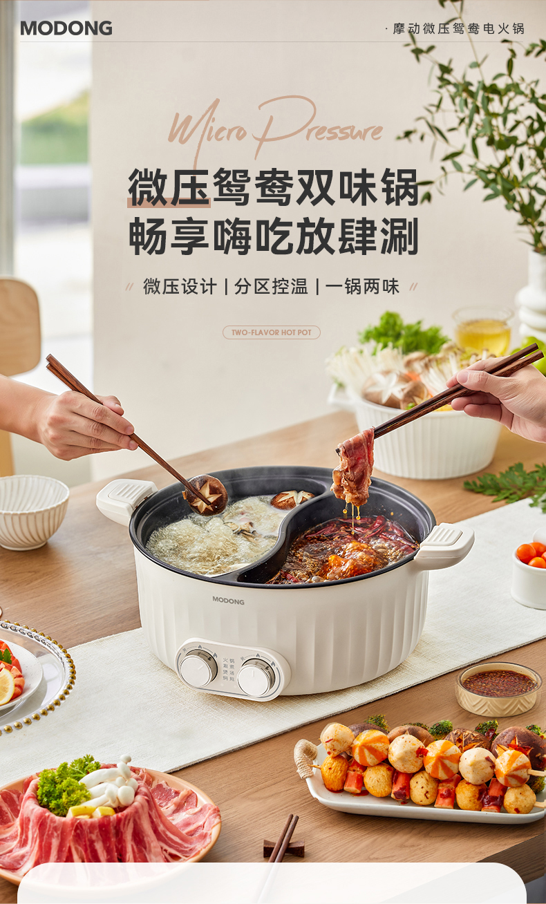 【一锅多用 分区控温】摩动微压鸳鸯火锅一体/分体式微压烹饪推拉耳扣防漏锁温不沾内胆轻松端洗