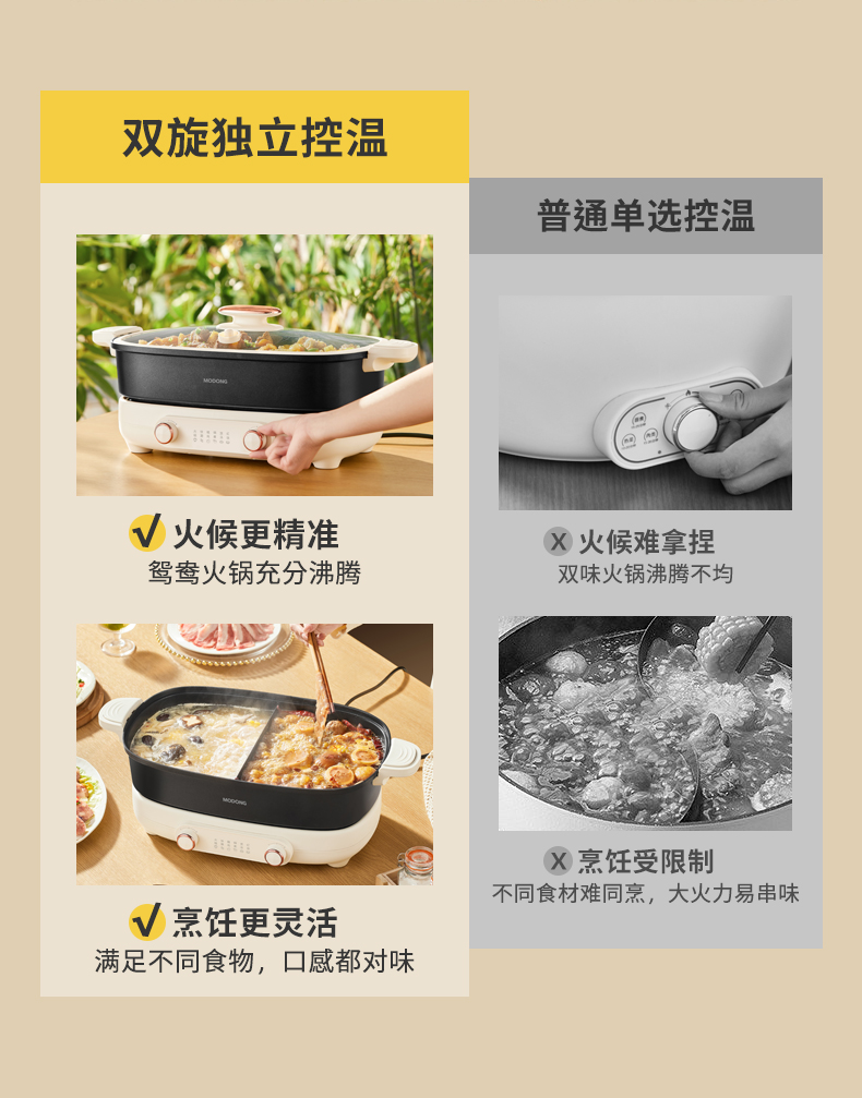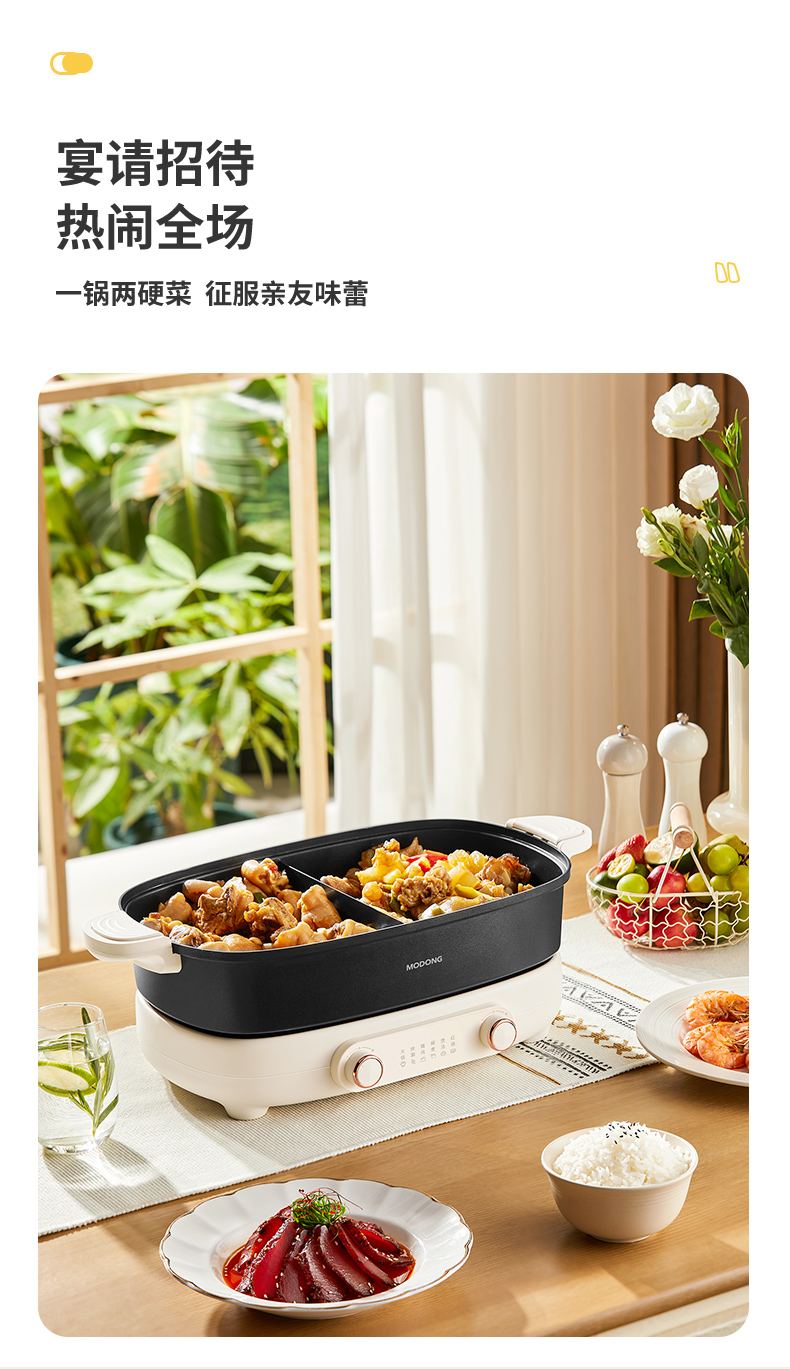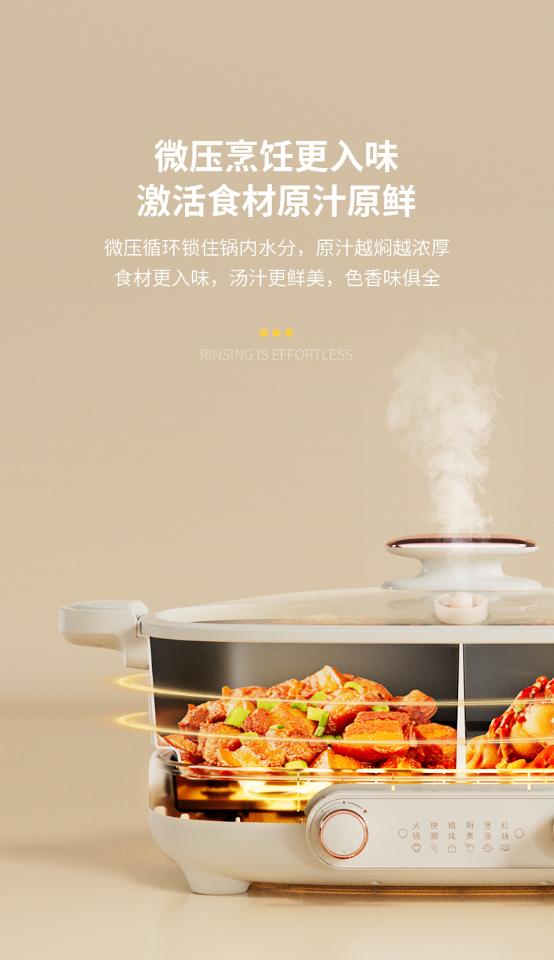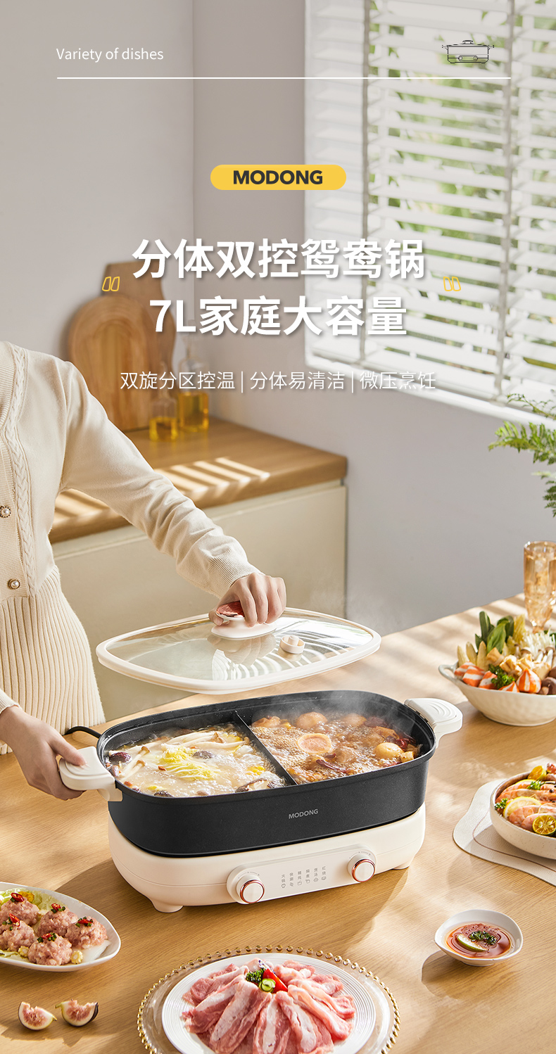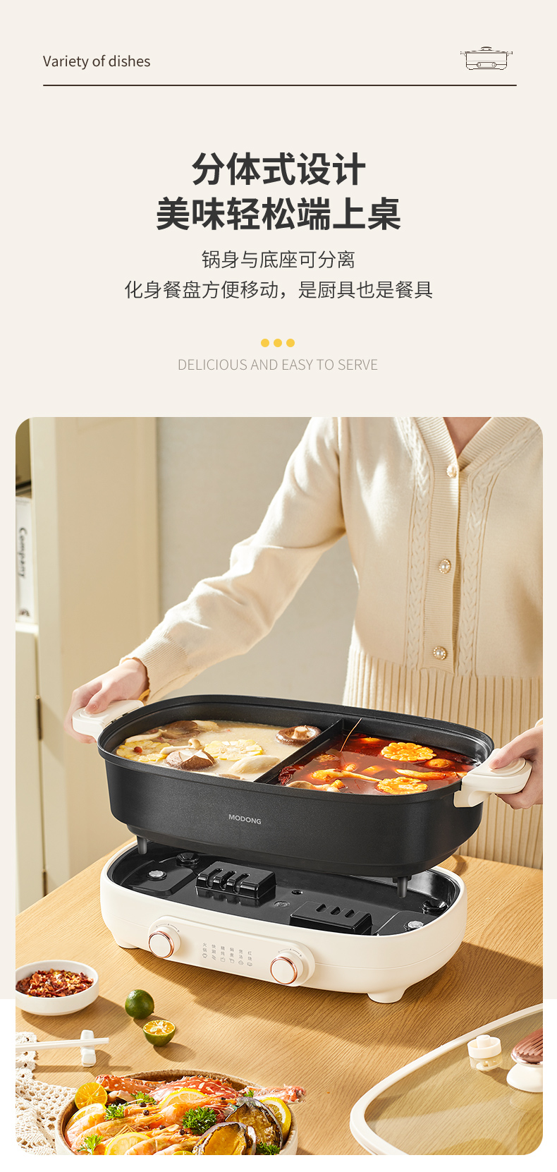 【一锅多用 分区控温】摩动微压鸳鸯火锅一体/分体式微压烹饪推拉耳扣防漏锁温不沾内胆轻松端洗