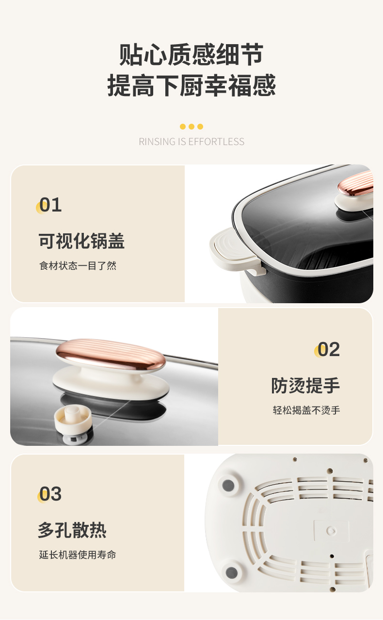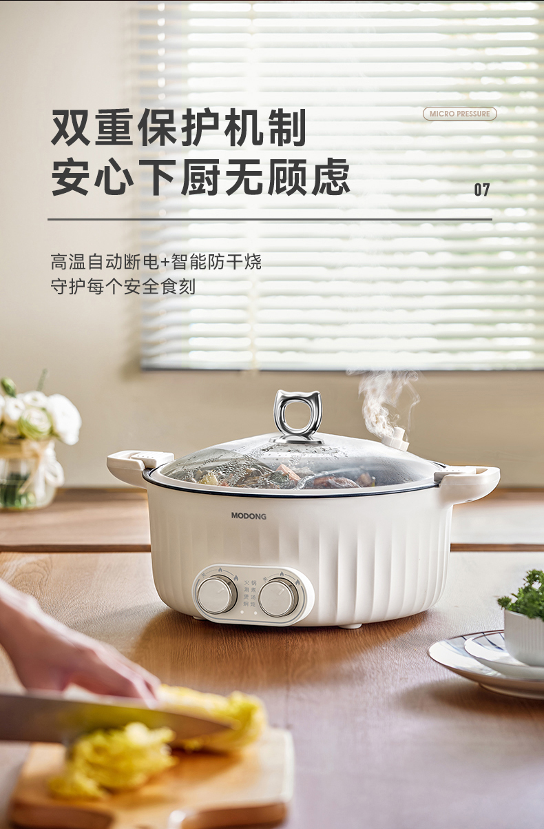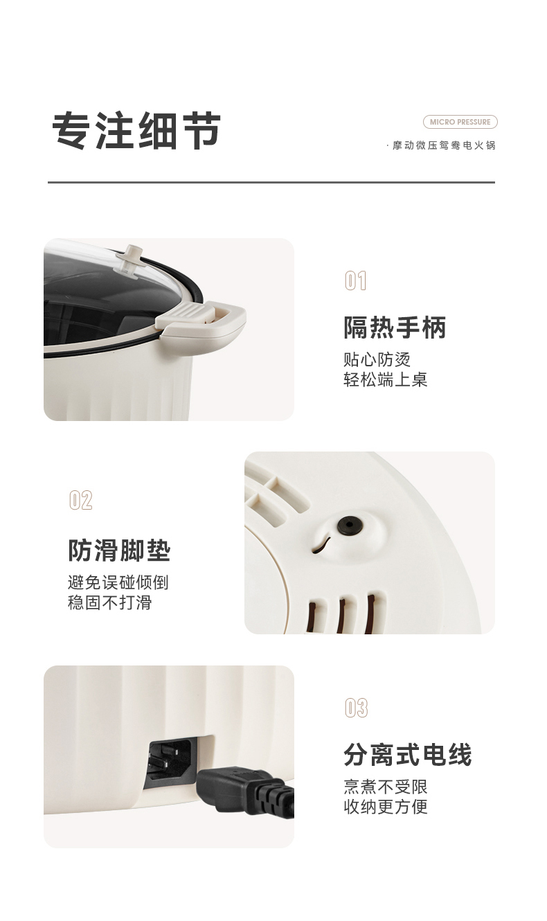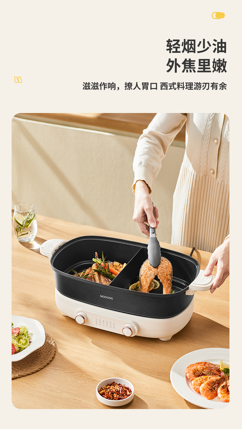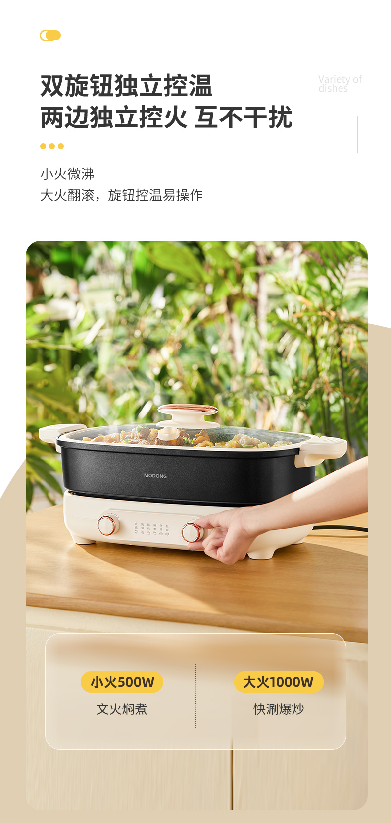 【一锅多用 分区控温】摩动微压鸳鸯火锅一体/分体式微压烹饪推拉耳扣防漏锁温不沾内胆轻松端洗