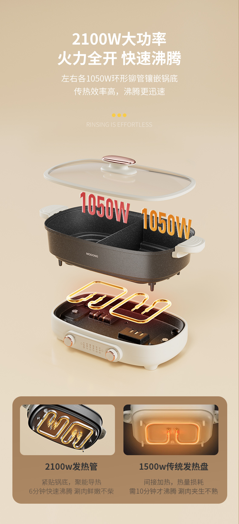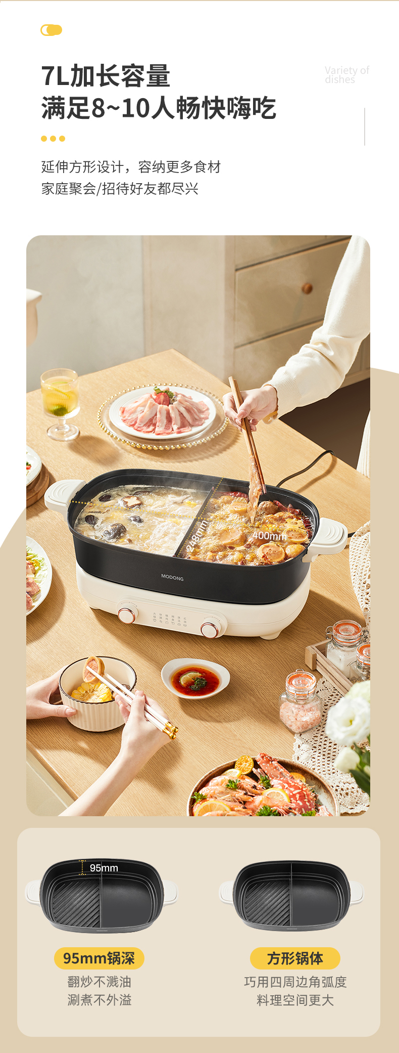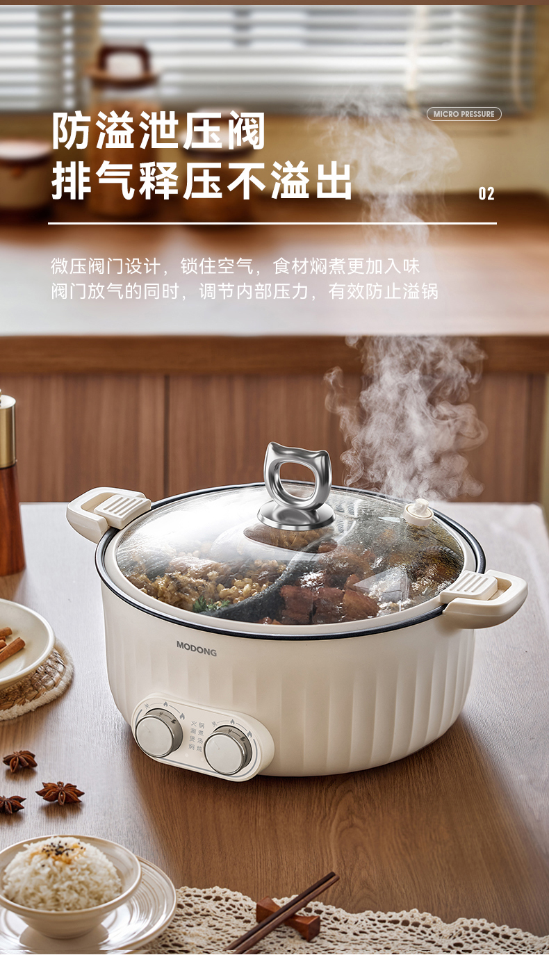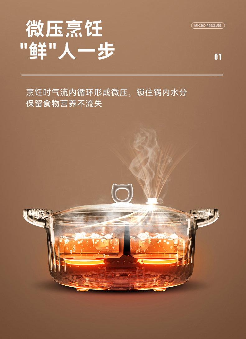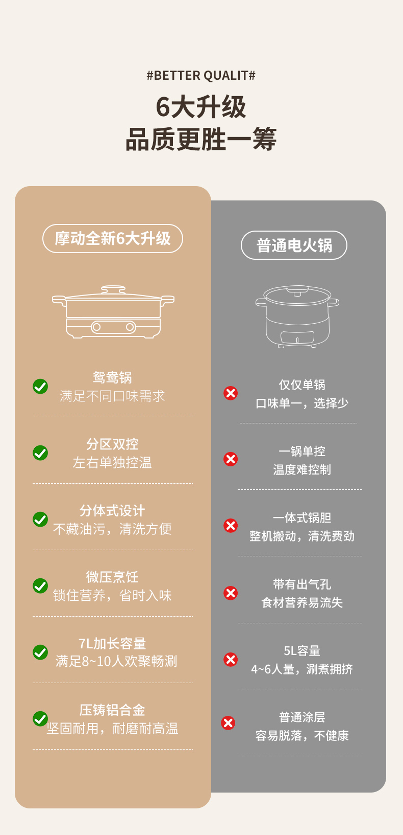 【一锅多用 分区控温】摩动微压鸳鸯火锅一体/分体式微压烹饪推拉耳扣防漏锁温不沾内胆轻松端洗