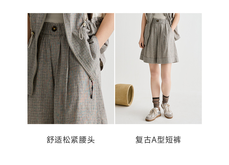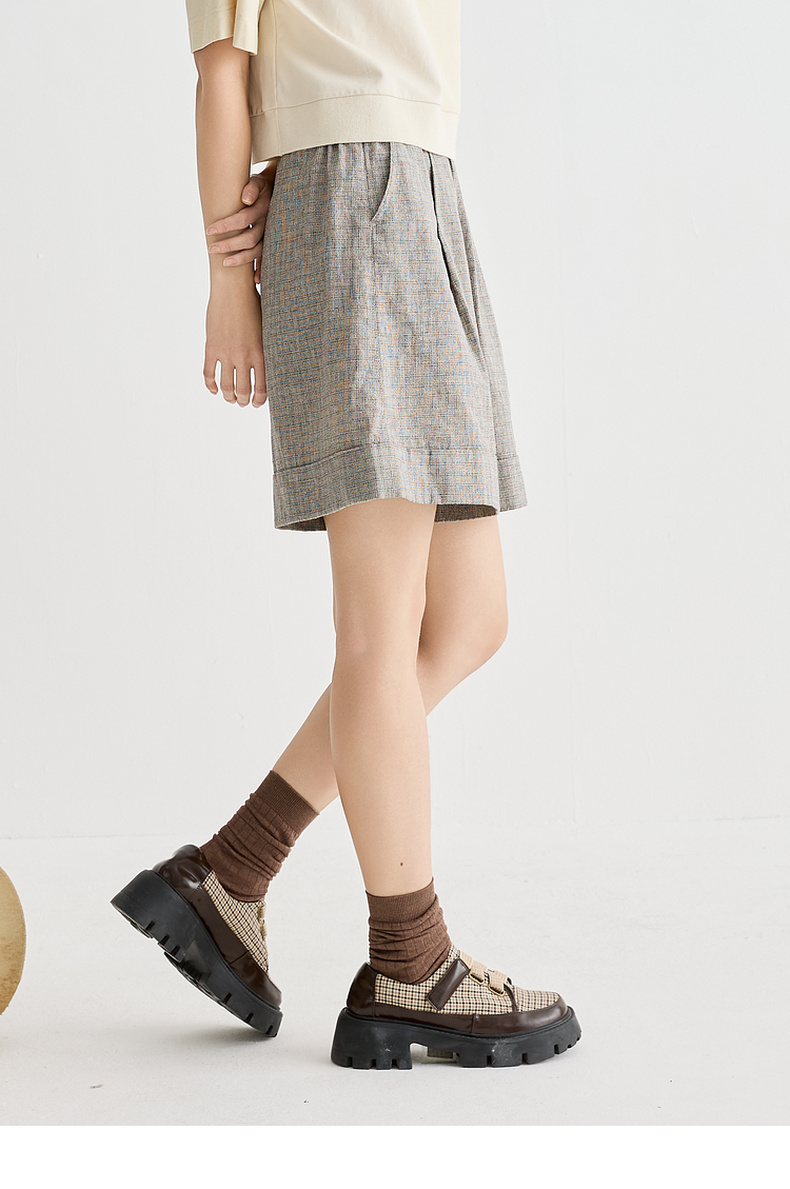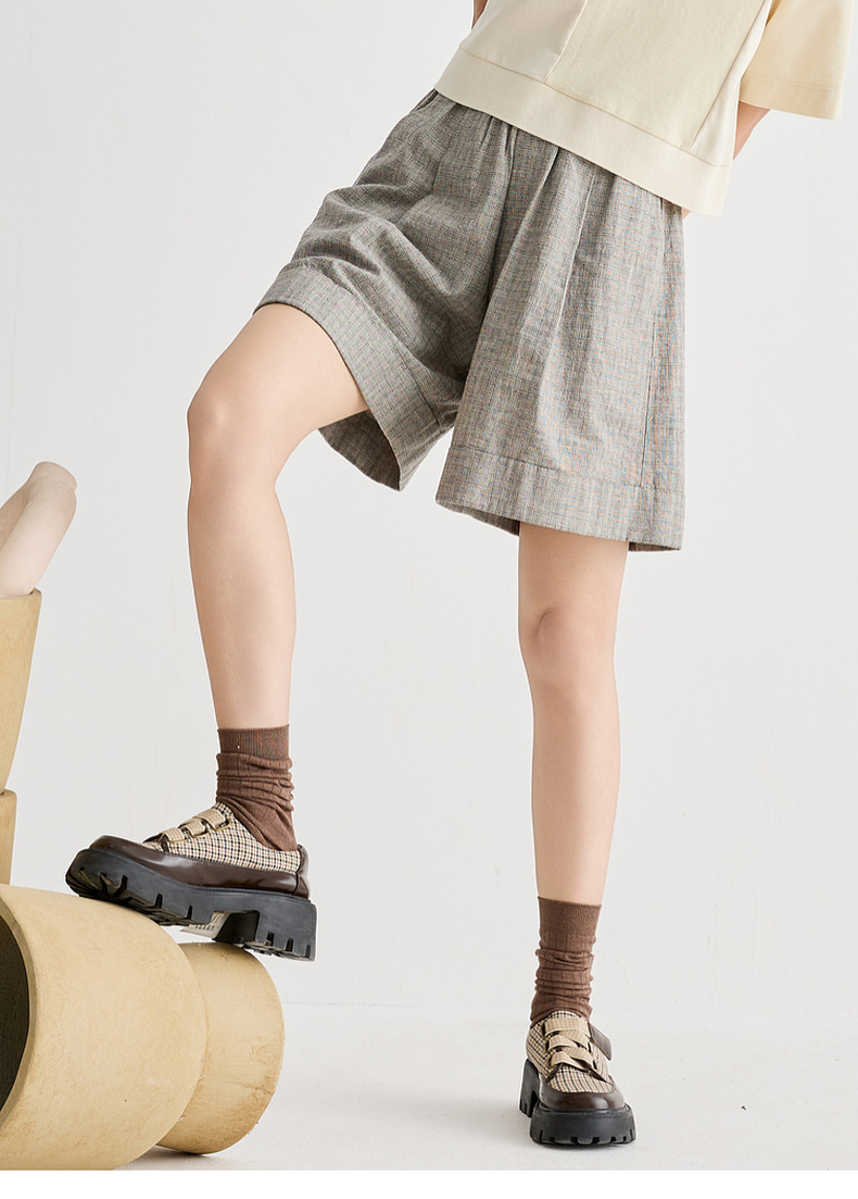 谜底短裤女2025夏季新品复古风日常棉麻提花宽松A型裤子252MK0526