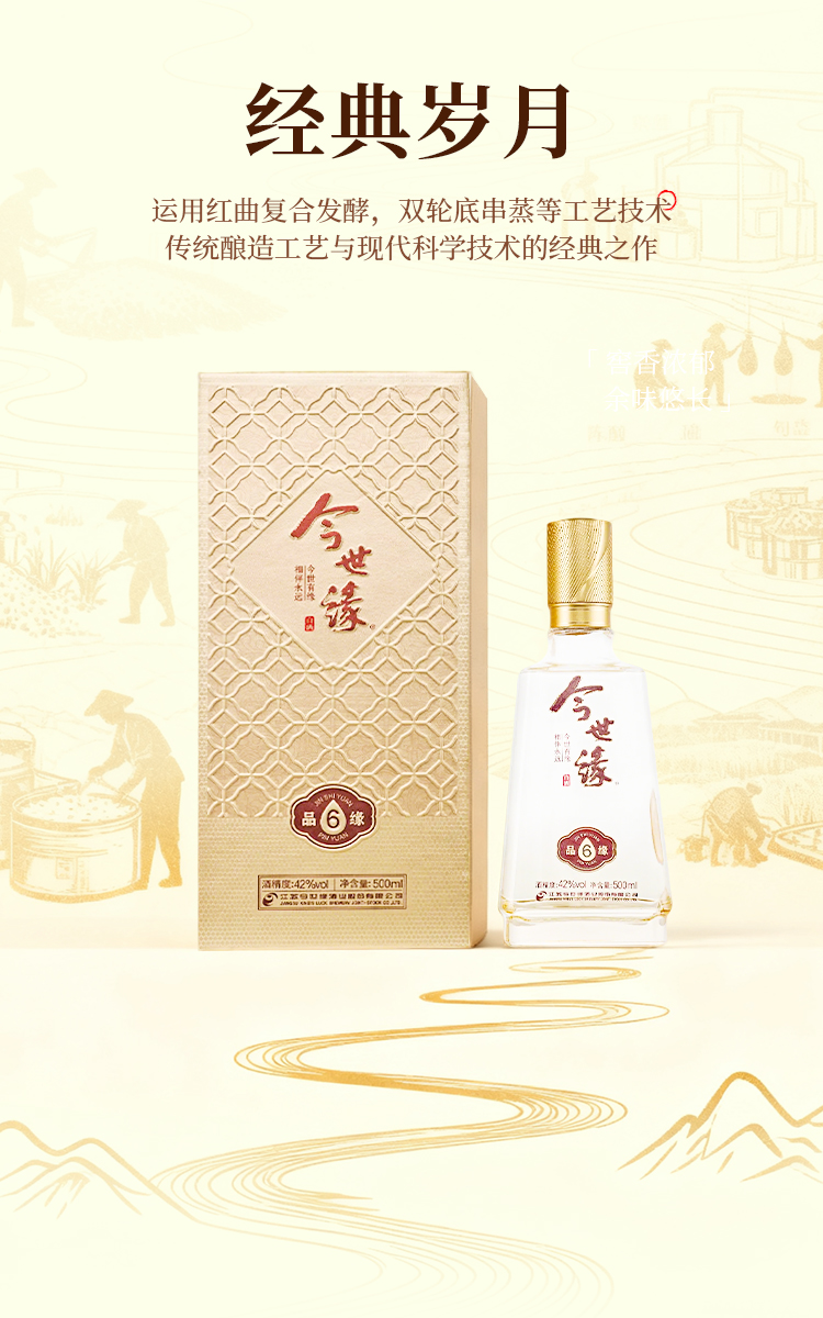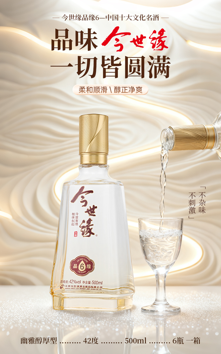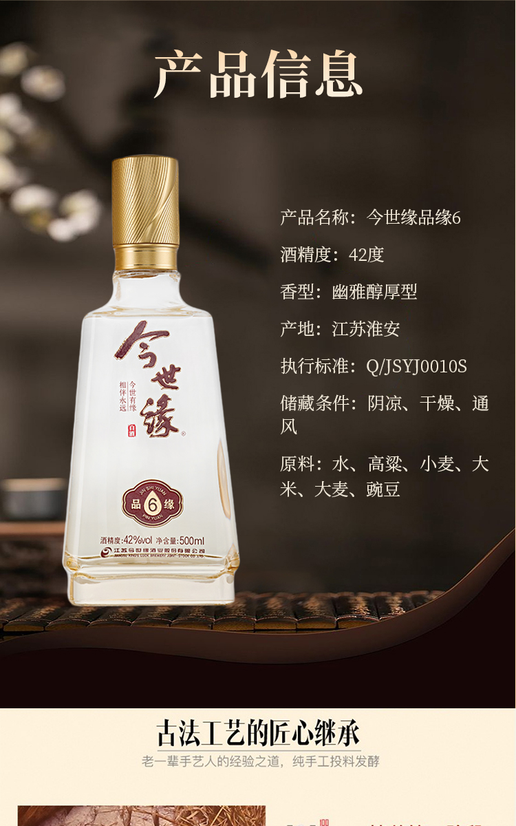 今世缘品缘6浓香型白酒500ml*6整箱【臻选好酒】