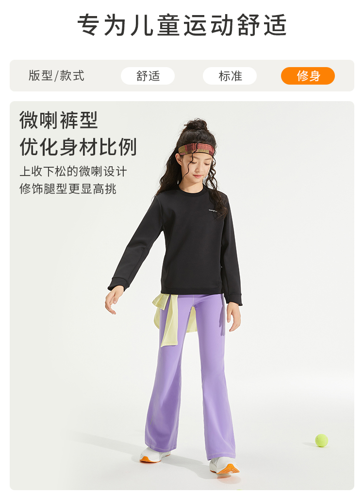 【24年秋新】moodytiger24秋新款女童显瘦高腰运动休闲时尚喇叭休闲裤43211417