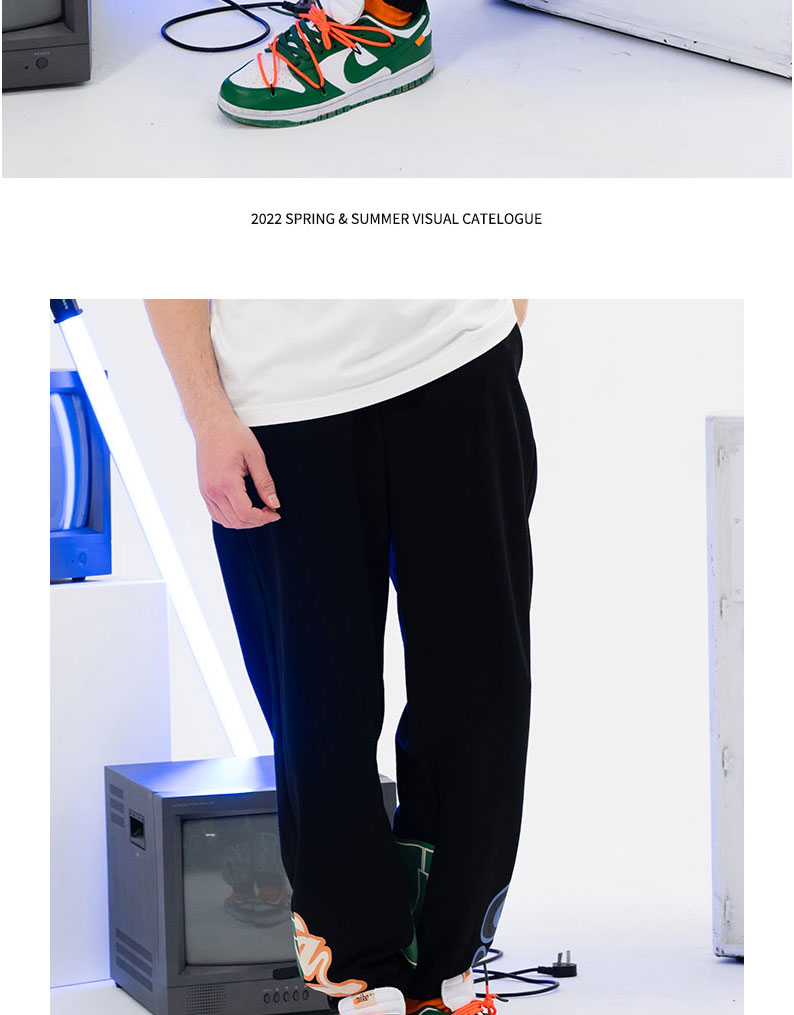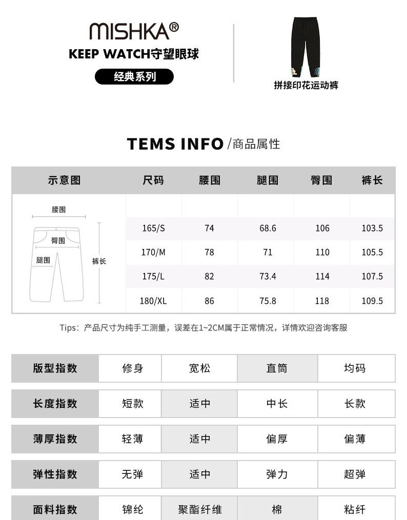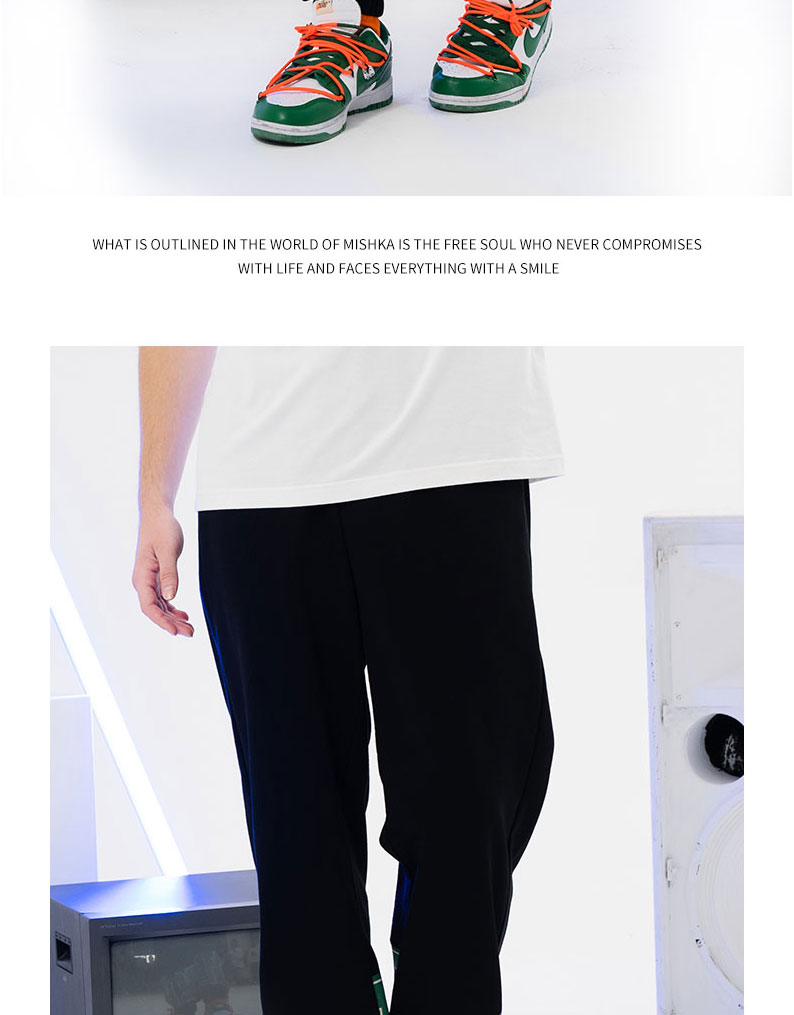 MISHKA大眼球潮牌2022春夏新品 男士拼接印花运动裤休闲裤长裤M21100850M