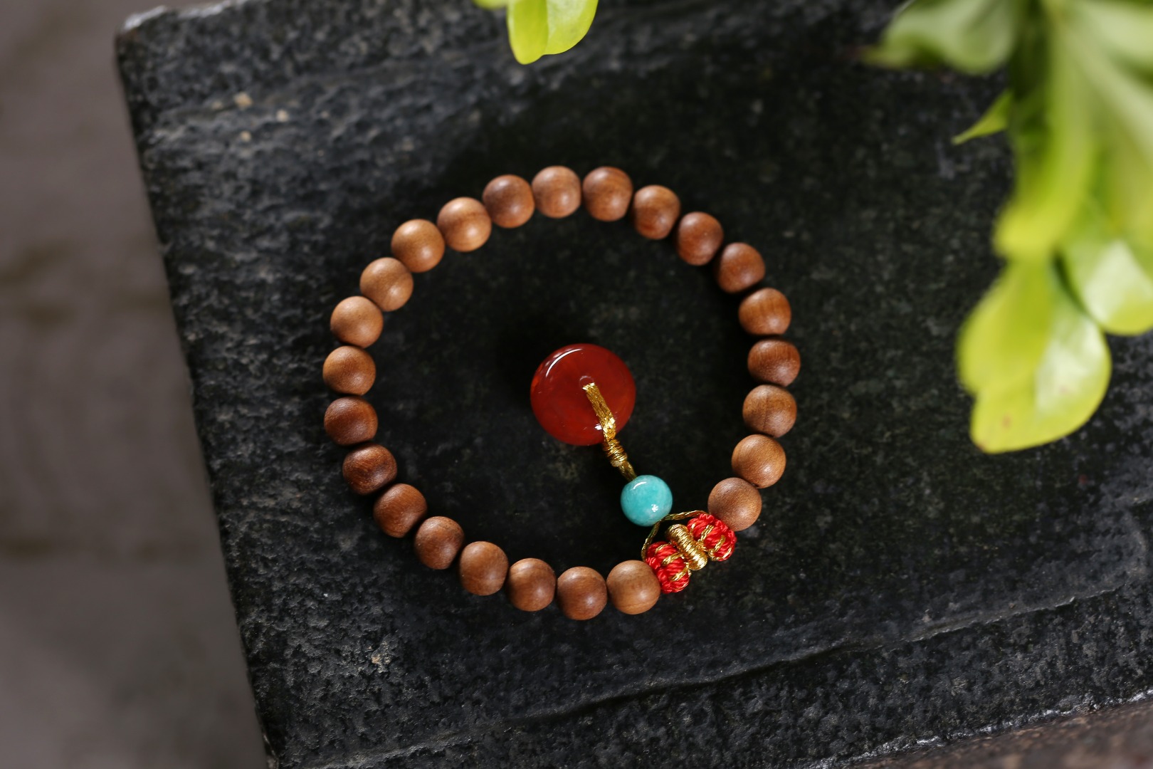 金红灯笼珠/金线圈小,天河石/南红隔片(小平安扣)