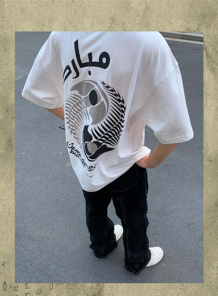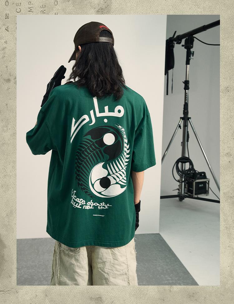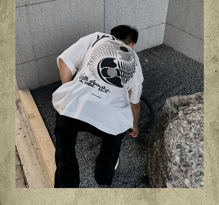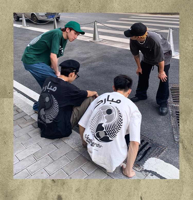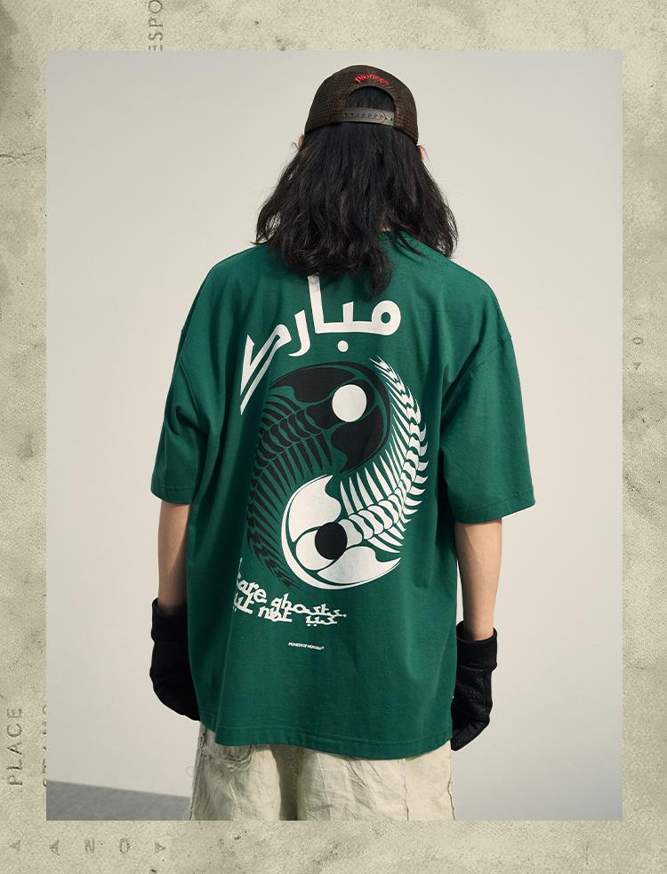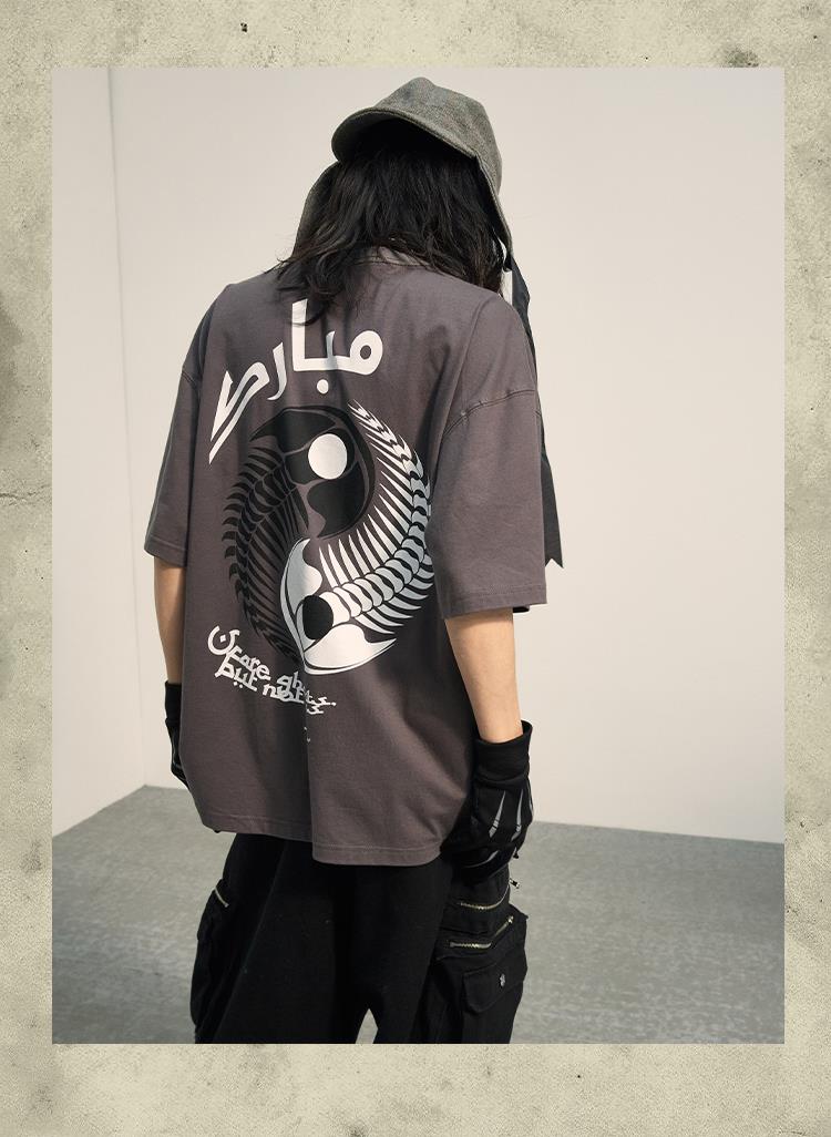 POH「三叶虫阴阳太极」 印花街头短袖T恤男国潮牌宽松休闲Tee上衣