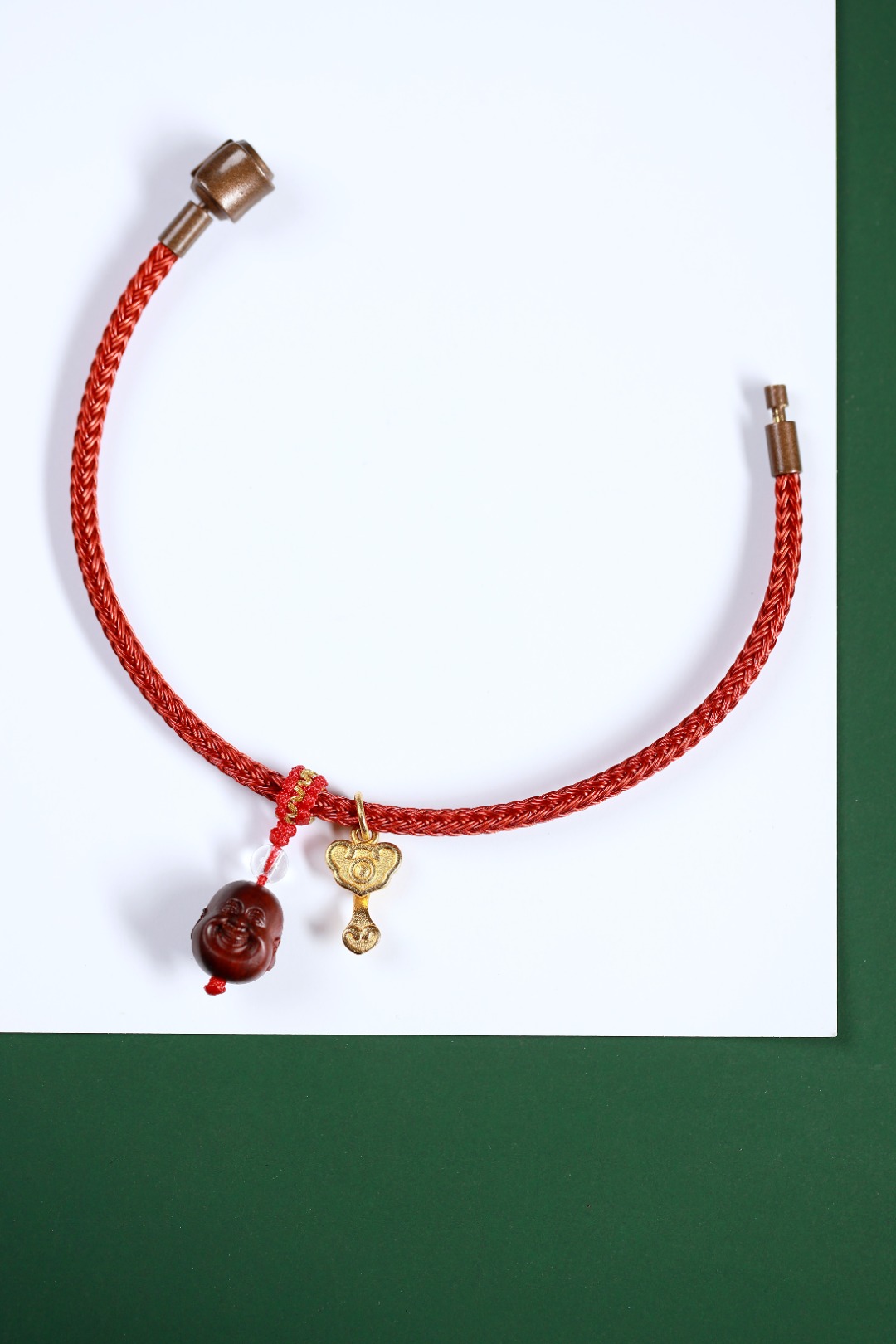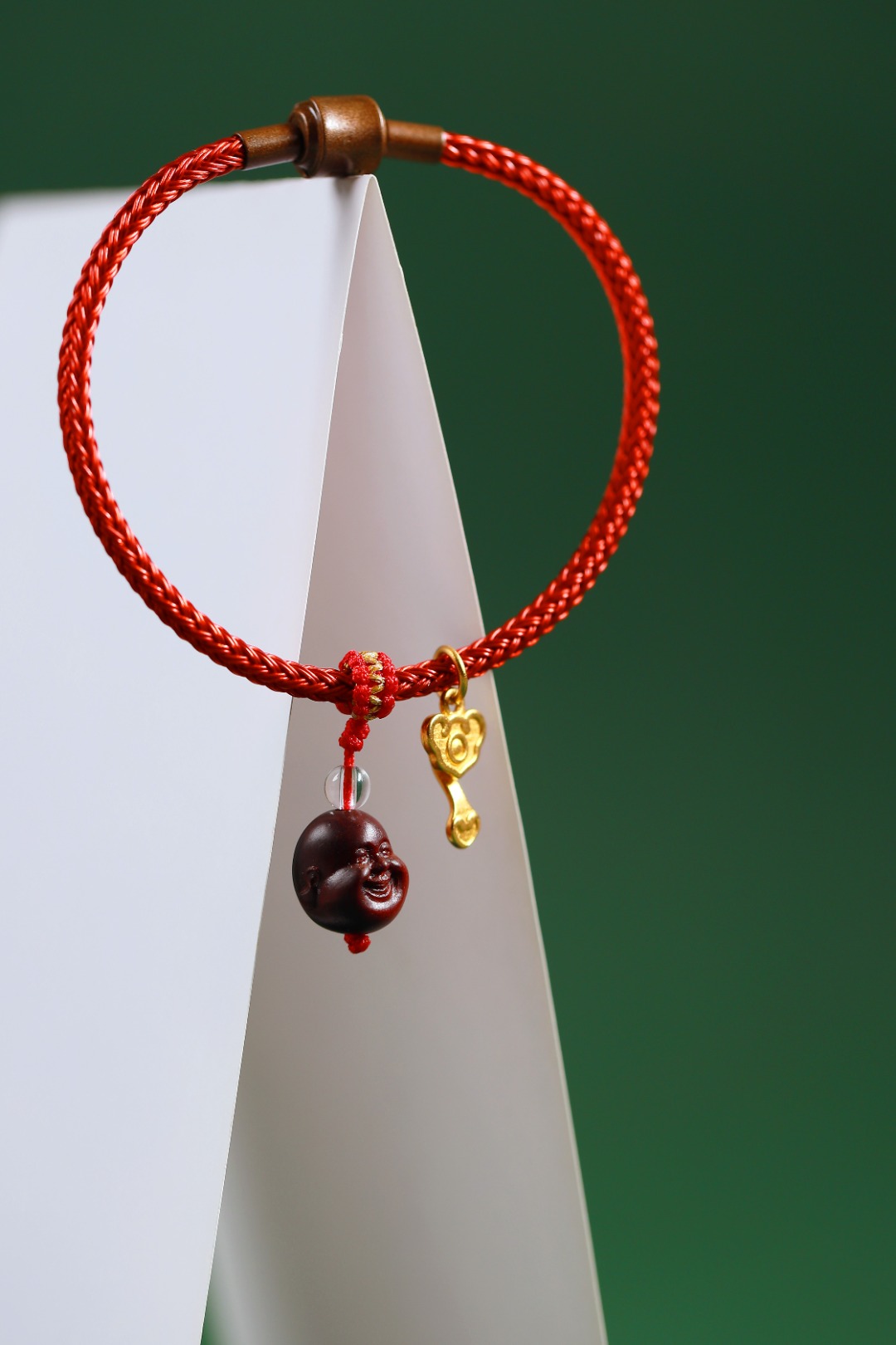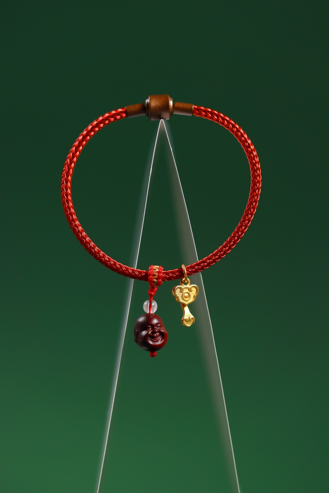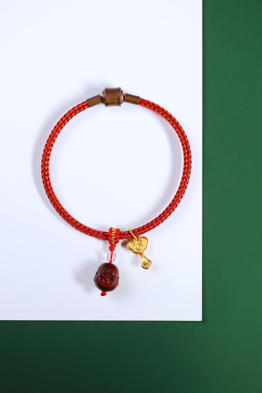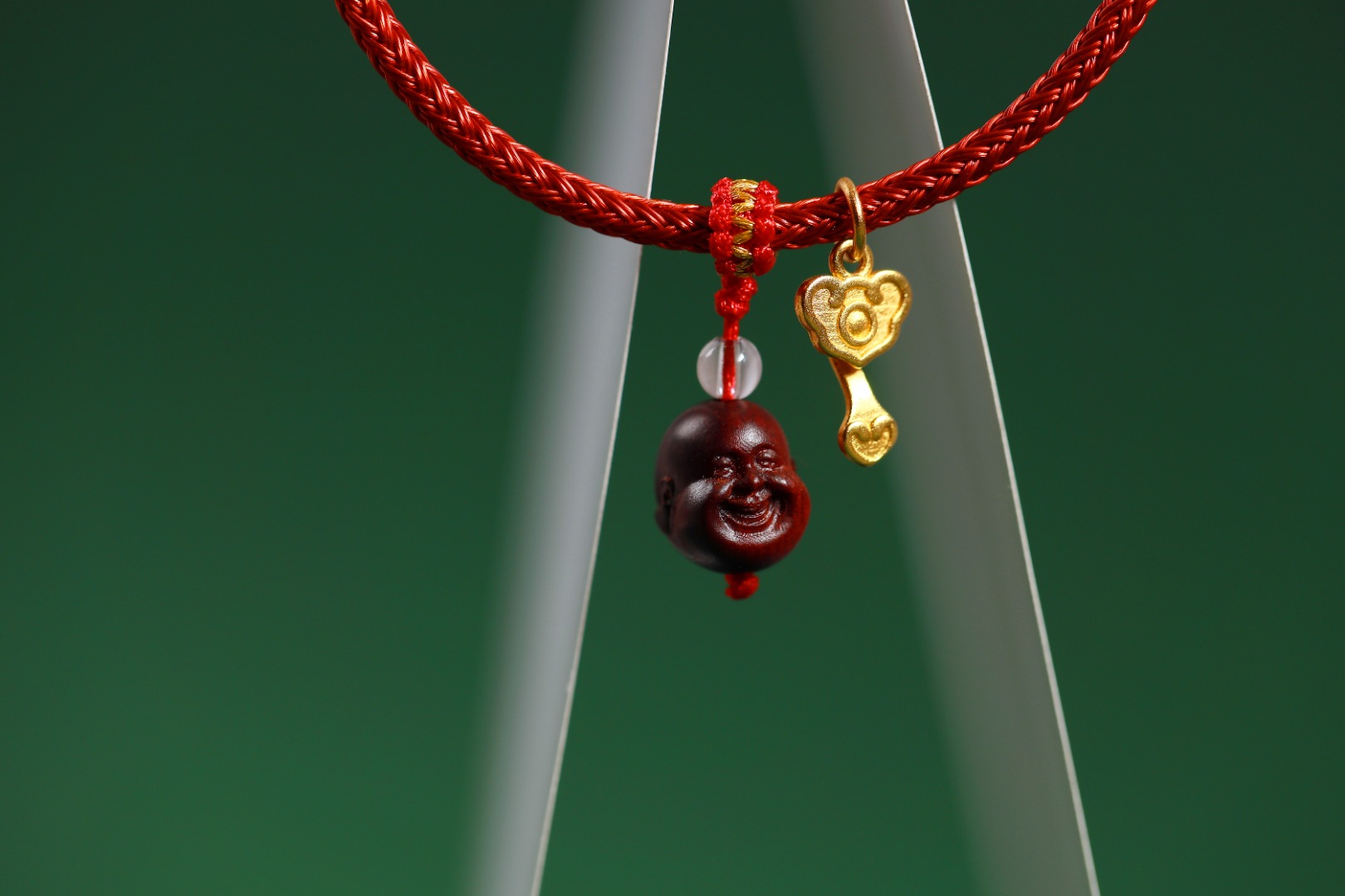 钢丝红绳<周生生>/紫檀小弥勒/红金平结/白水晶/沙金如意小吊坠