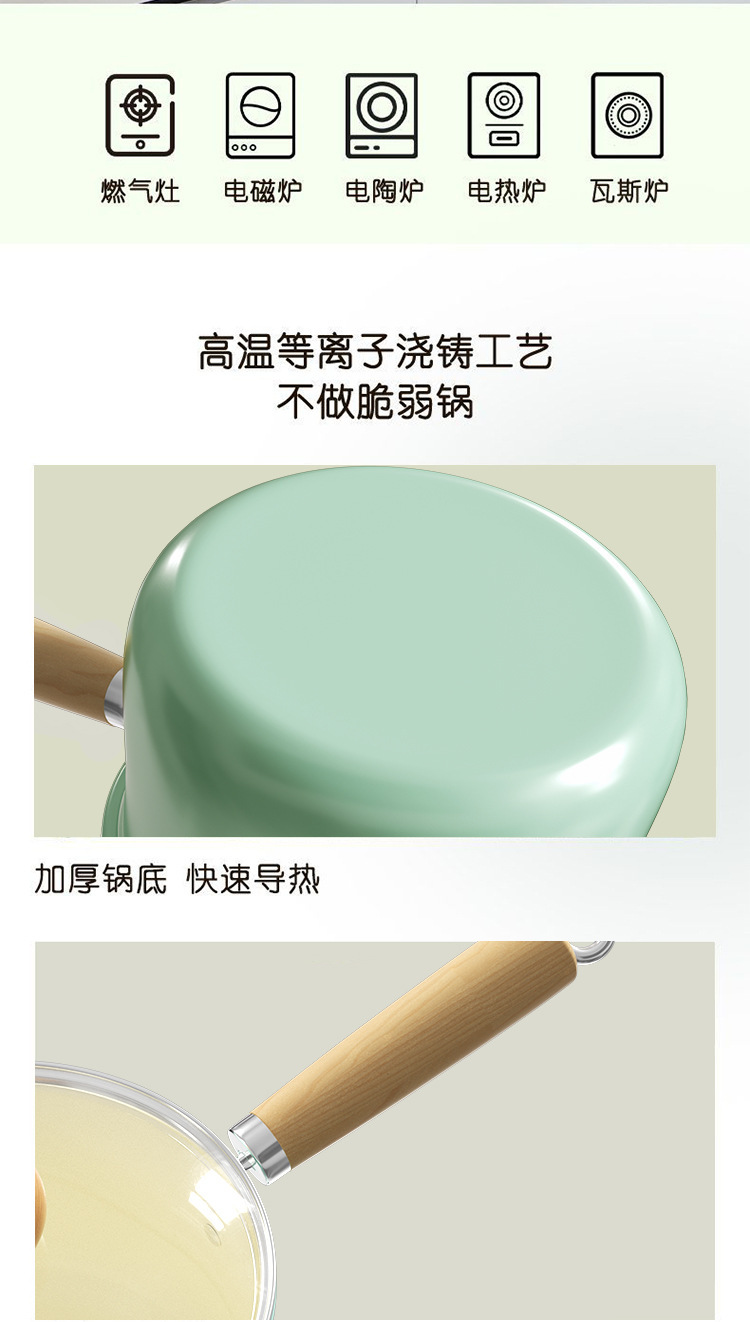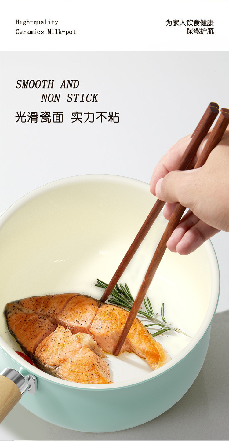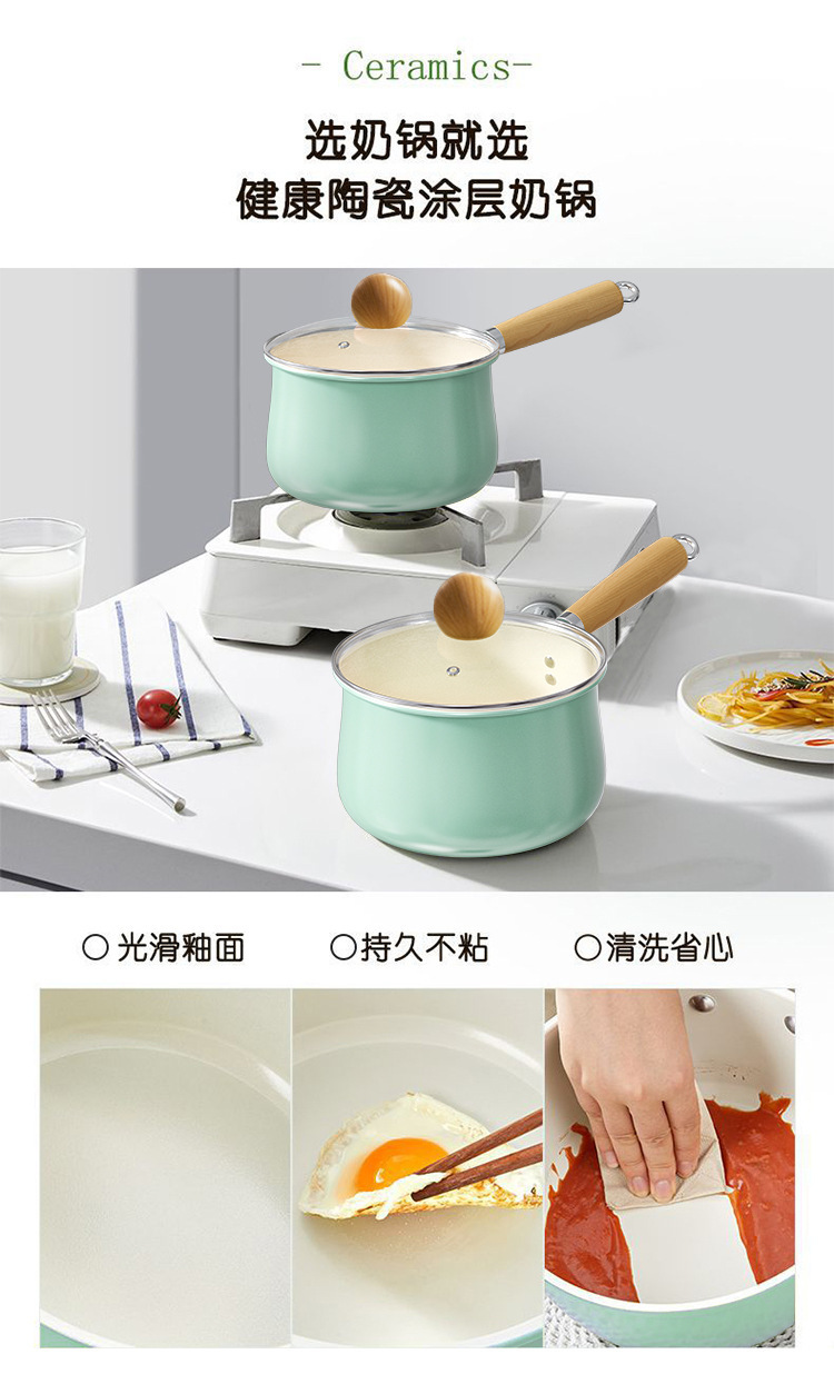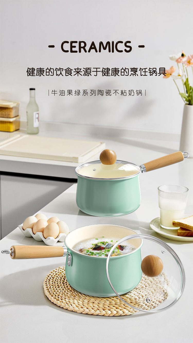 【牛油果绿系列!陶瓷不粘奶锅】新款清水蓝小奶锅 宝宝辅食锅陶瓷锅 餐厅家用汤锅煮面锅 不粘锅