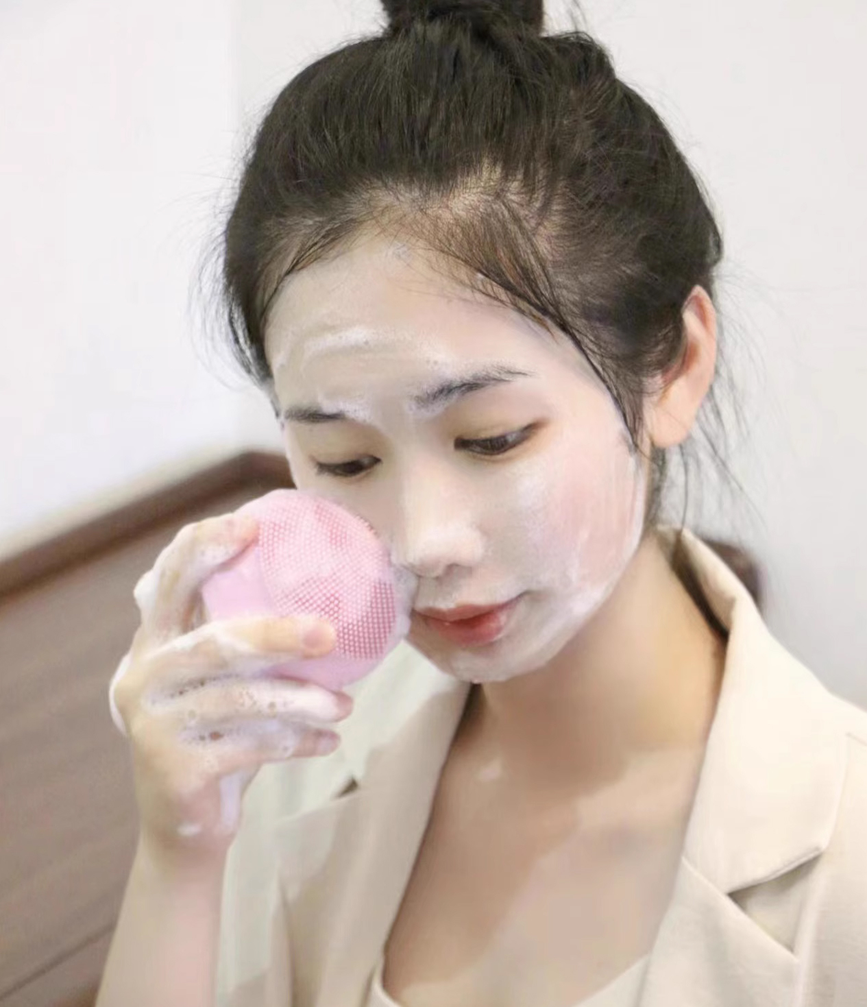小气泡氨基酸洁面乳不仅能清除面部污垢,还能改善毛孔粗大,让人容光焕发。