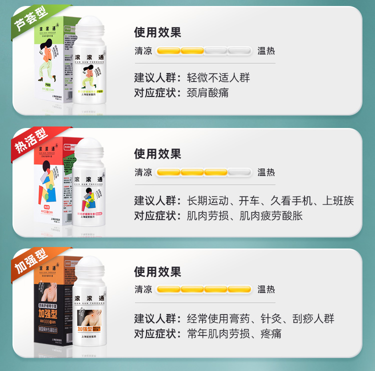 商品名称:滚滚通颈肩舒缓滚珠精华露42ml 芦荟型(冷感)/热活型(热感)/加强型