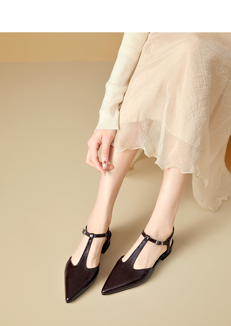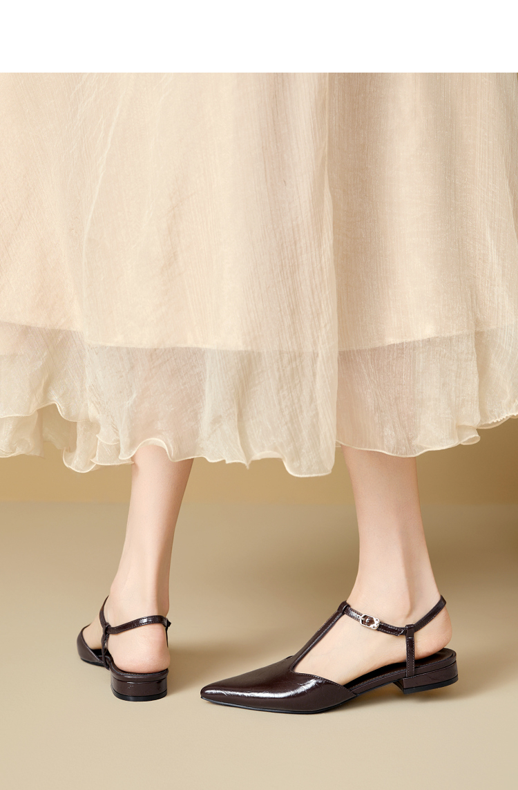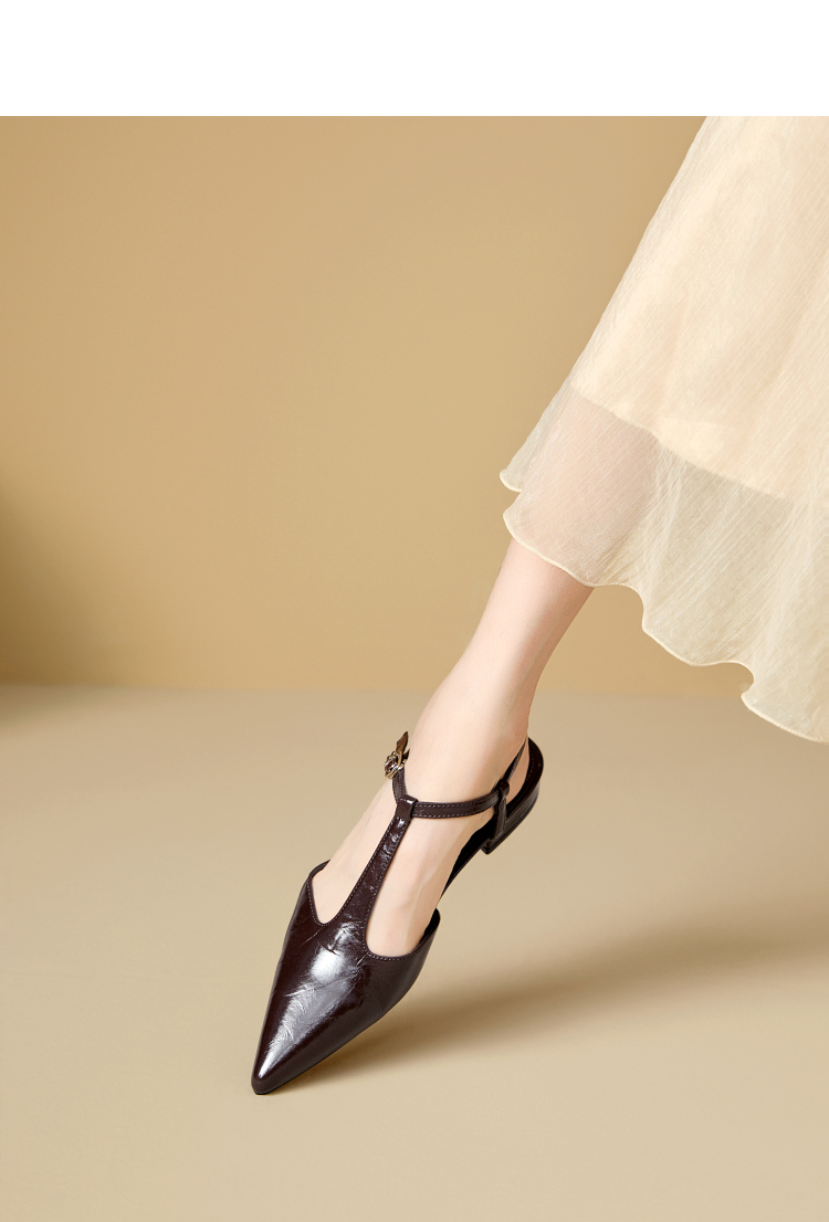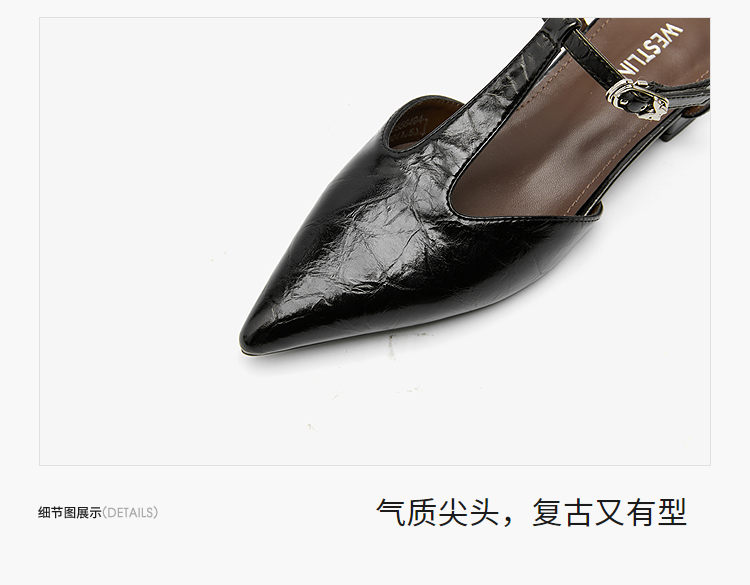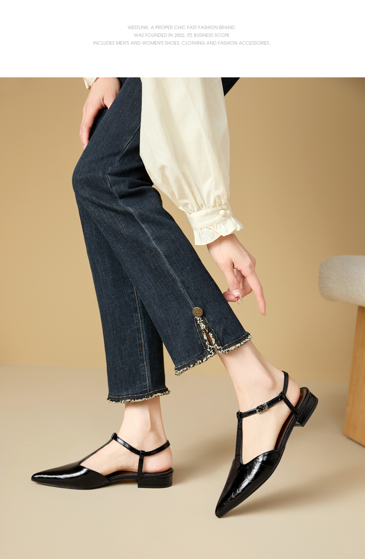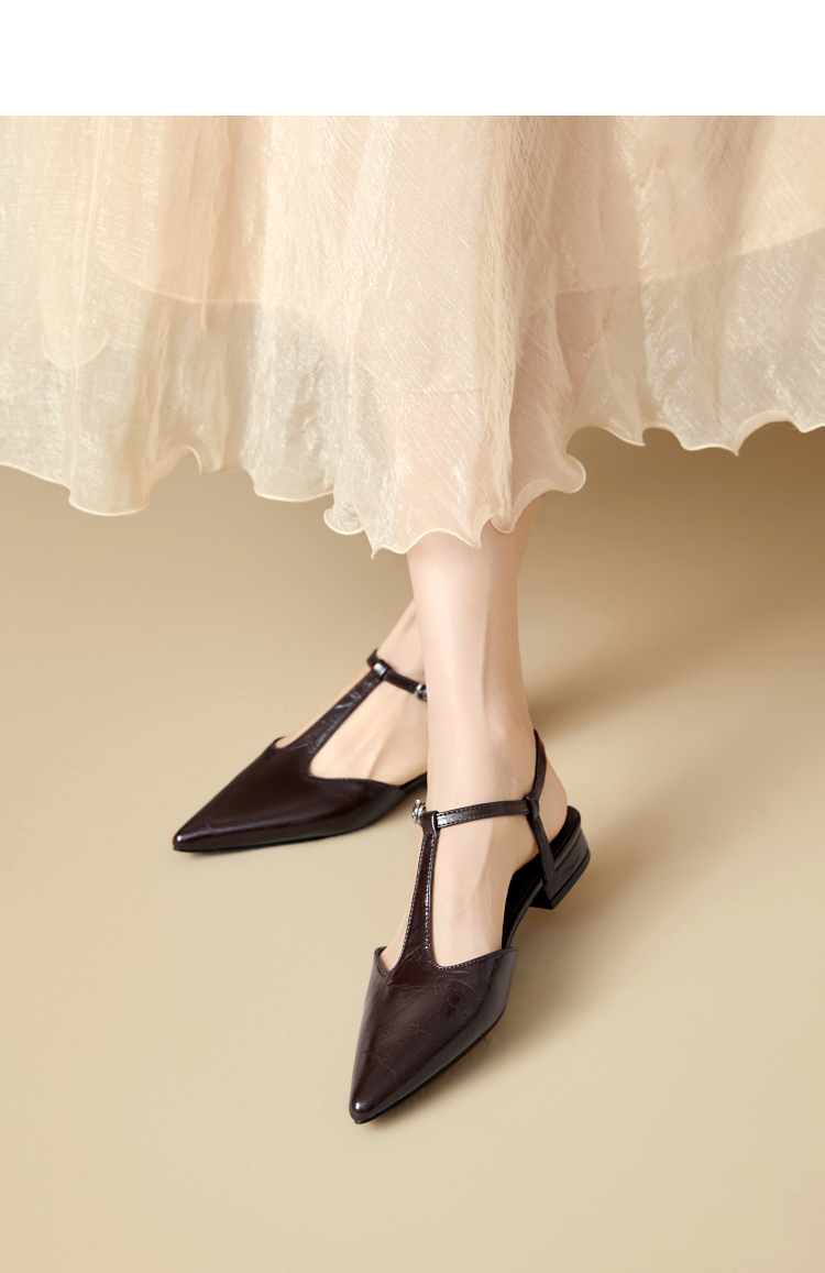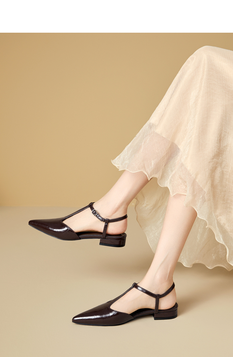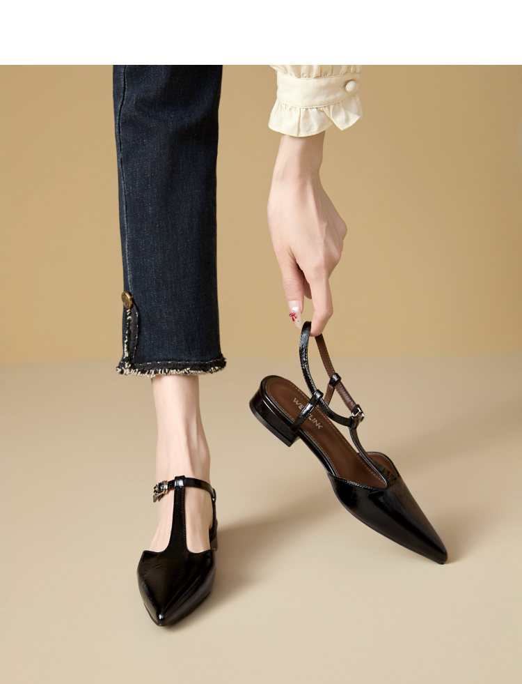 西遇法式包头凉鞋女外穿新款夏季T字高级感低跟平底尖头单鞋V0556494