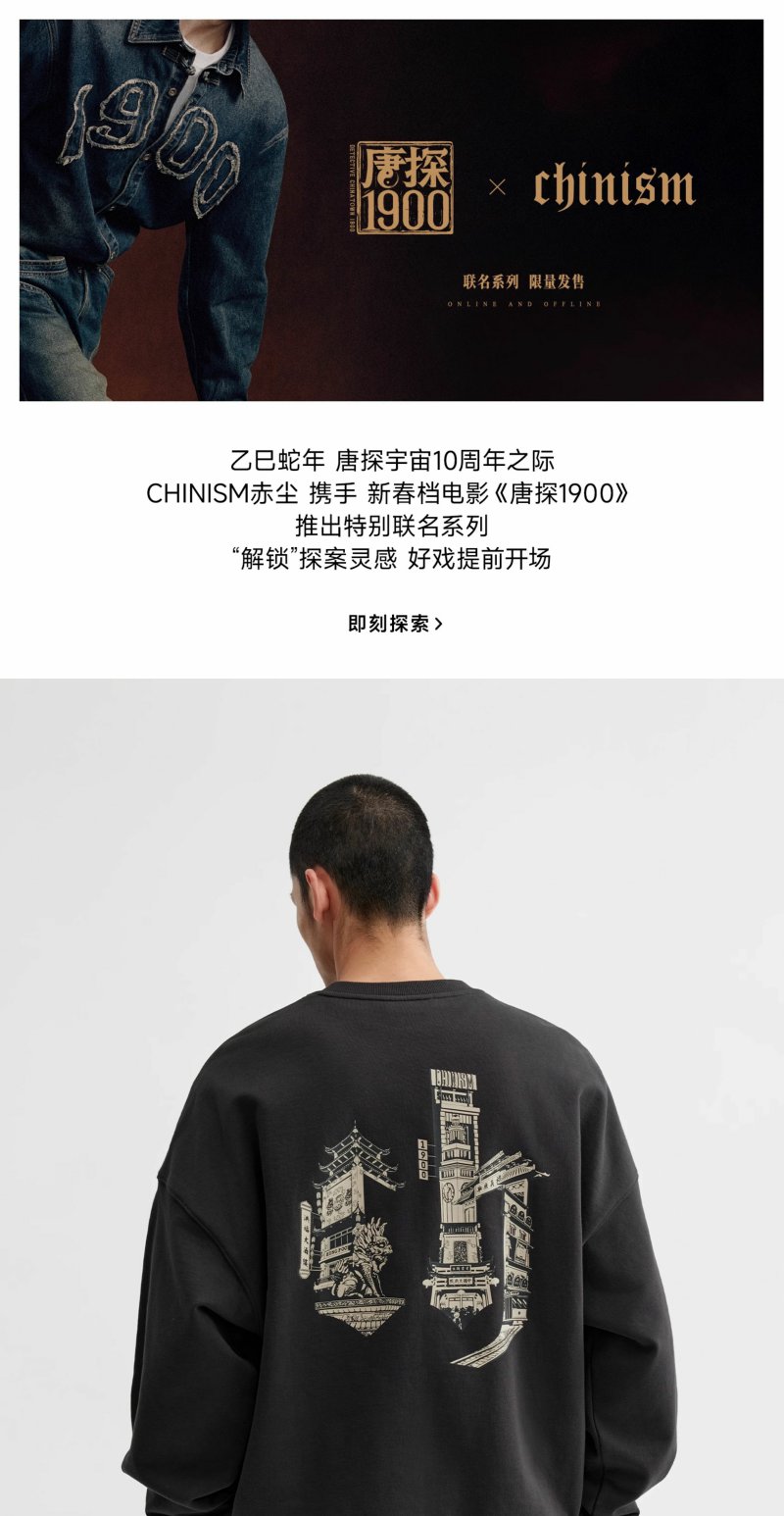 CHINISM赤尘 《唐探1900》联名系列 纯棉圆领卫衣男2025春季