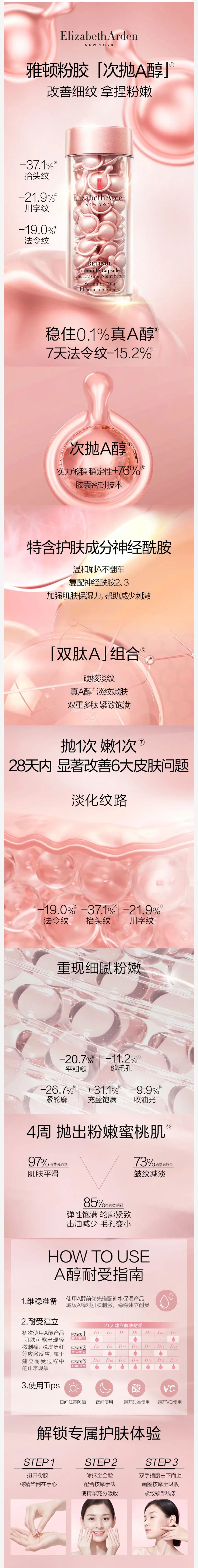 伊丽莎白雅顿· (粉胶) 次抛A醇 神经酷胺视黄醇胶囊夜间精华90粒