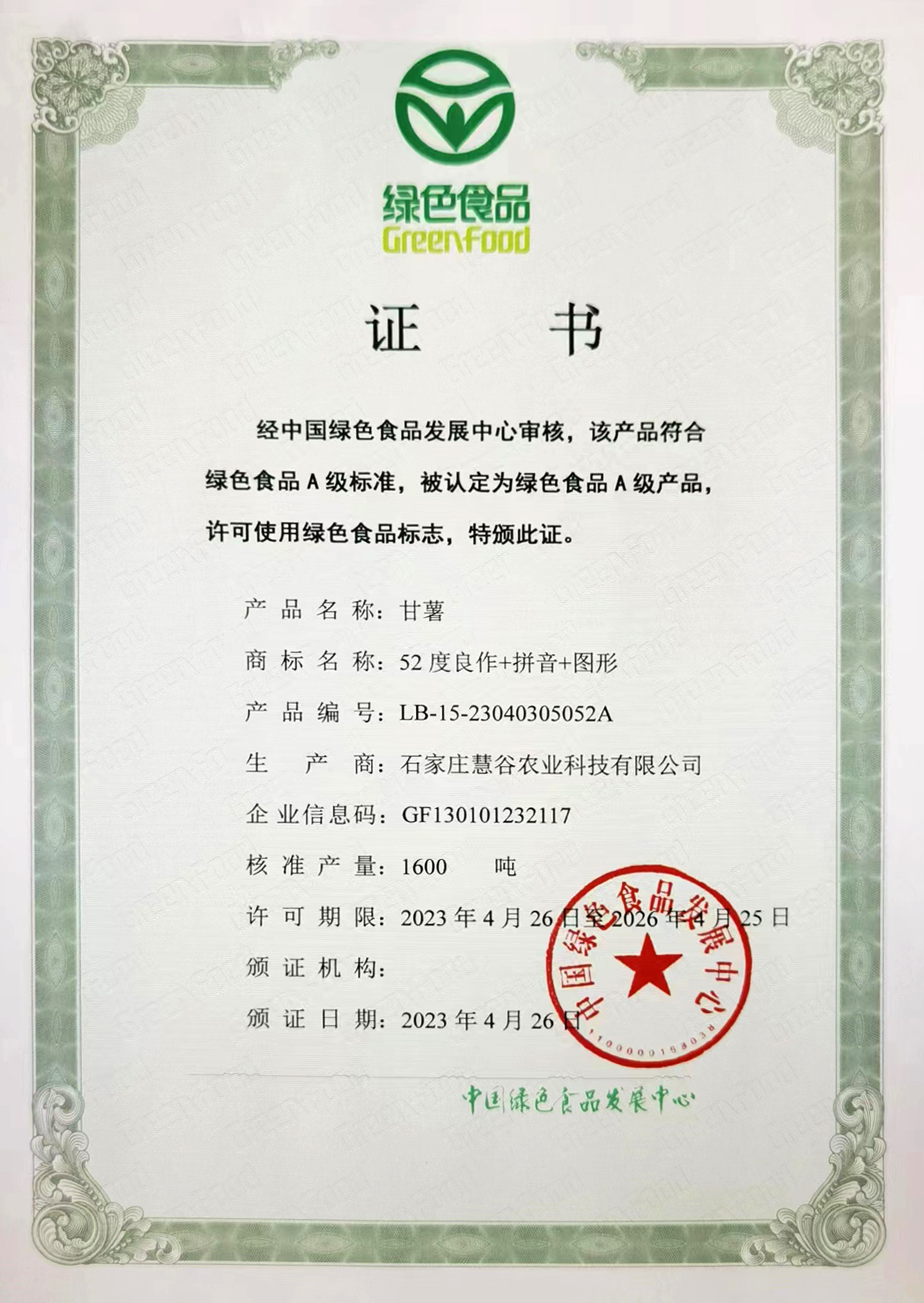 首次将红薯的甜度值52直接在名称中体现