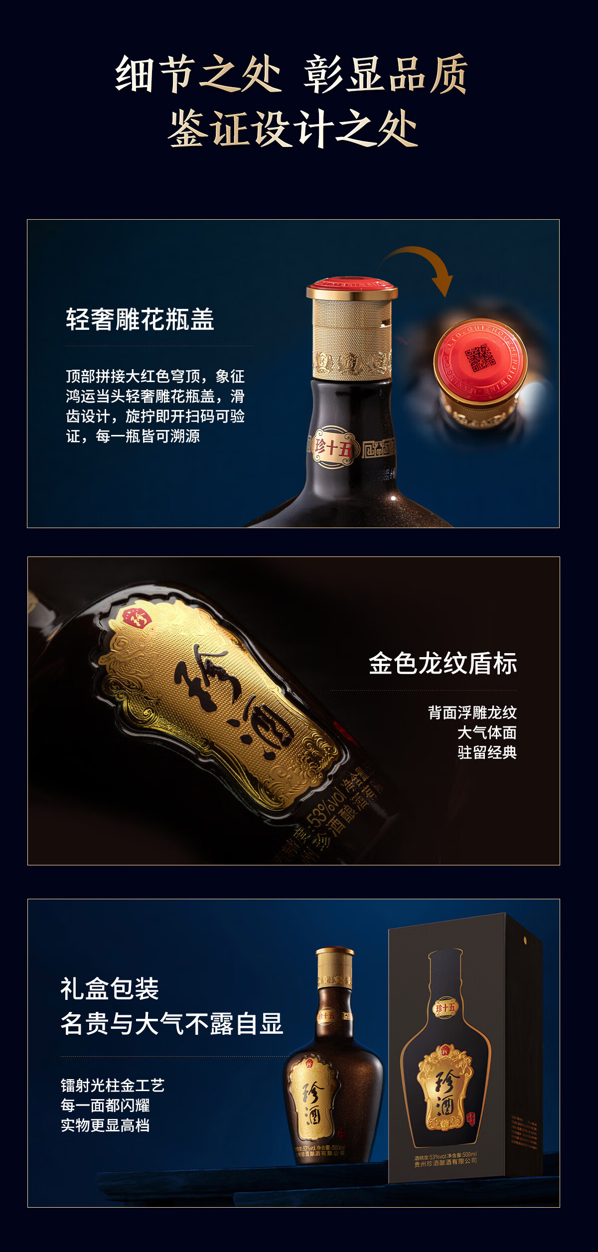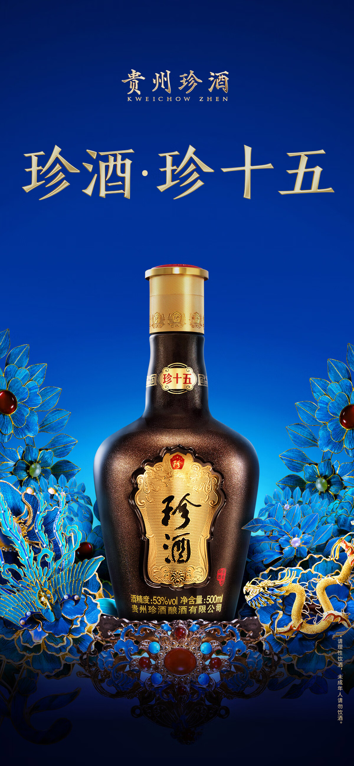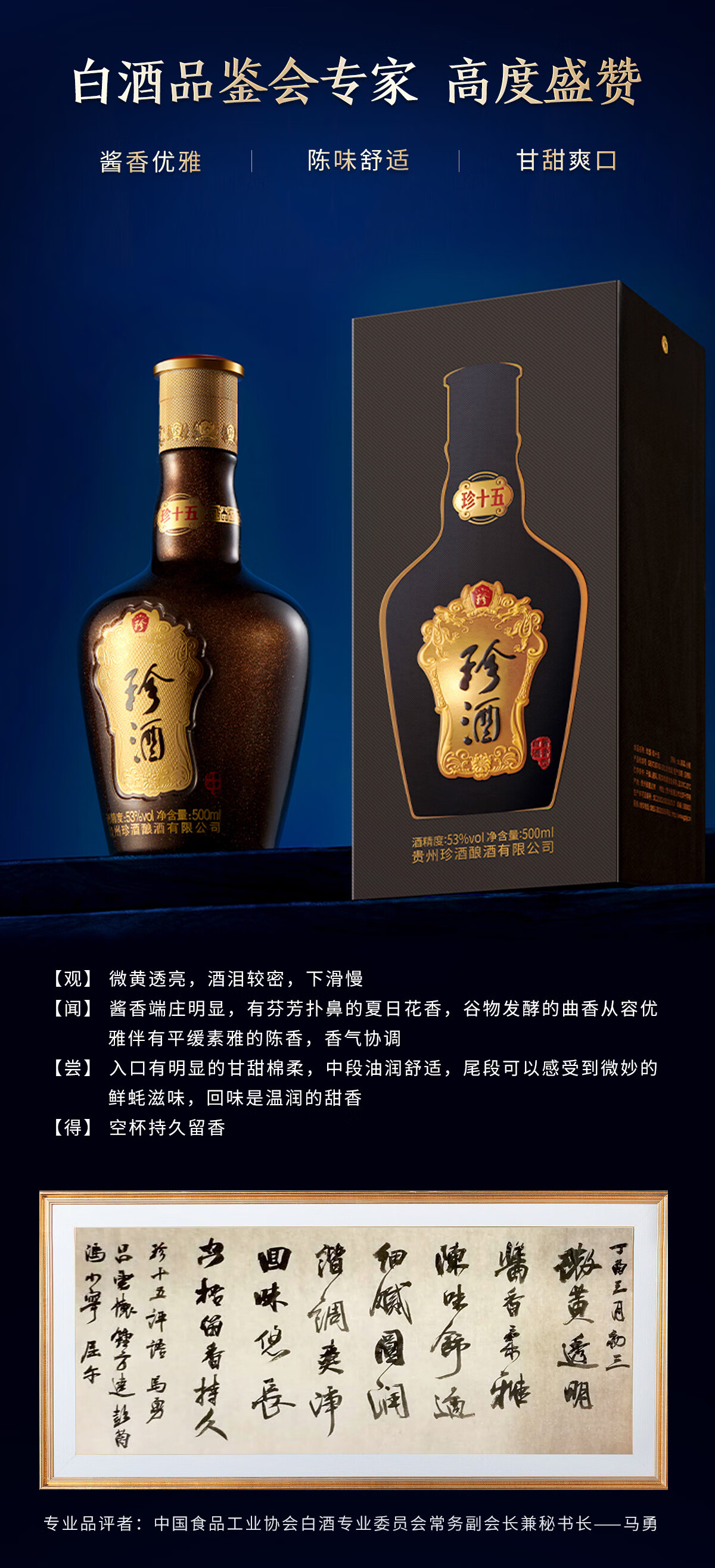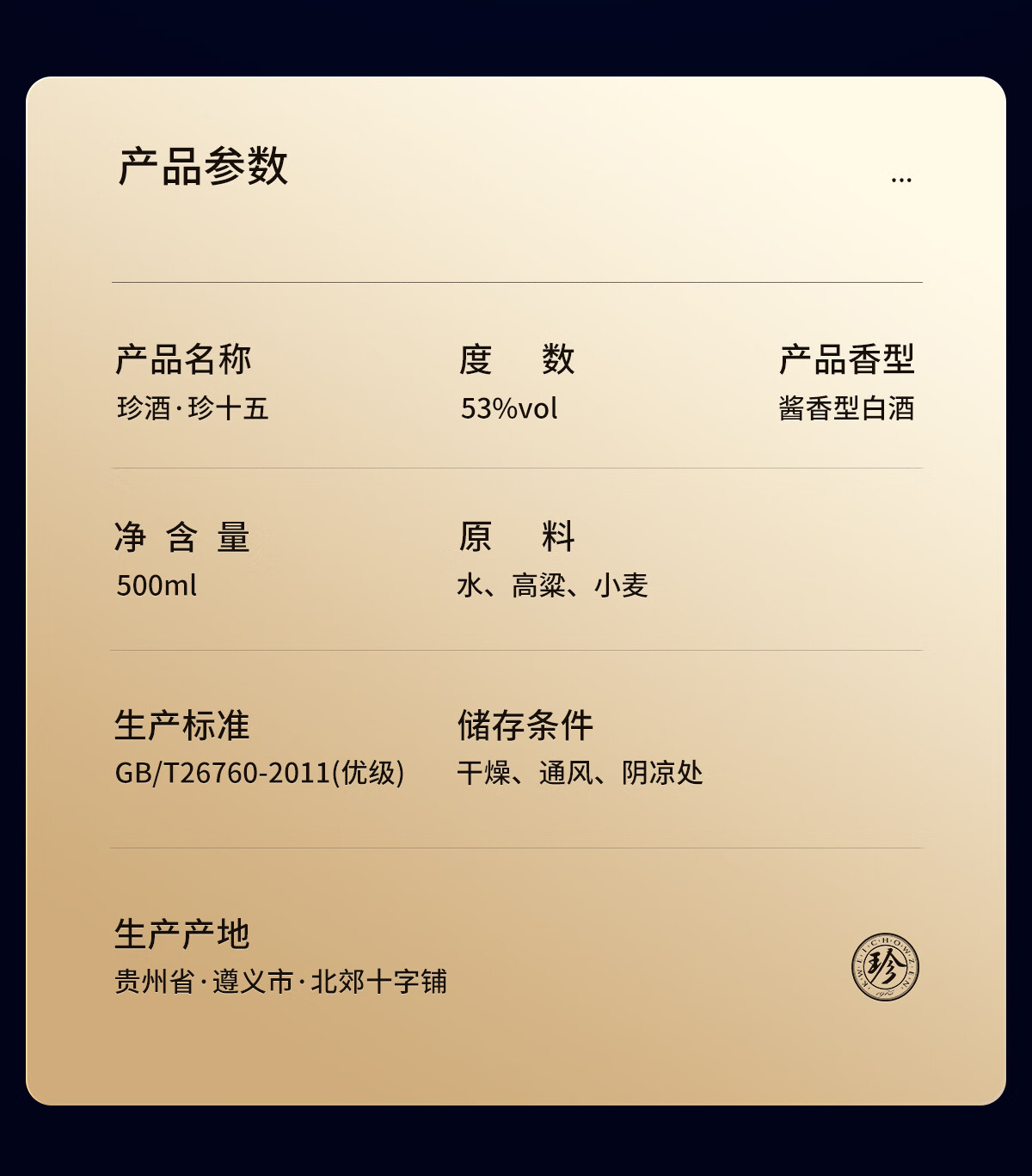 珍酒 珍十五 酱香型白酒53度 500ml单瓶装