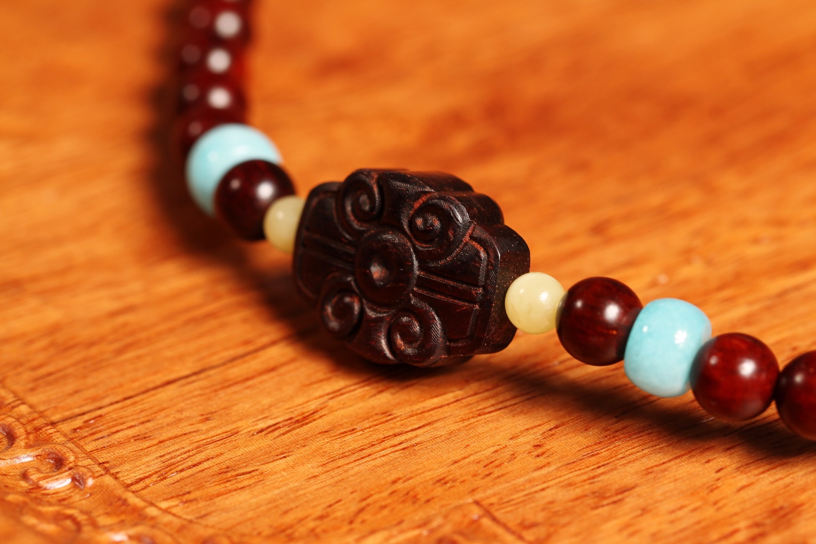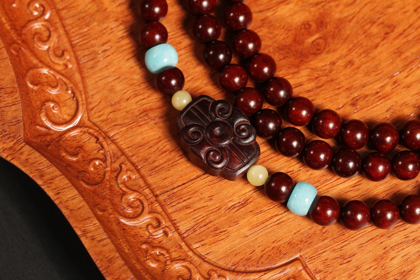 配件:紫檀卷云纹背云/蜜蜡/天河石隔片