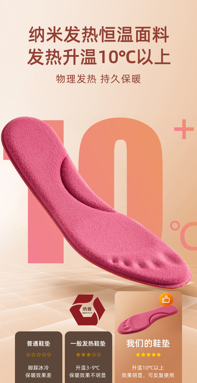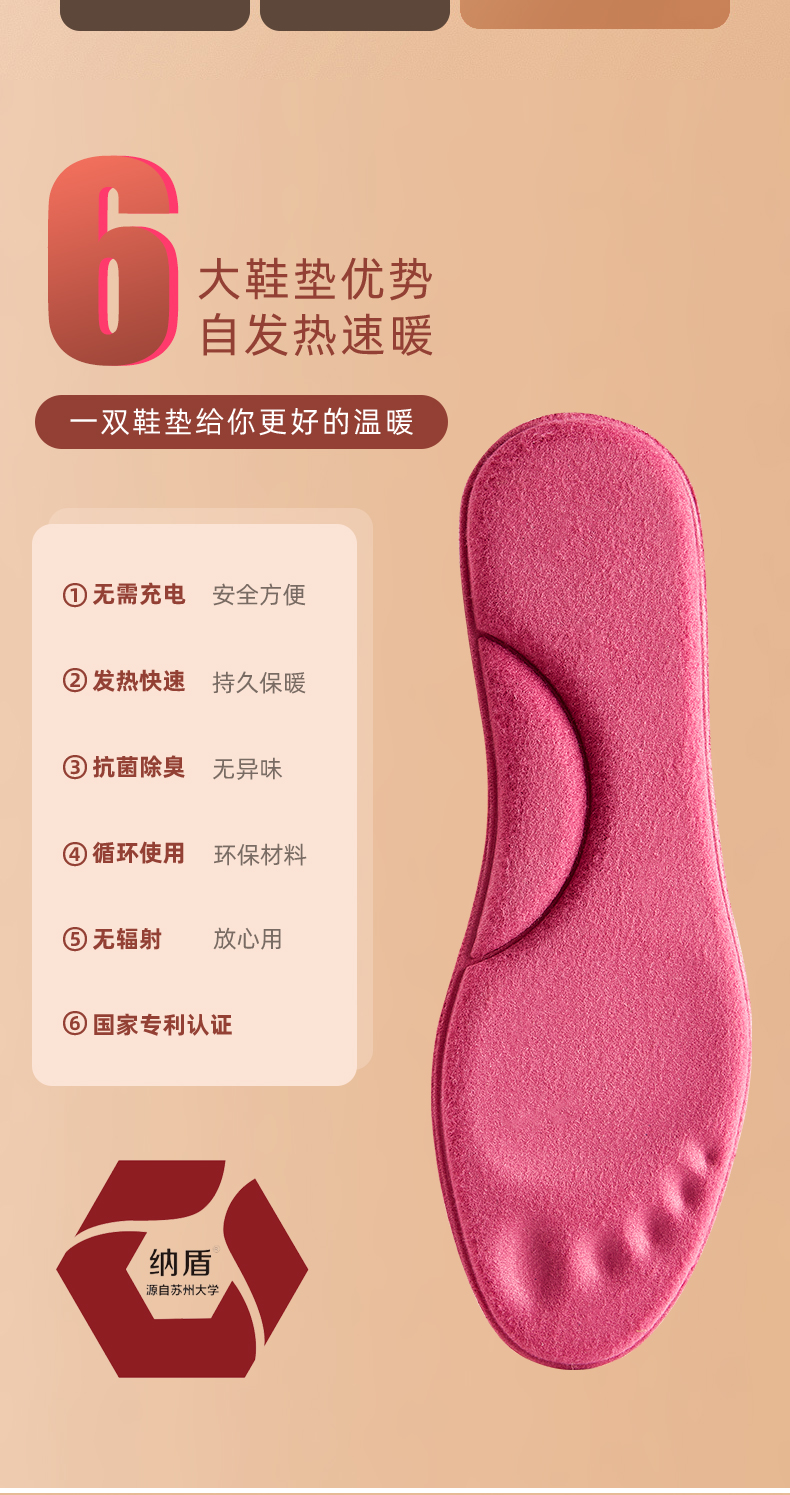 【黑科技自发热鞋垫•买1送1 】苏州大学博士团队研发 纳米纤维自发热鞋垫 物理发热持久保暖 抗jun除臭 人体工学脚掌设计
