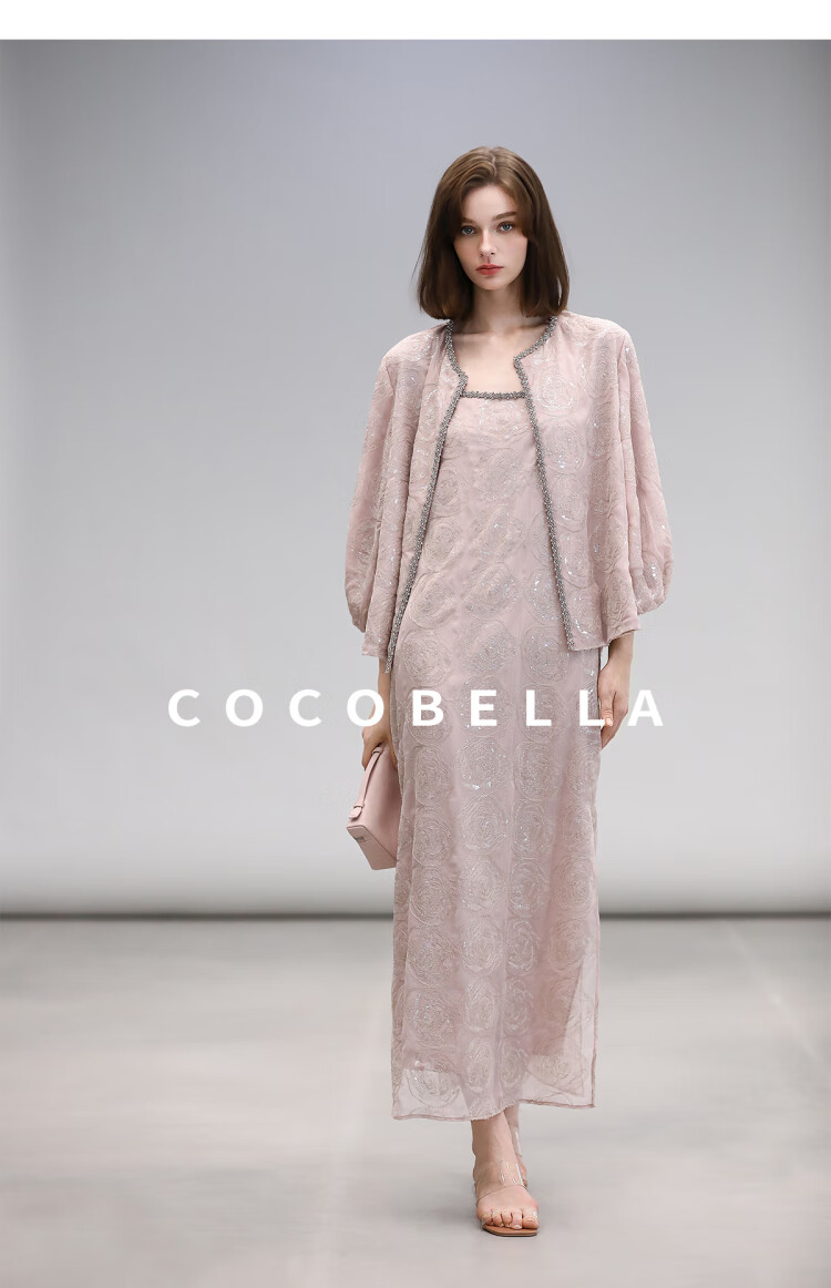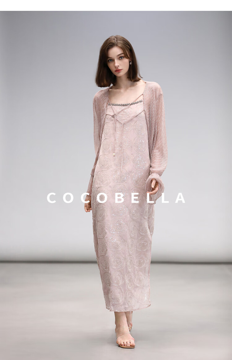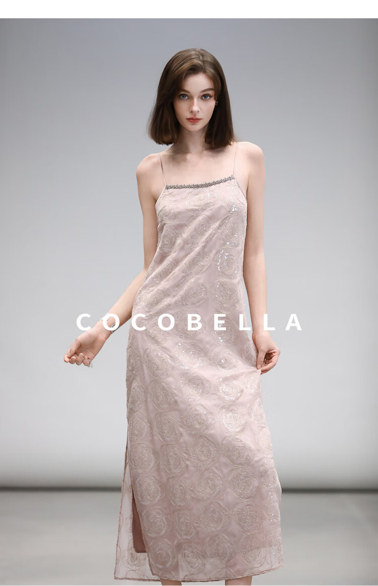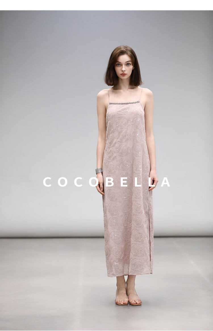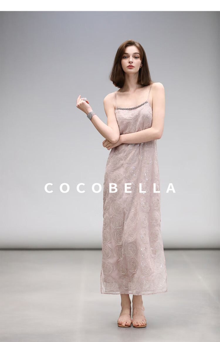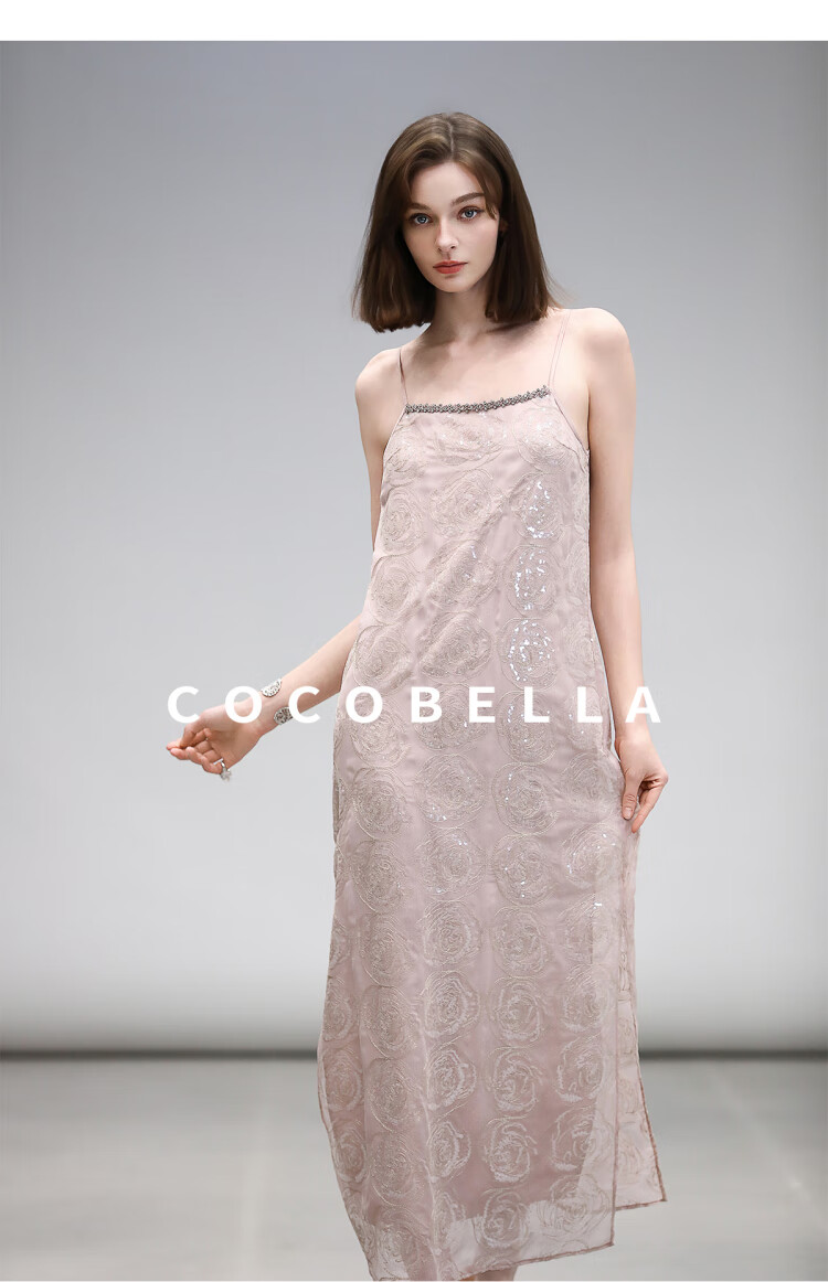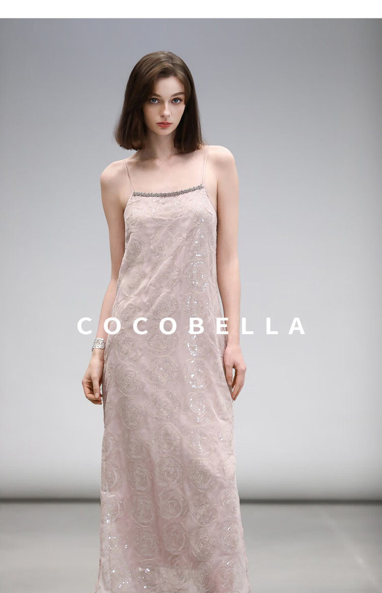 COCOBELLA重工亮片盘绣吊带裙女度假风温柔长款连衣裙FR7091