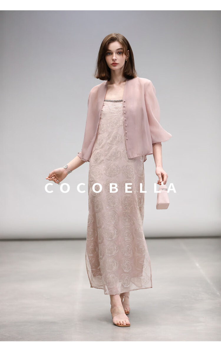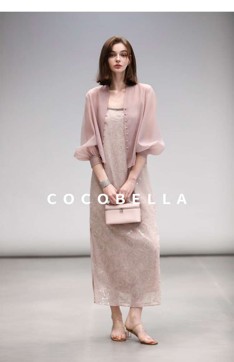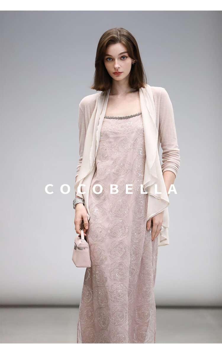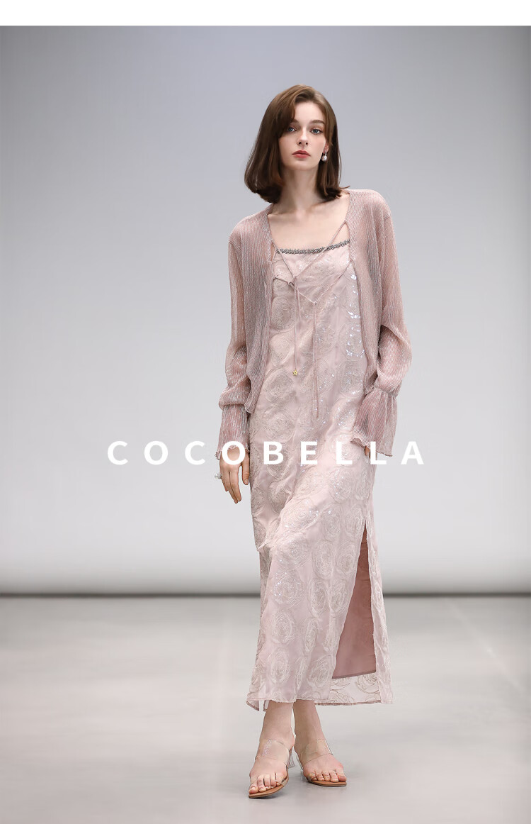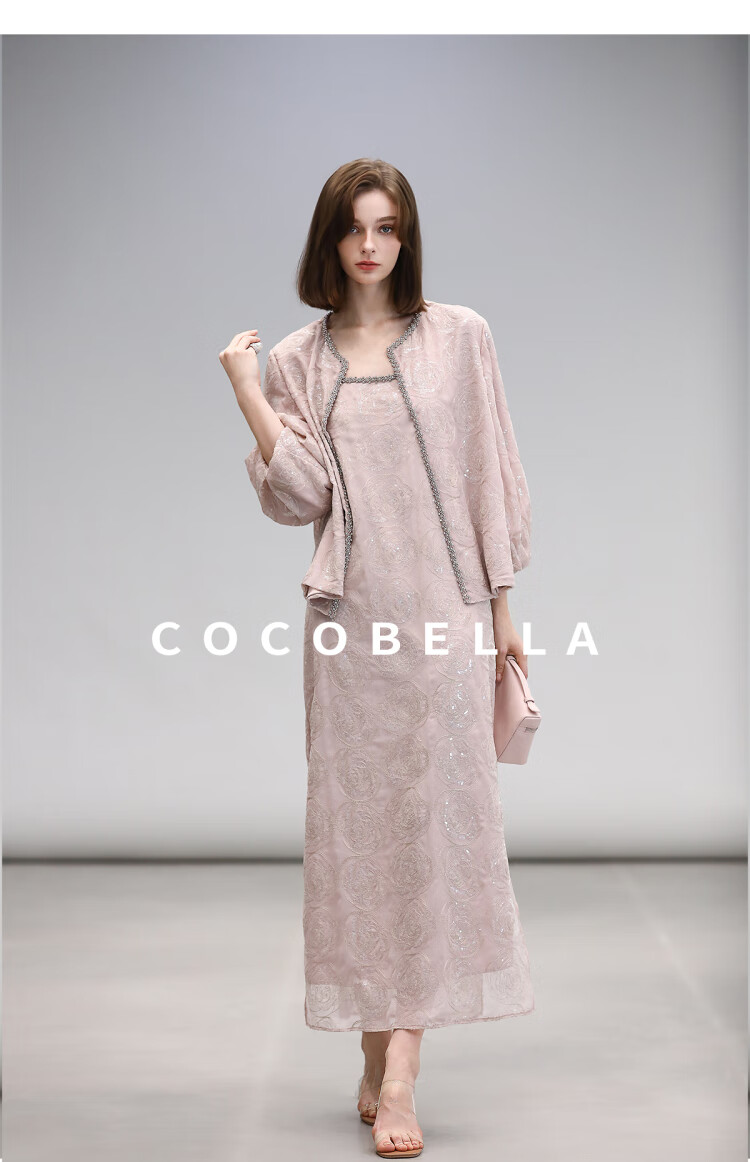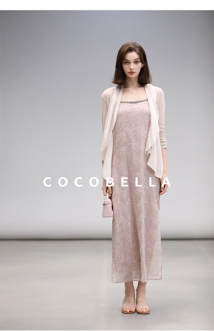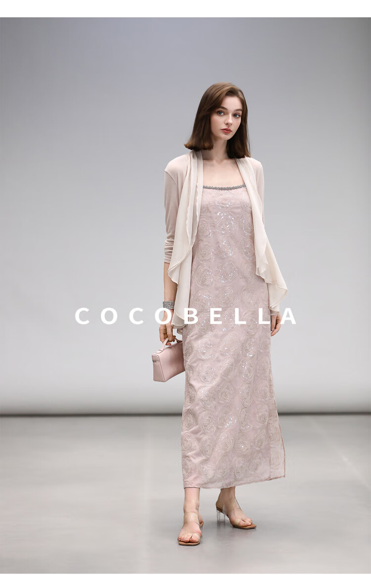 COCOBELLA重工亮片盘绣吊带裙女度假风温柔长款连衣裙FR7091