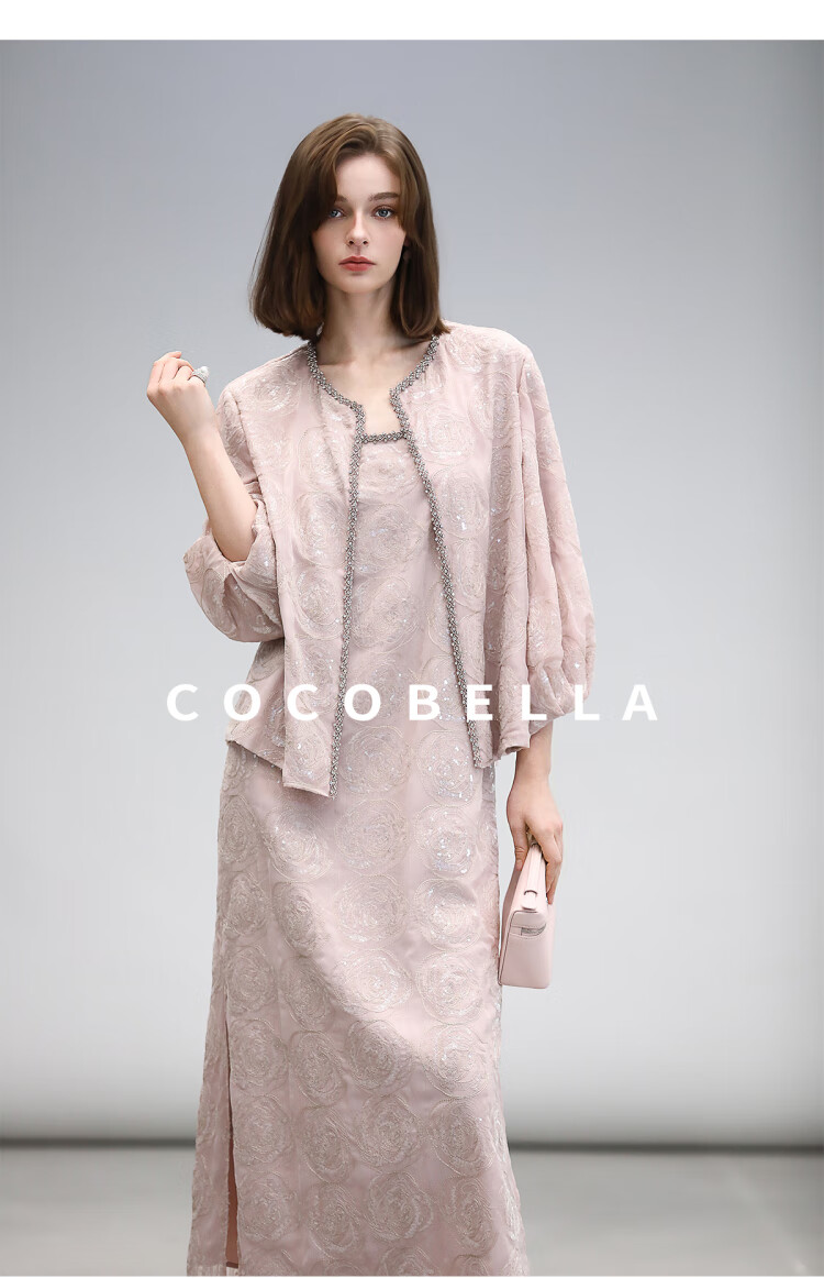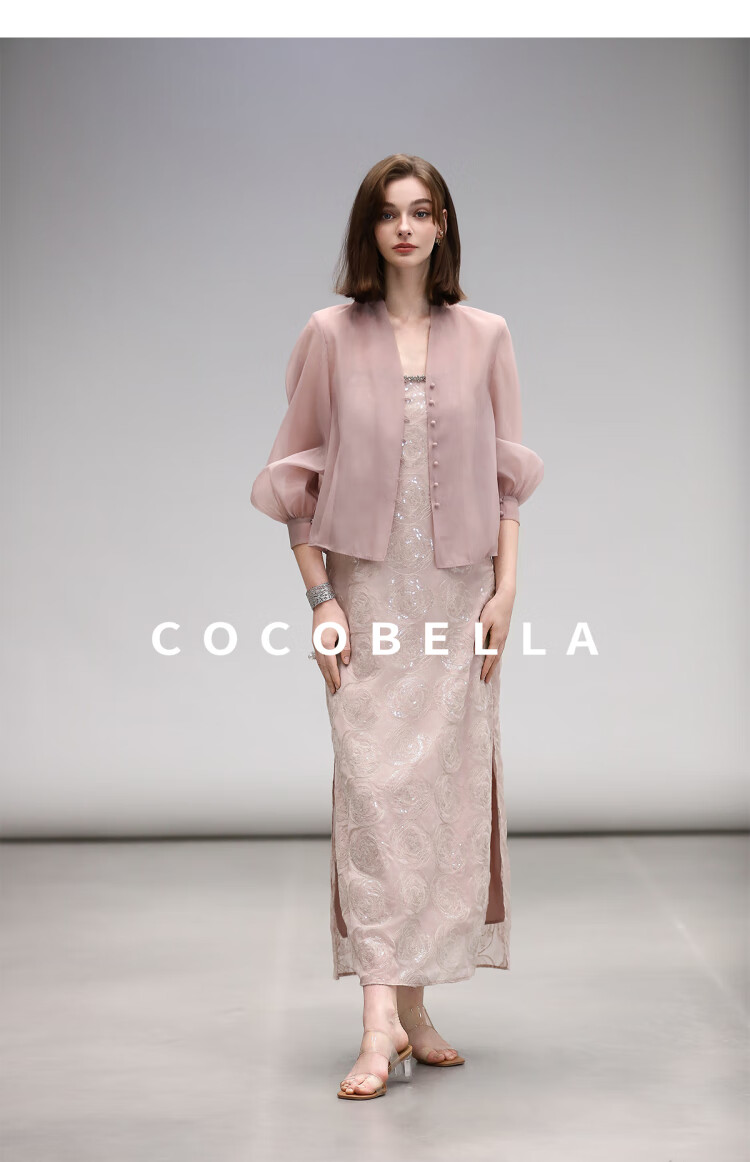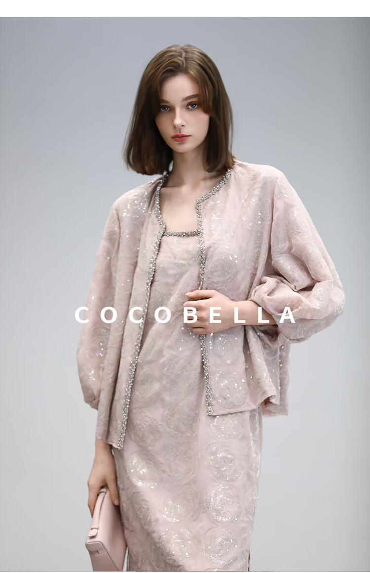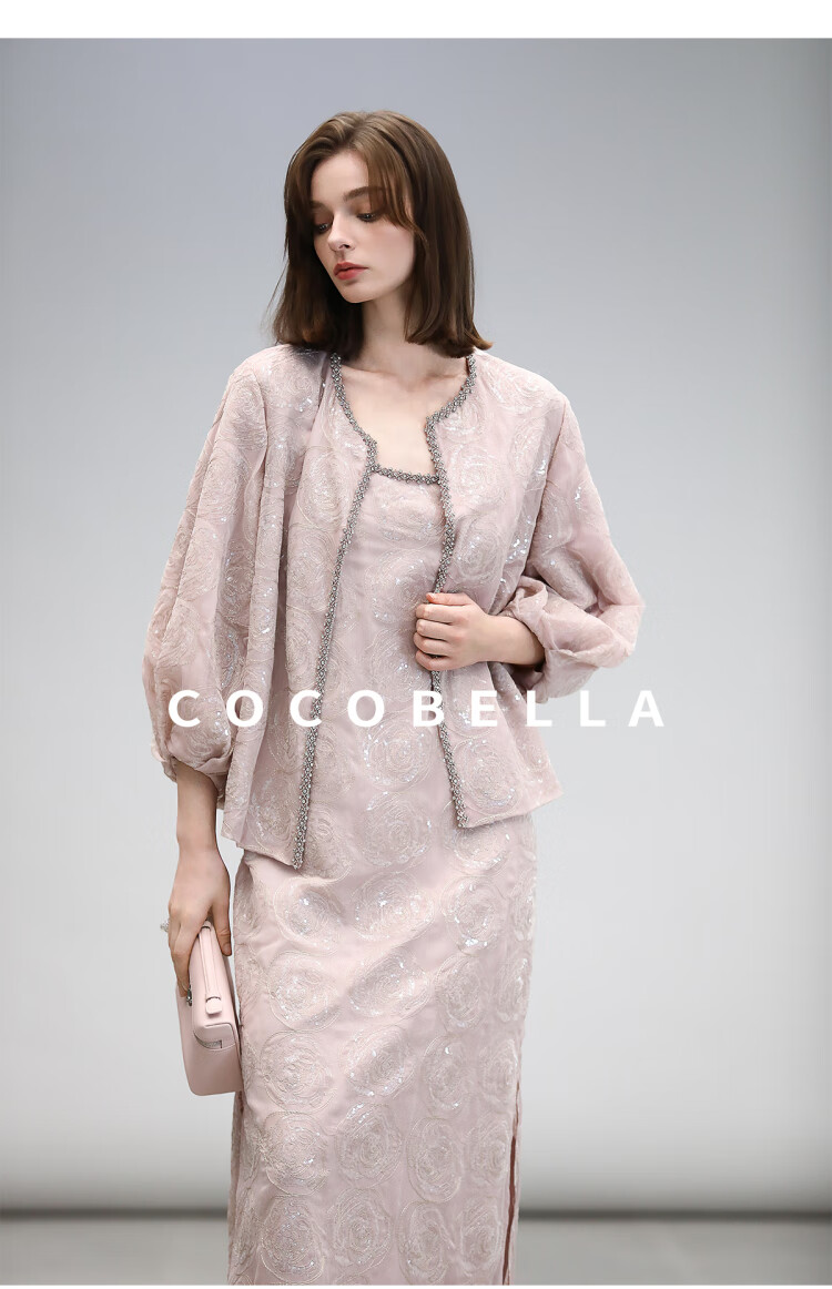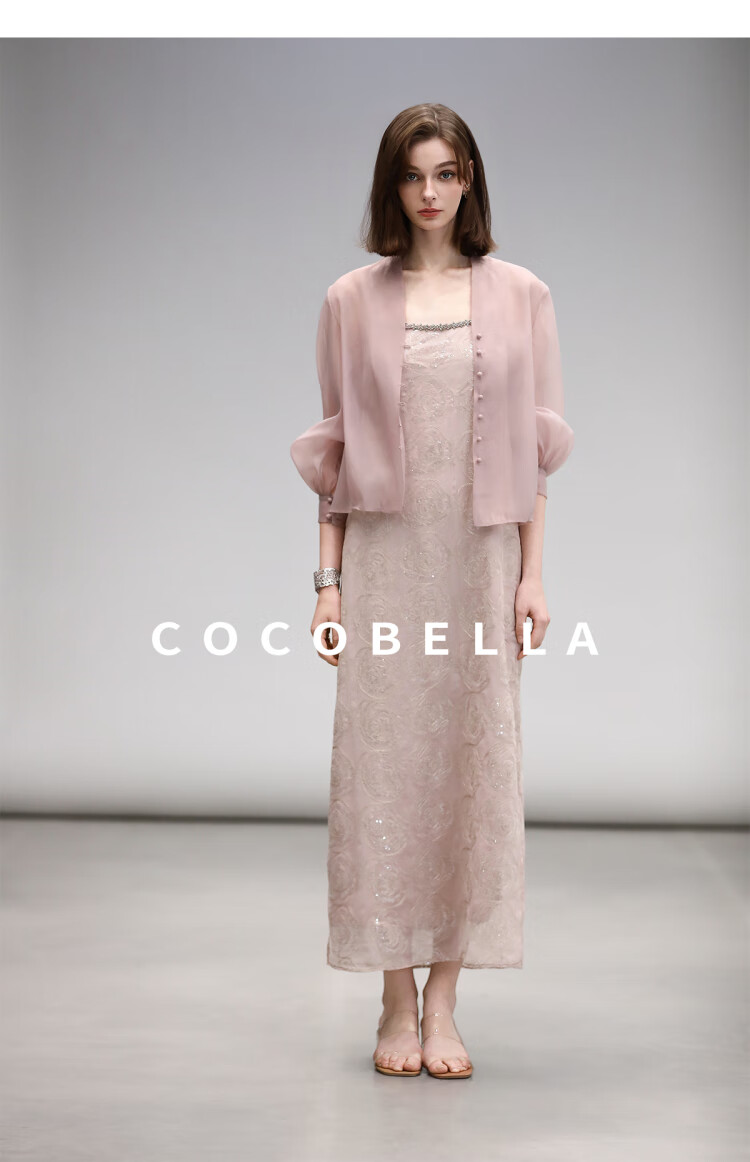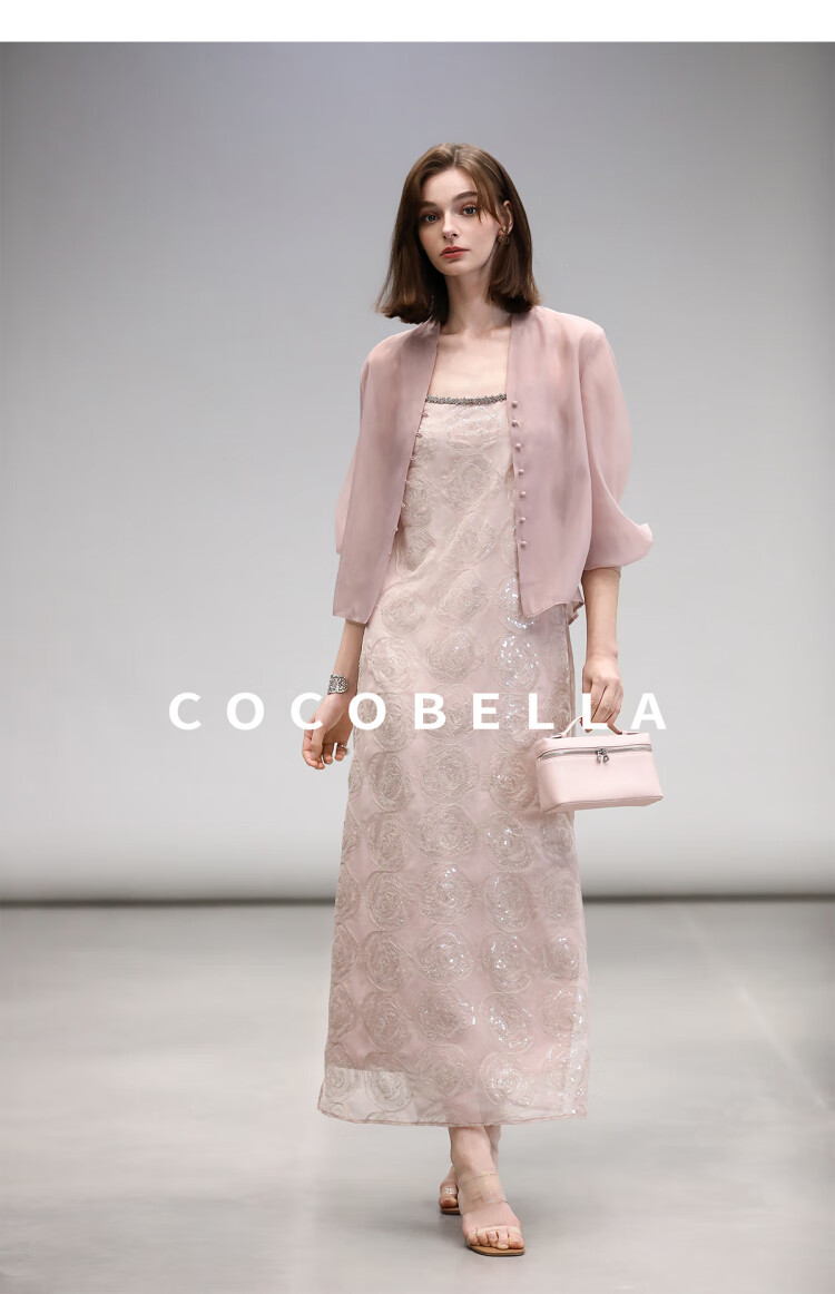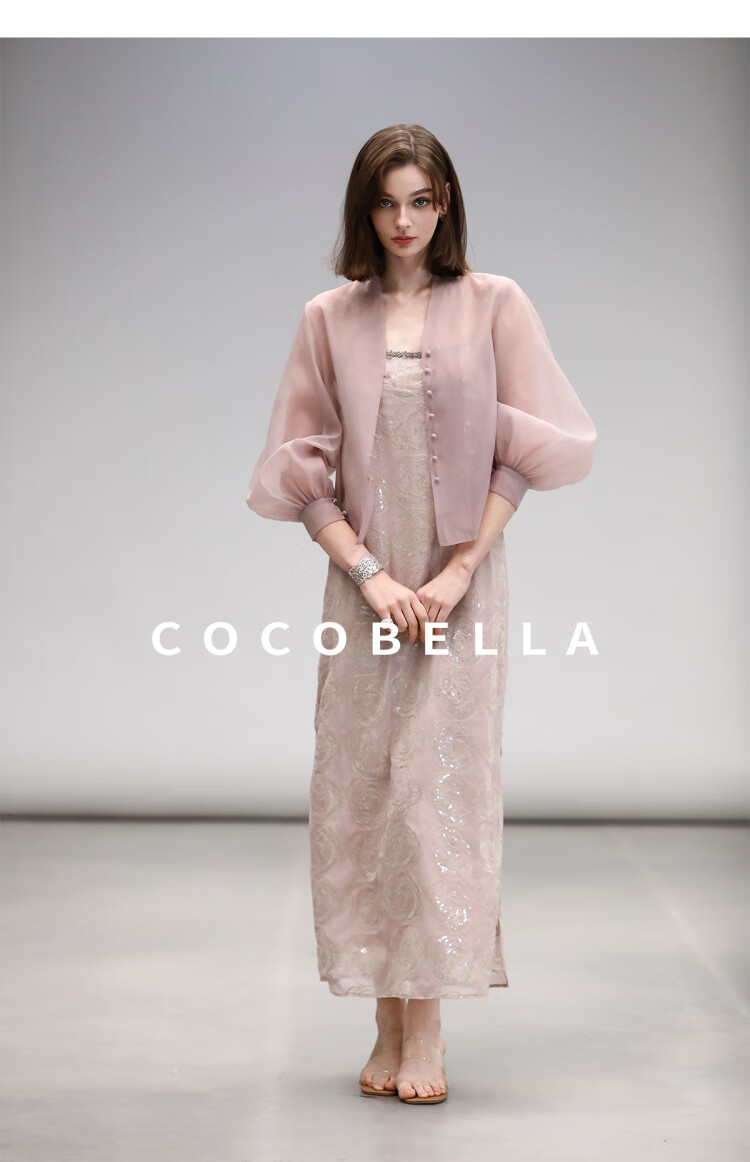 COCOBELLA重工亮片盘绣吊带裙女度假风温柔长款连衣裙FR7091