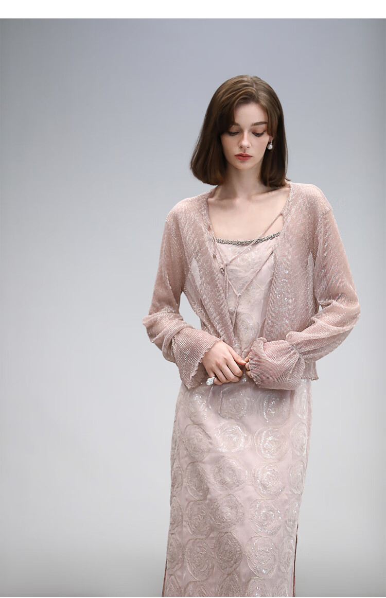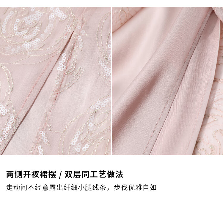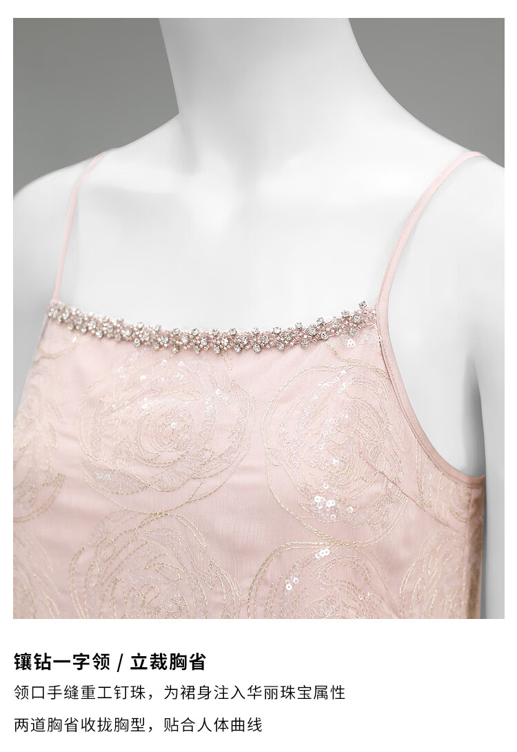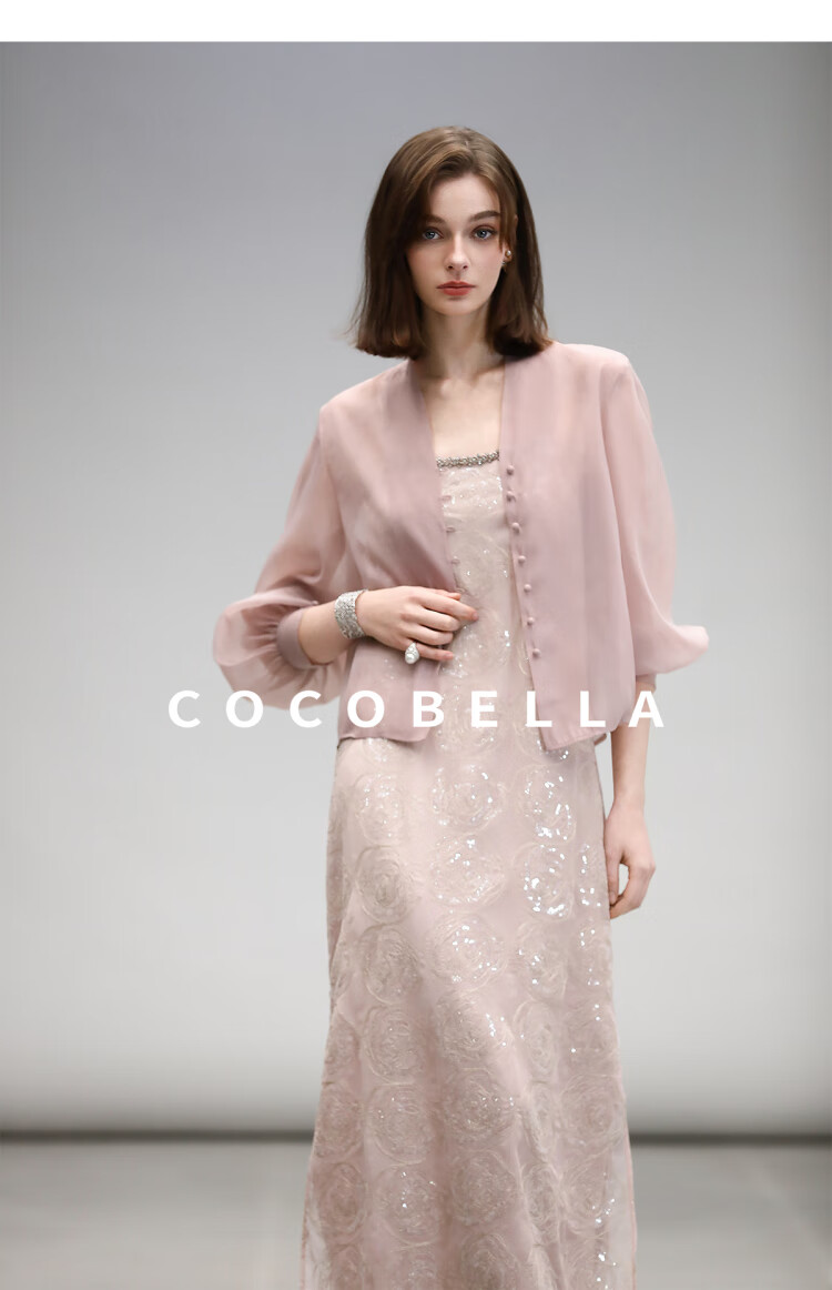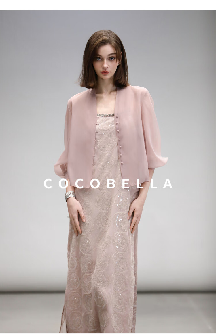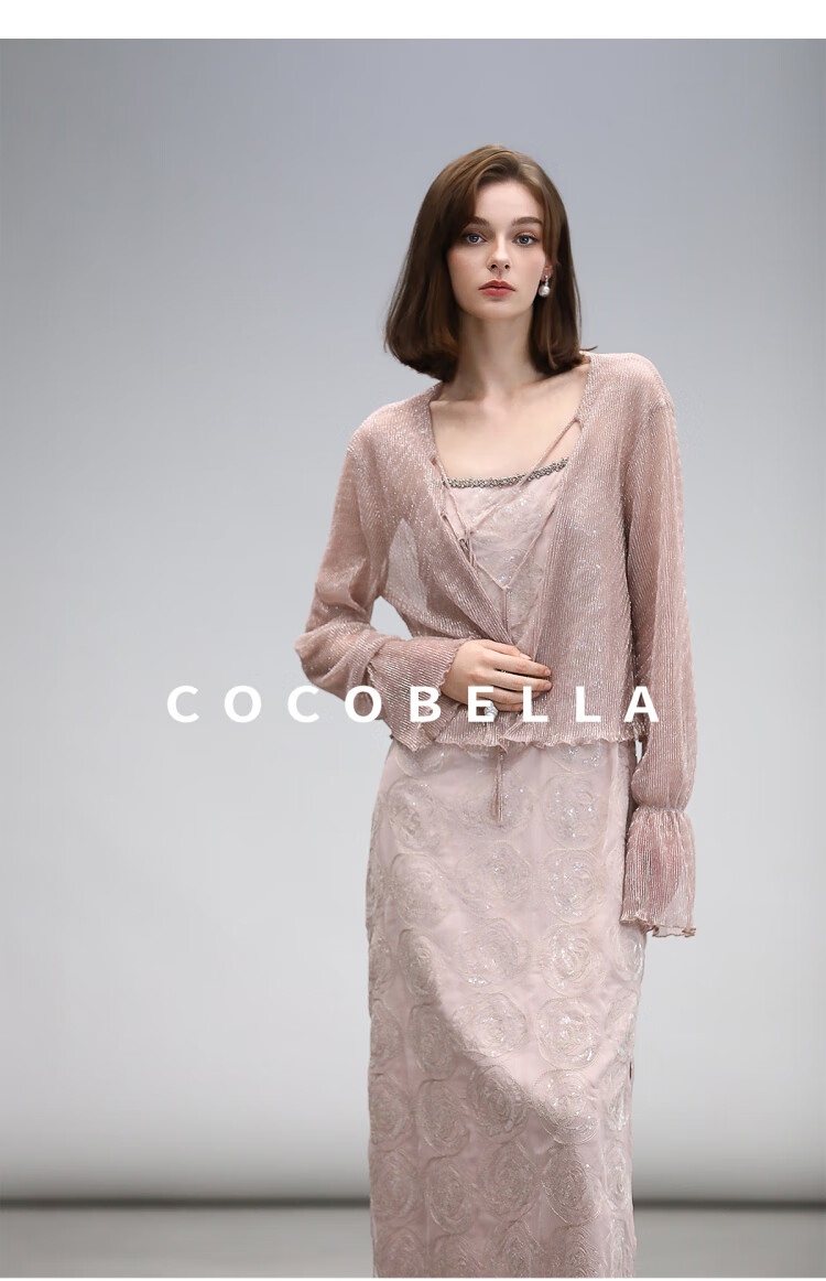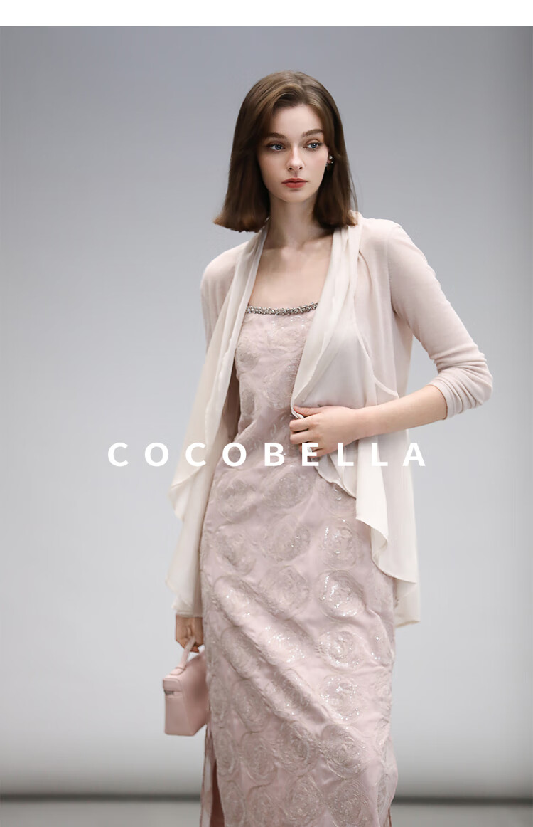 COCOBELLA重工亮片盘绣吊带裙女度假风温柔长款连衣裙FR7091