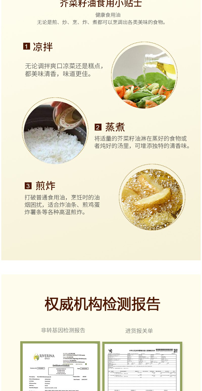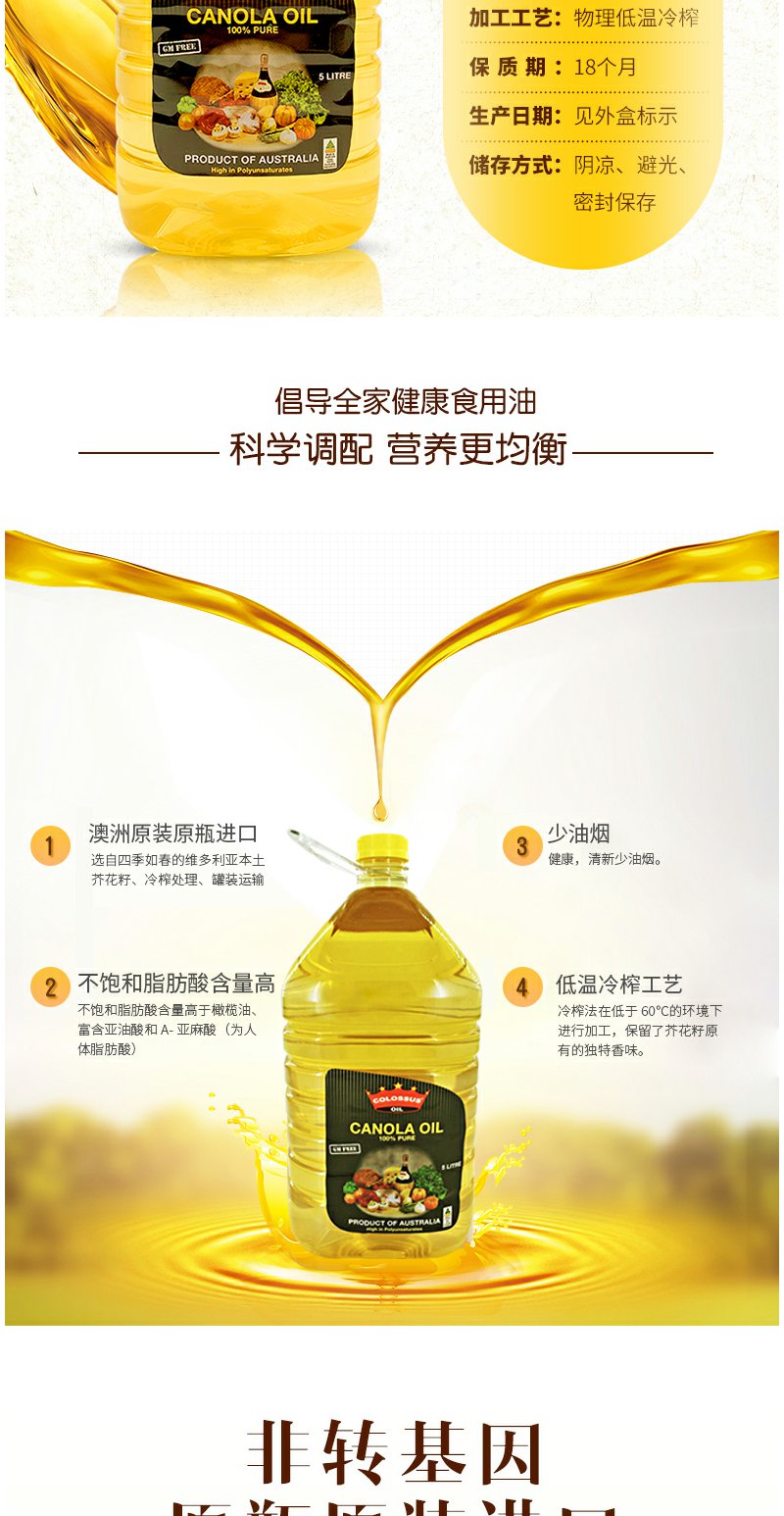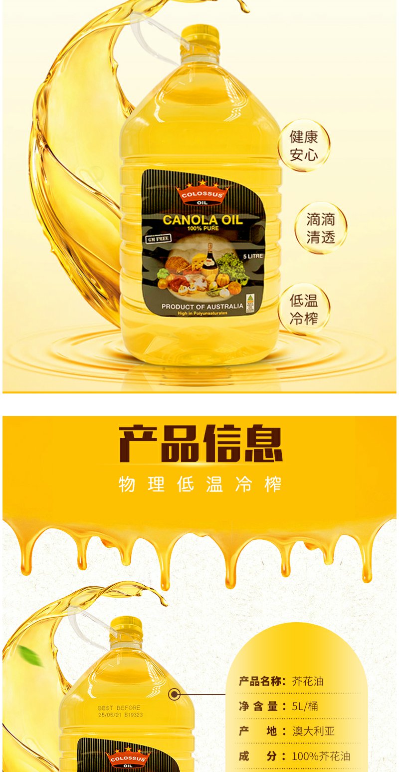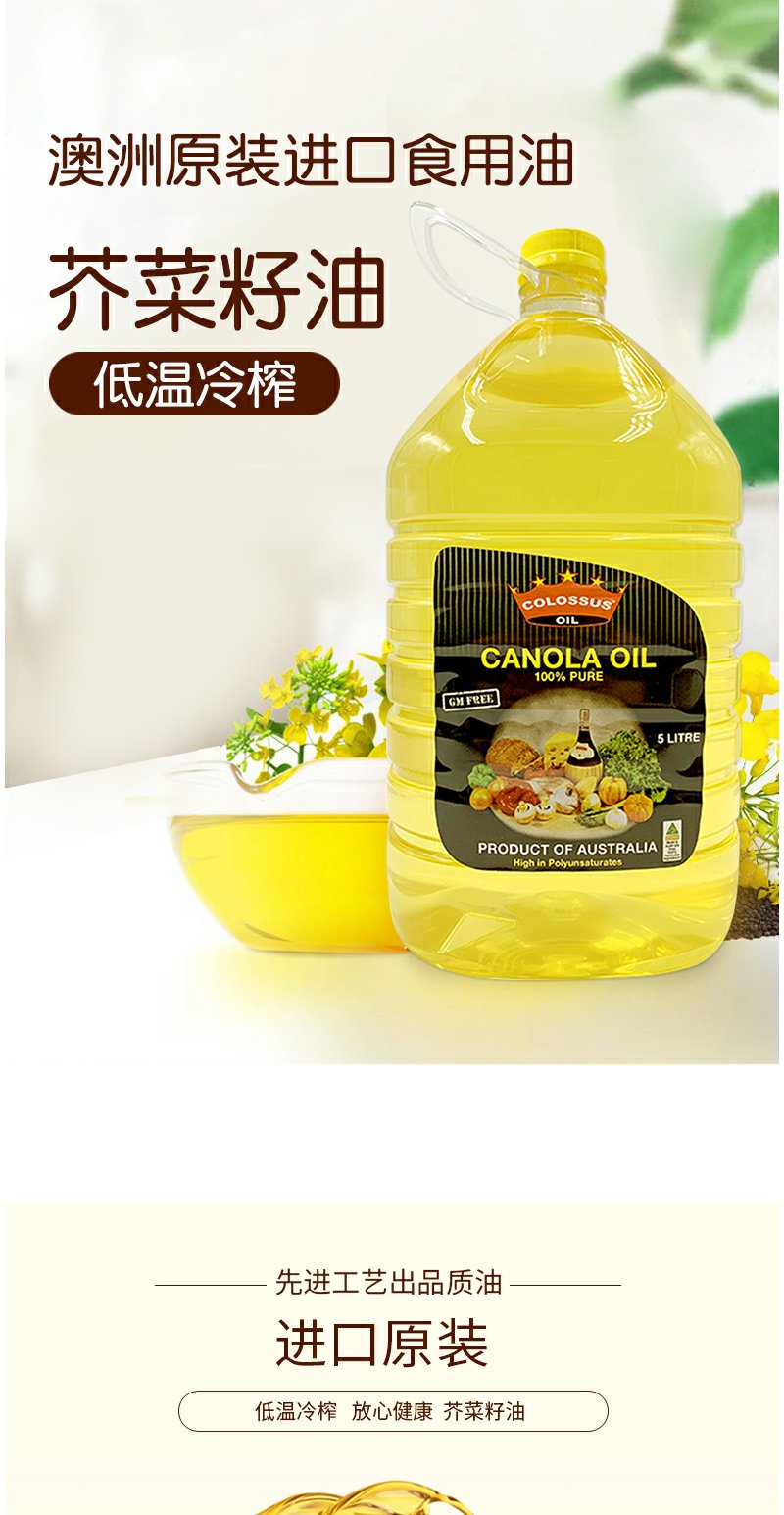 原装进口澳大利亚非转基因食用油组合芥花油油5L物理压榨营养丰富