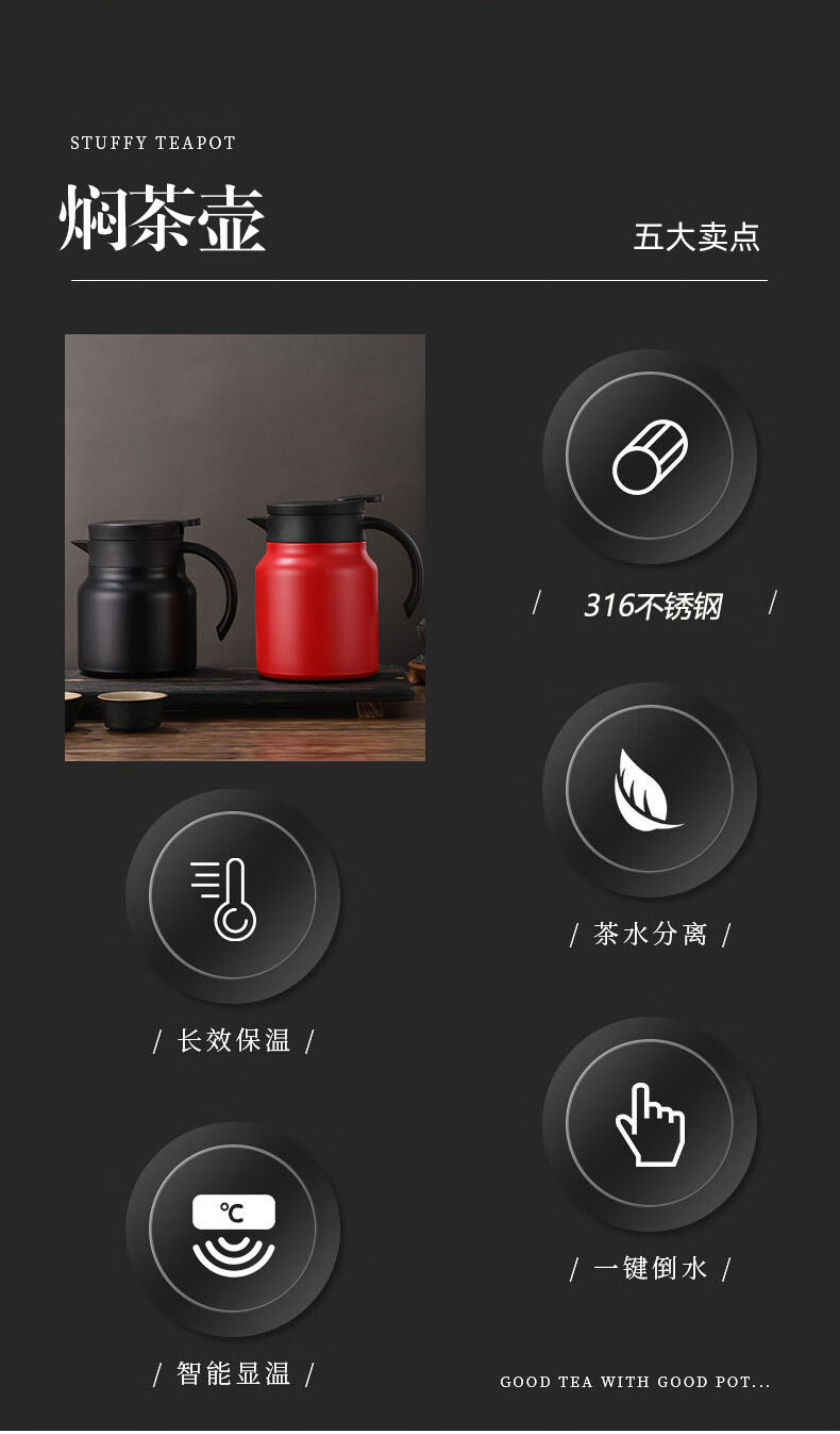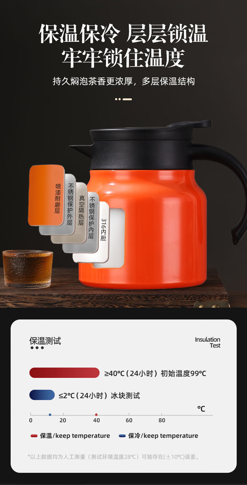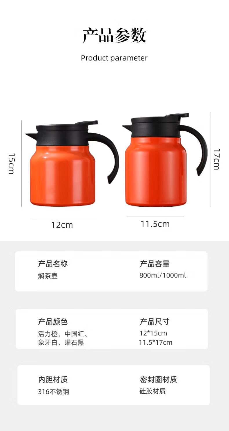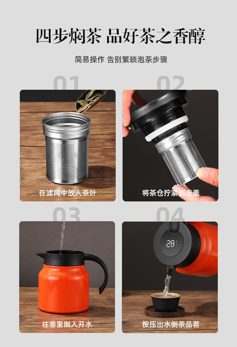 【自营】维米仕(vimees)智能温显焖茶壶焖烧杯800ml 红色VM-H051