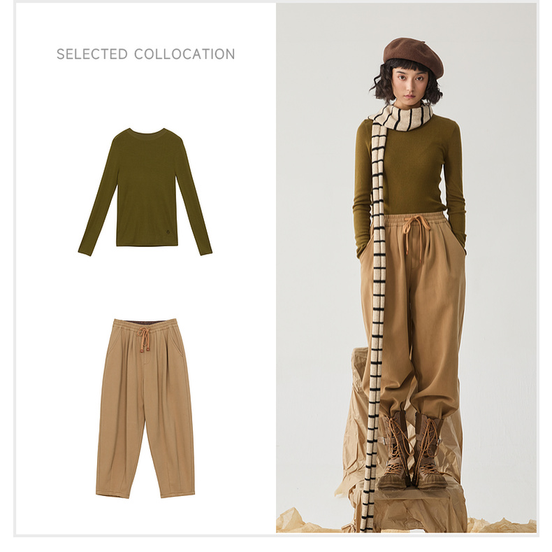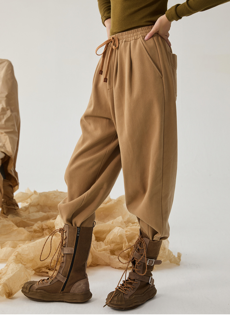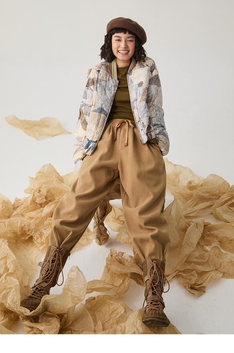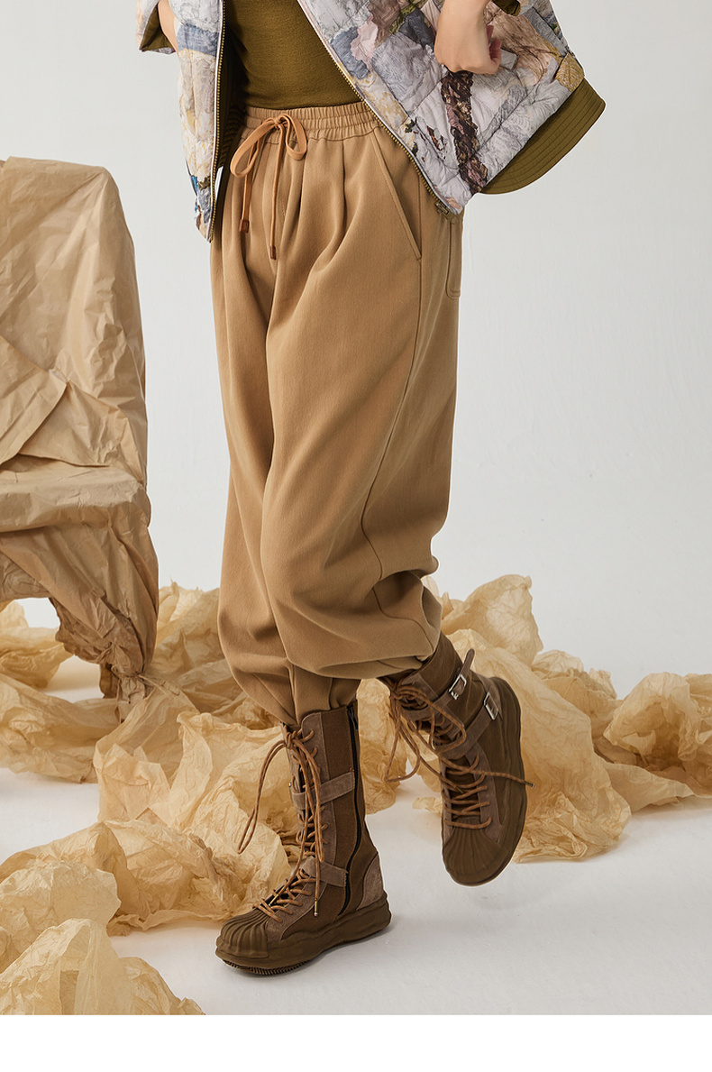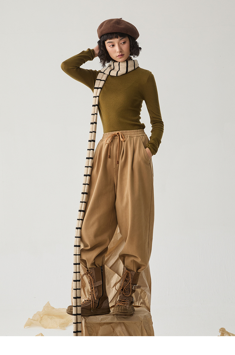 谜底直筒裤女2024冬款百搭松紧腰宽松休闲裤卫裤九分裤244MK1559