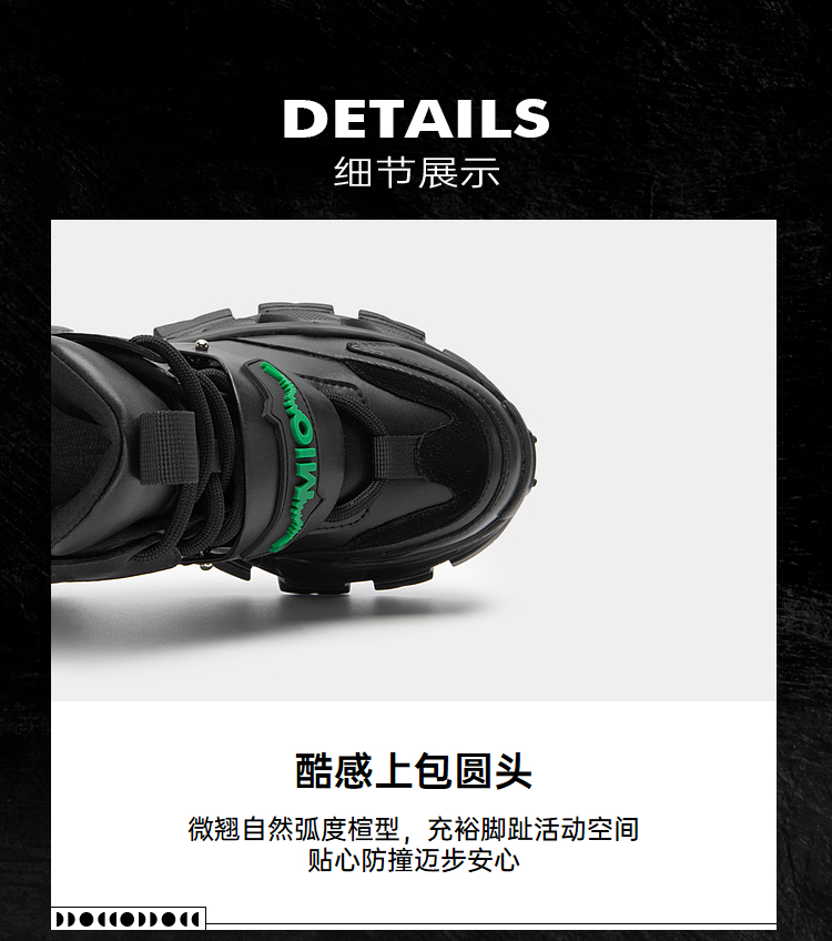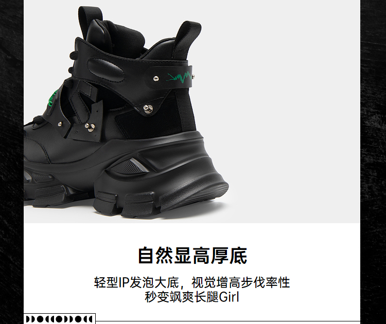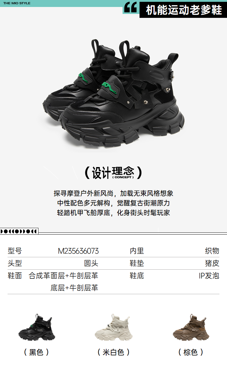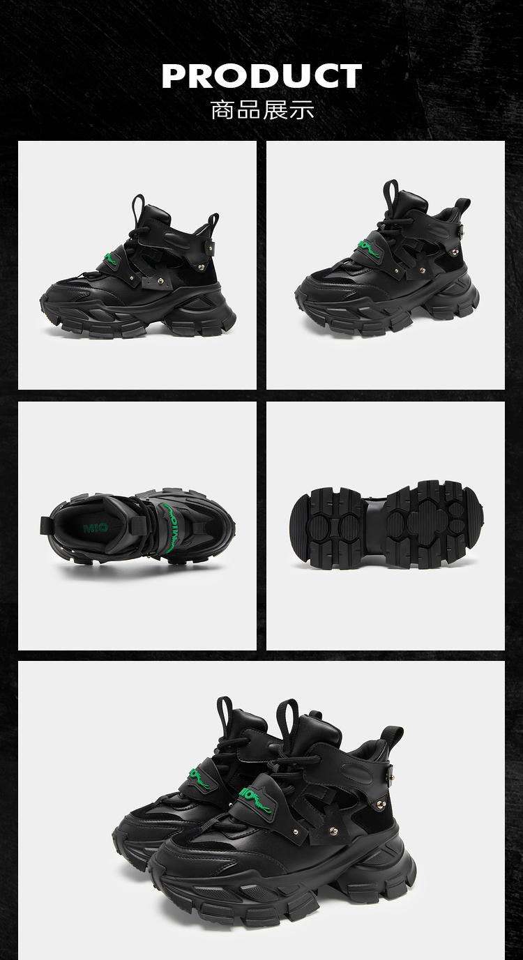 MIO米奥圆头高跟增高鞋老爹鞋机能运动高帮鞋酷感厚底休闲鞋女M235636073