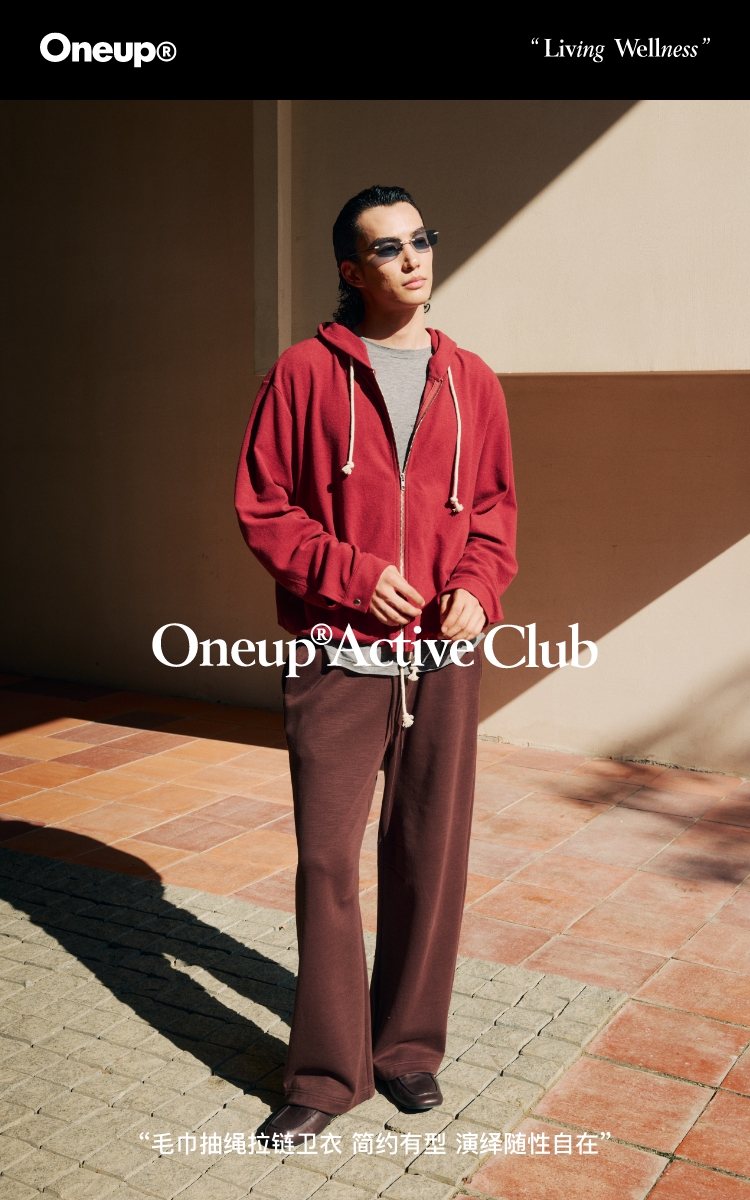 oneup毛巾抽绳拉链卫衣(男女同款)