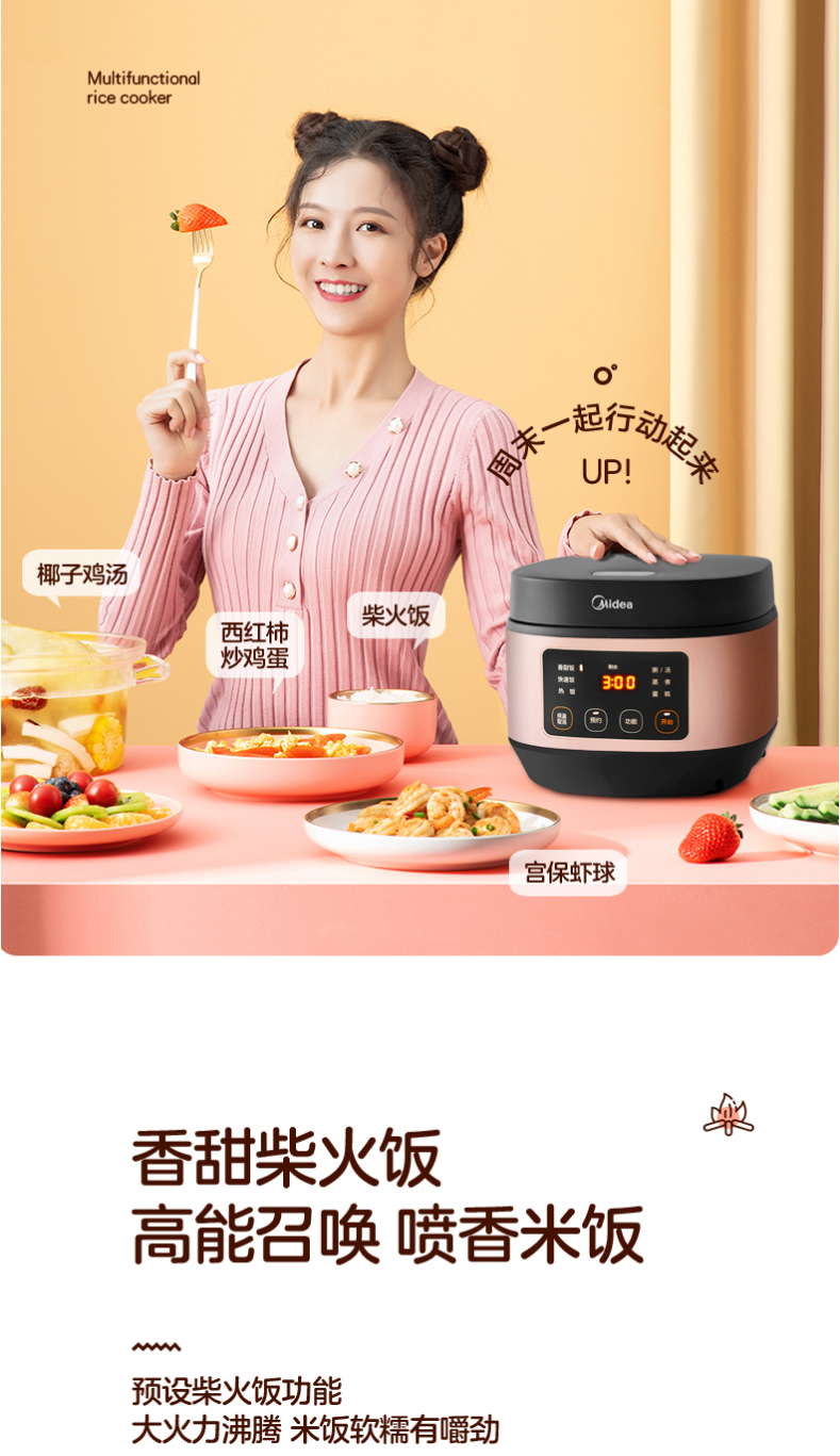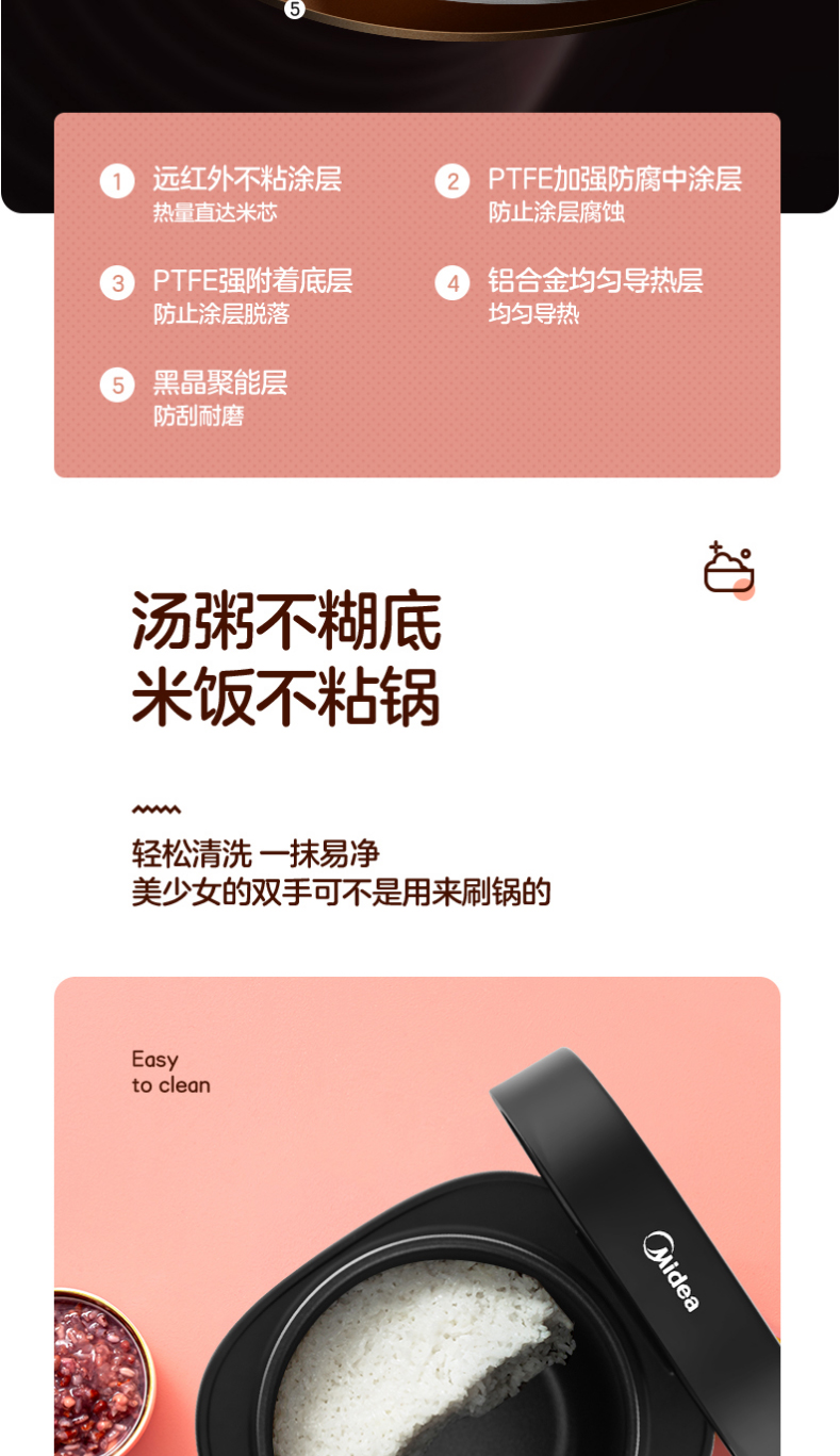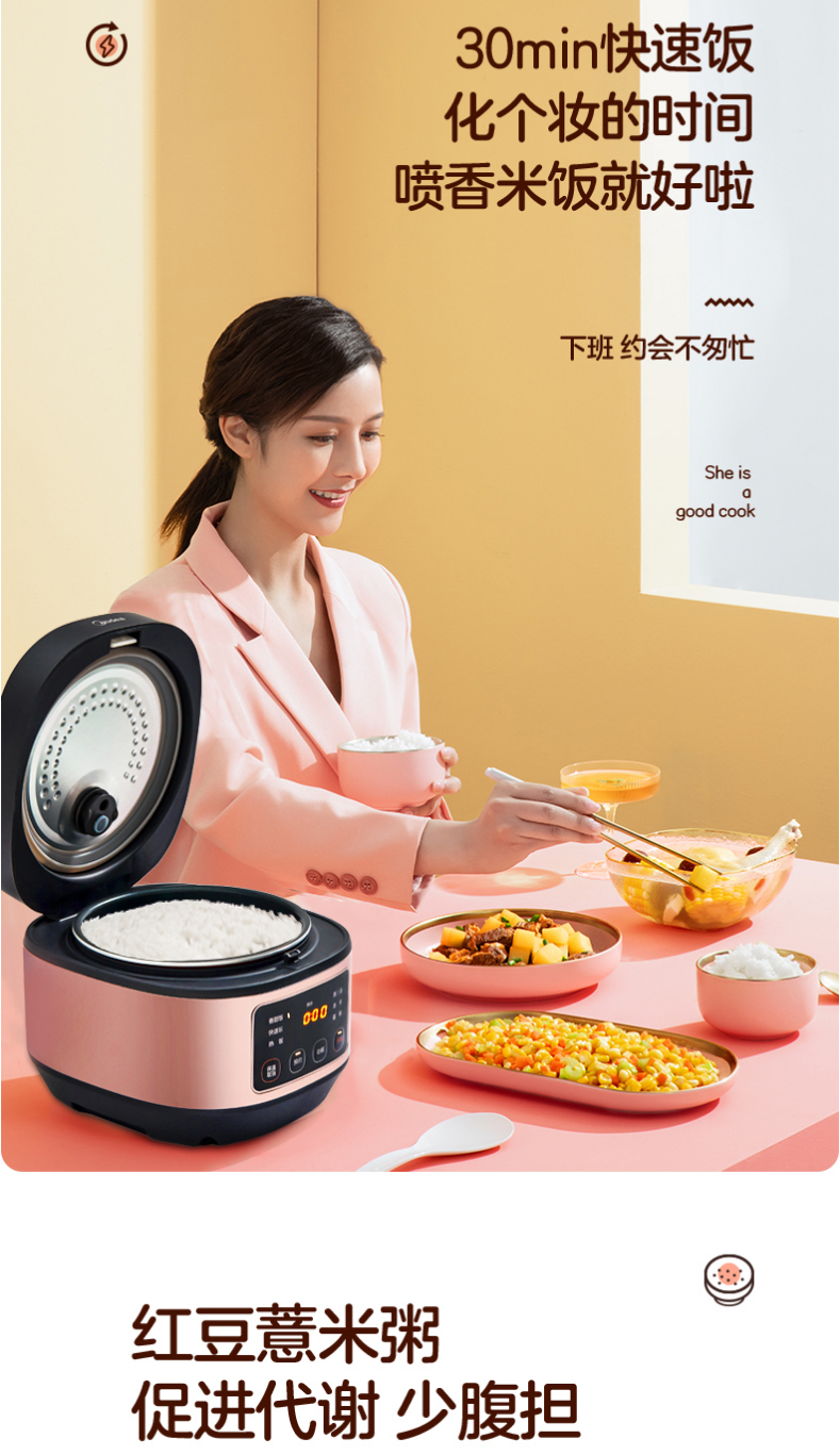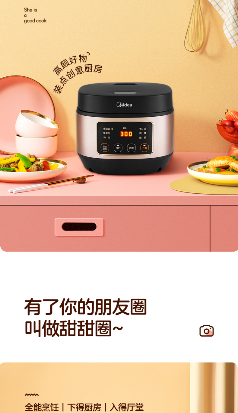 美的电饭煲底盘加热智能自动3L不粘锅聚能釜定时预约烧汤烧饭煮粥蛋糕MB-AFB3061R