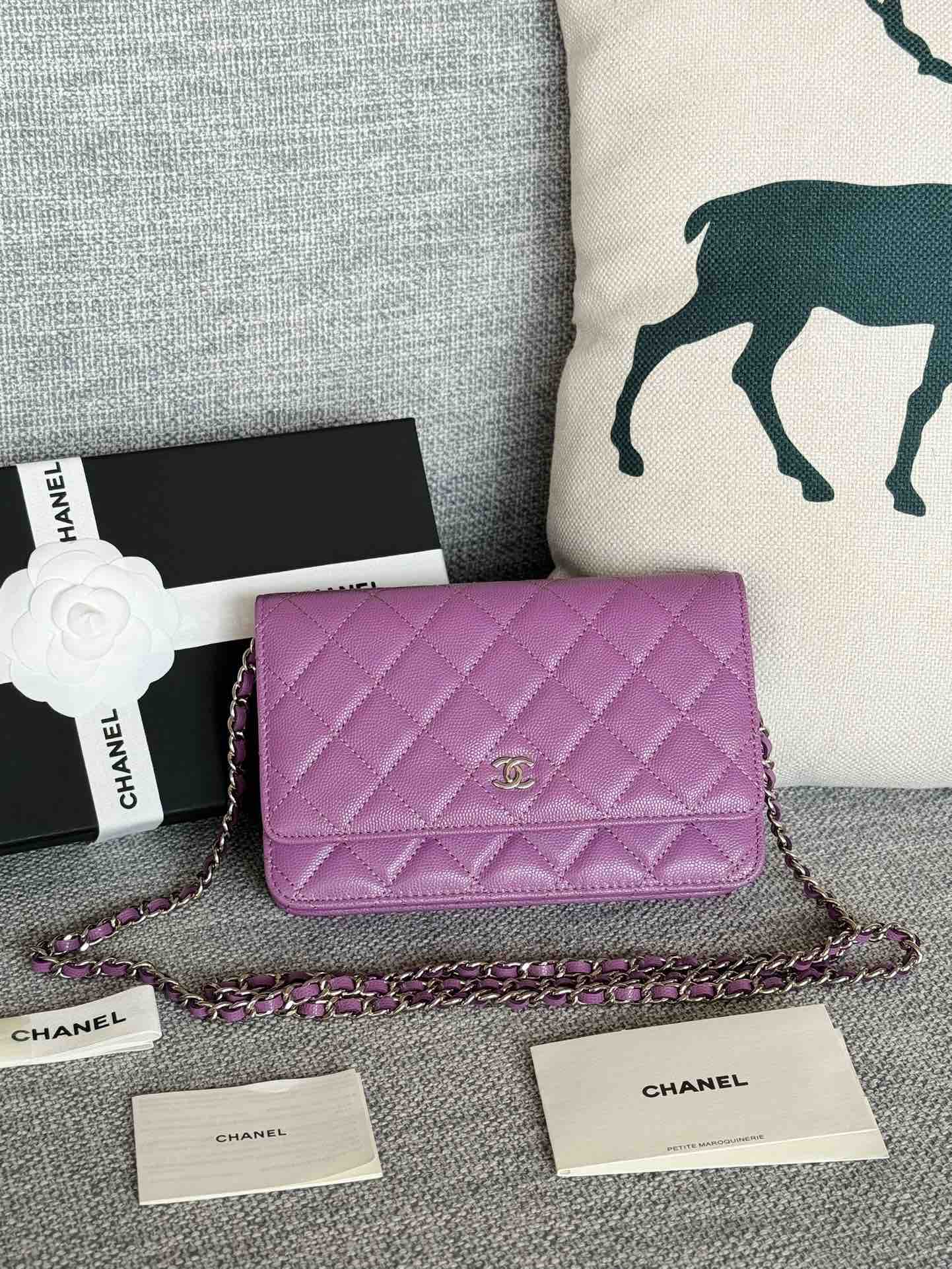 香奈儿woc链条包🉐️牛皮-紫色银扣(⚠️细球纹)
