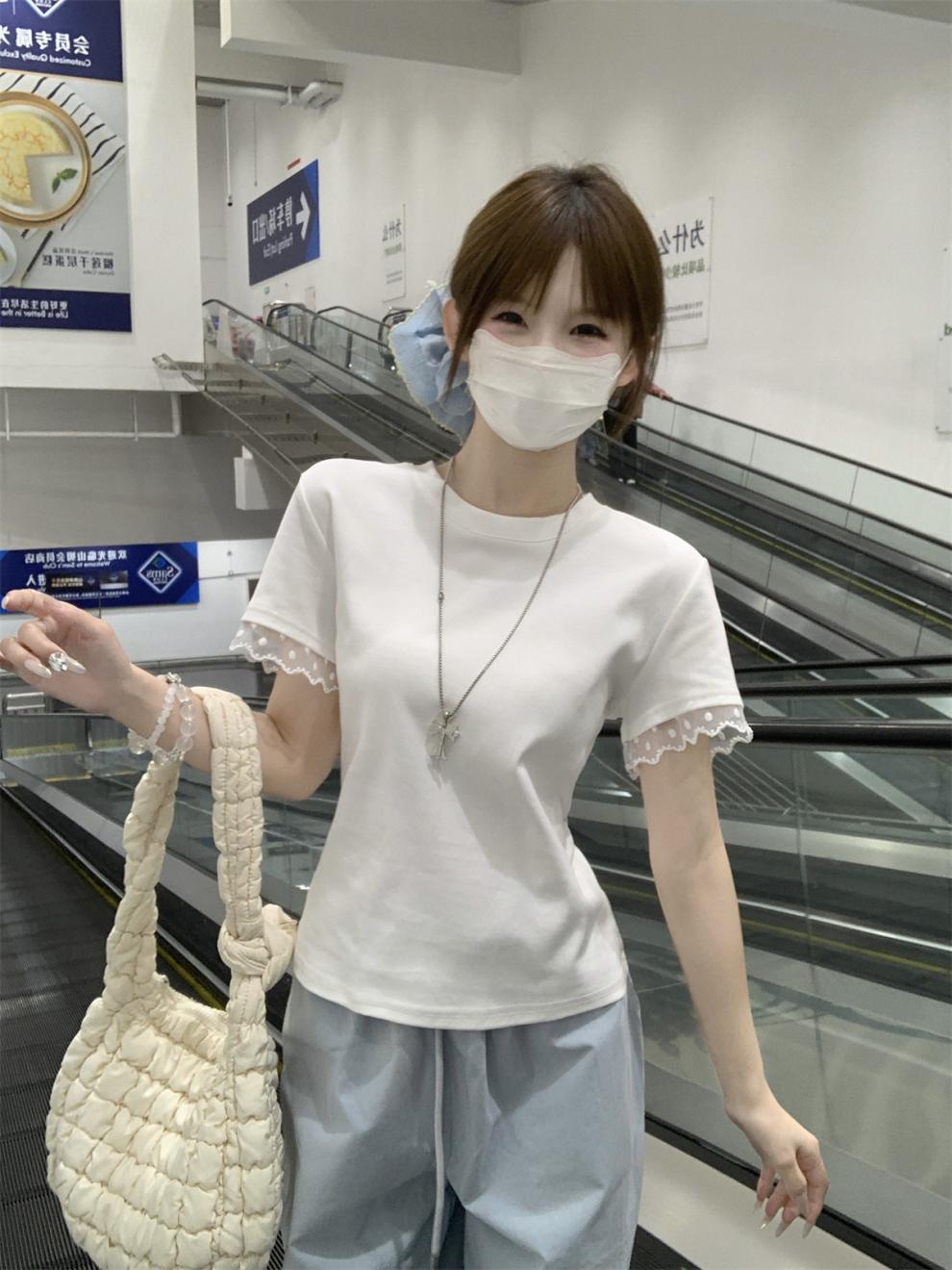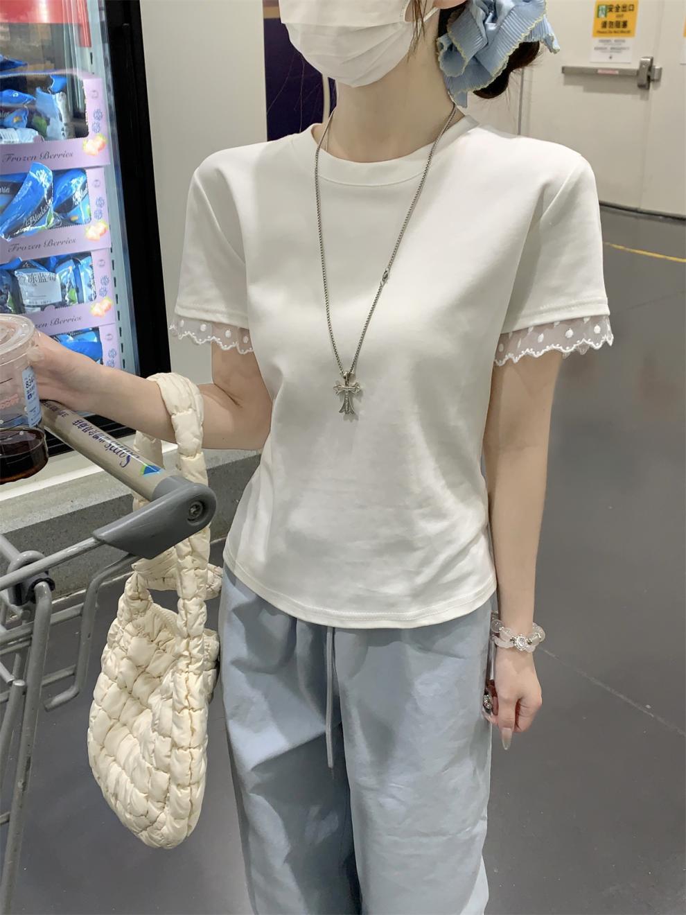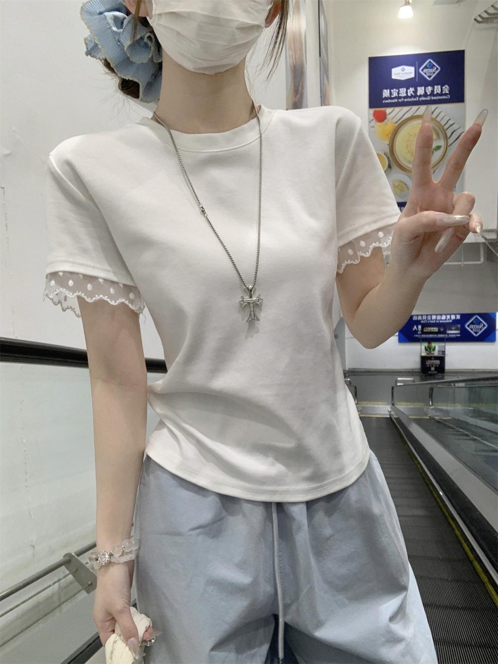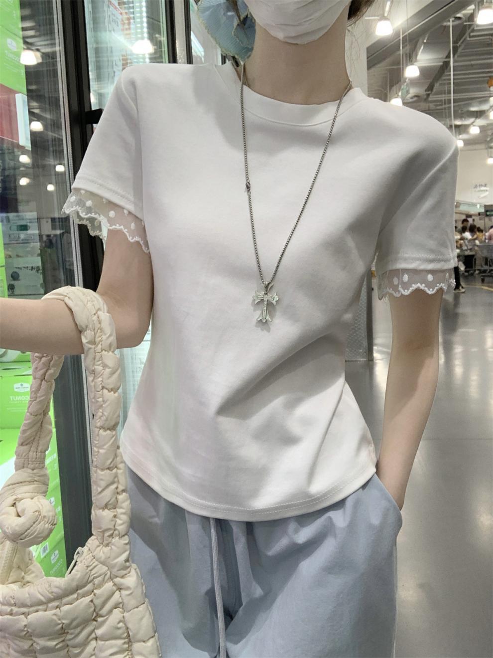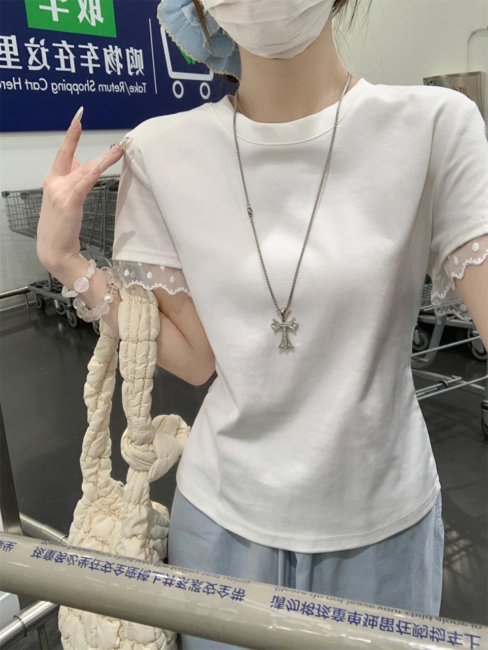 <曾小咸推荐> 蕾丝袖边拼接纯棉短袖T 日常109/件 活动价79.99/件!!