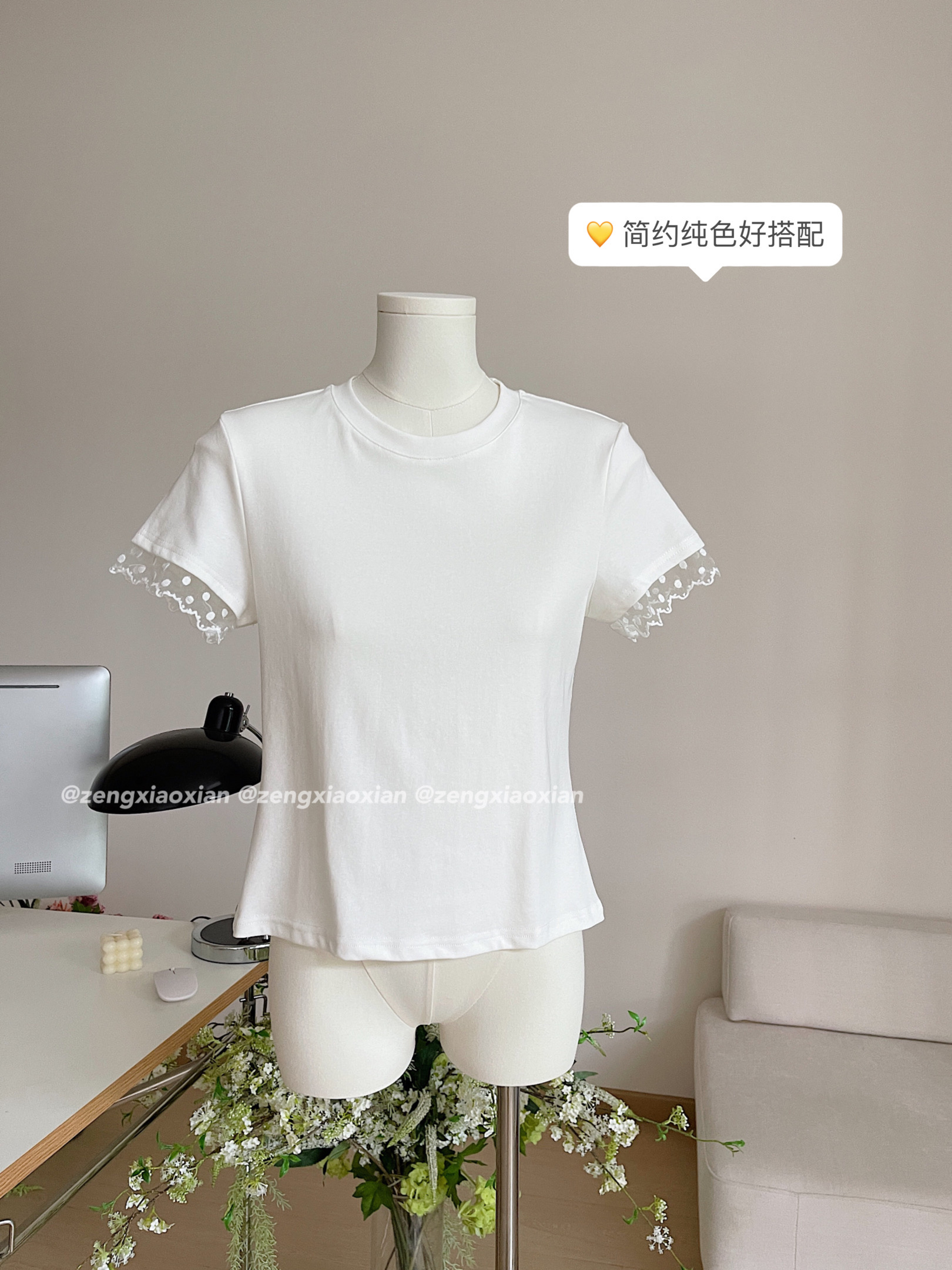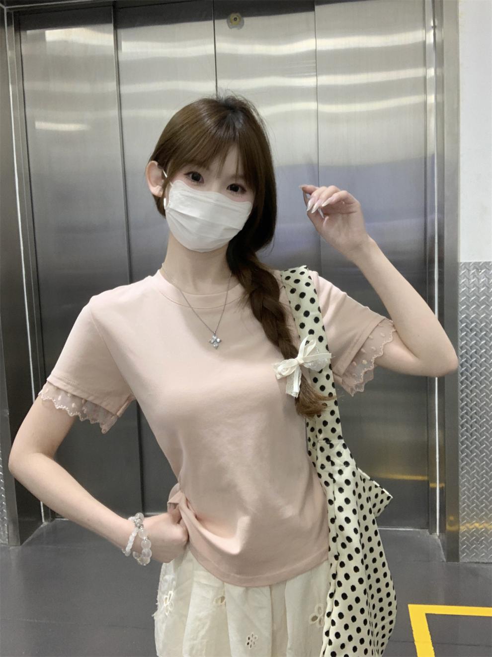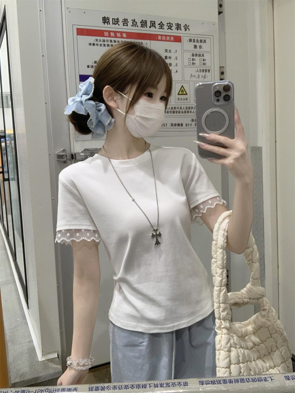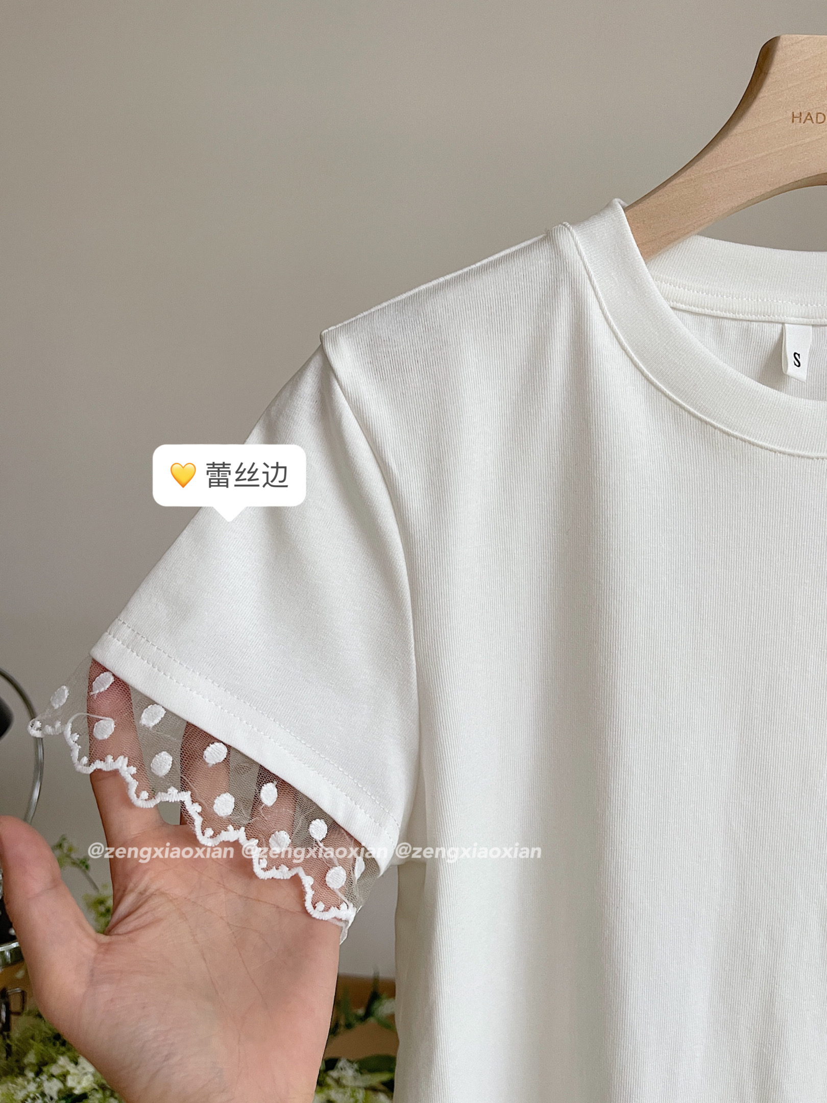 <曾小咸推荐> 蕾丝袖边拼接纯棉短袖T 日常109/件 活动价79.99/件!!