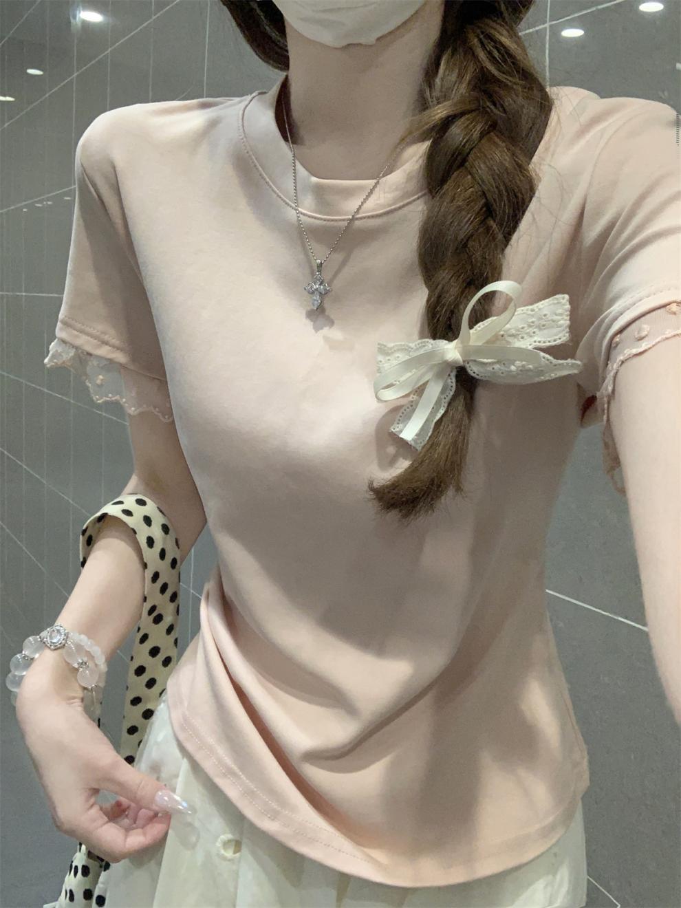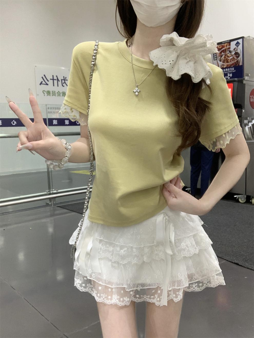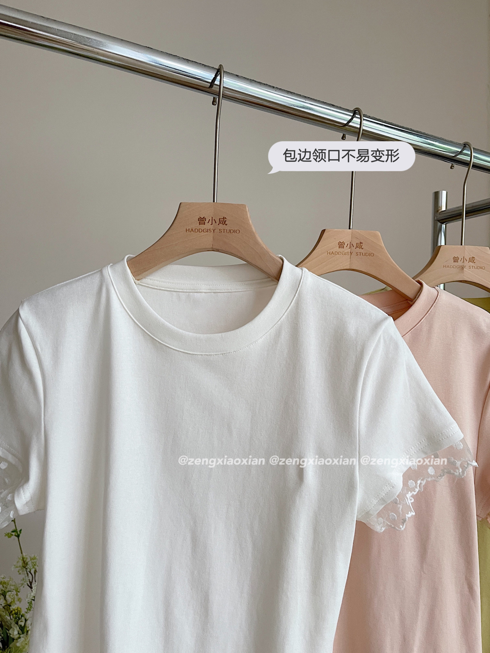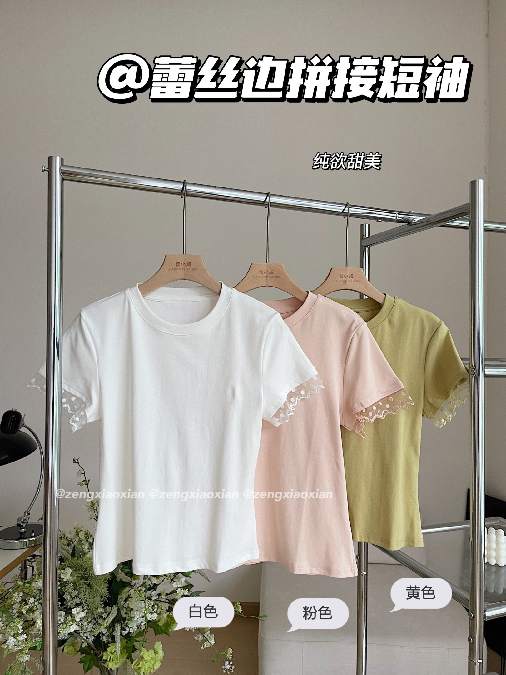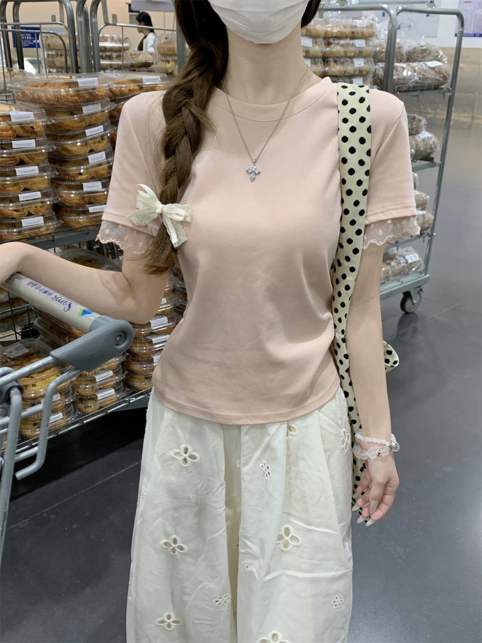 <曾小咸推荐> 蕾丝袖边拼接纯棉短袖T 日常109/件 活动价79.99/件!!