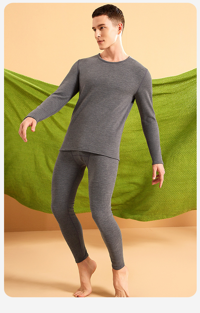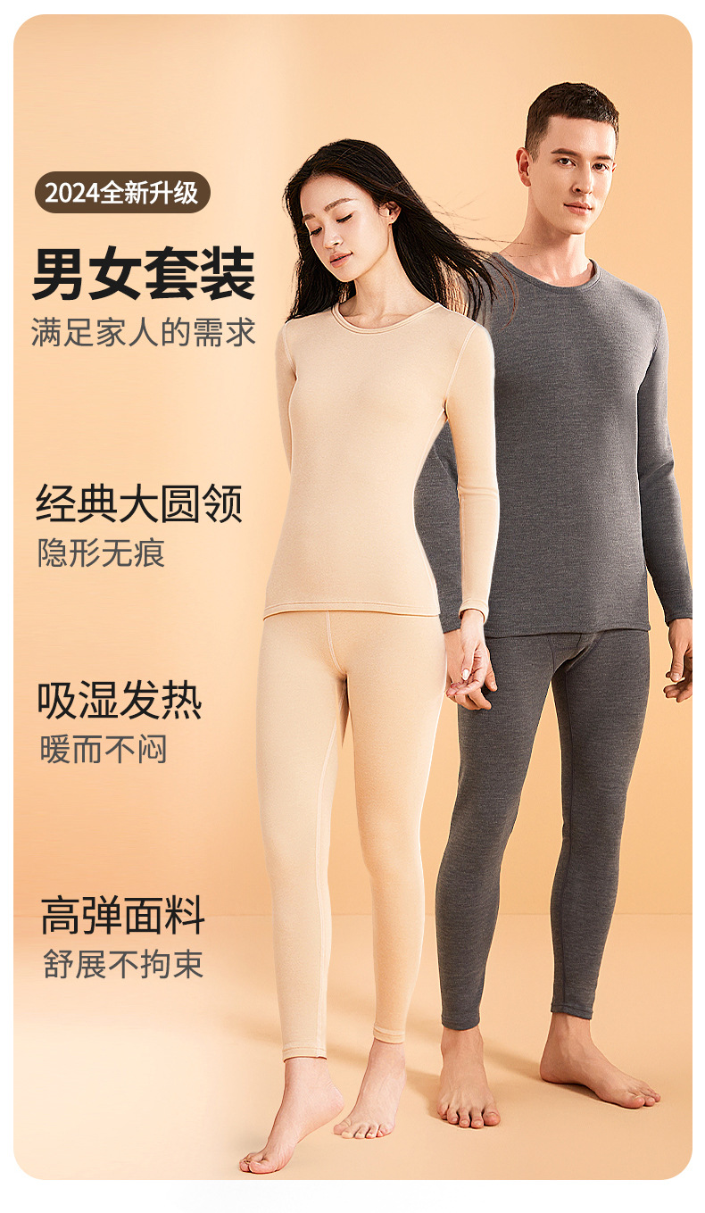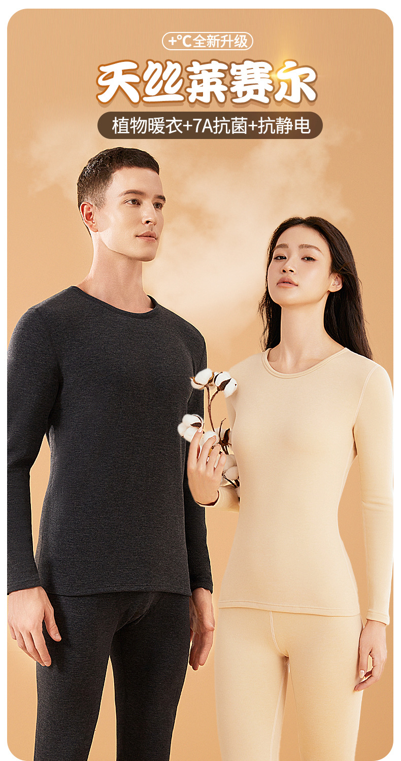 「男女套装!植物暖衣」莱赛尔天丝德绒情侣保暖内衣女蚕丝秋衣秋裤男士加绒保暖套装