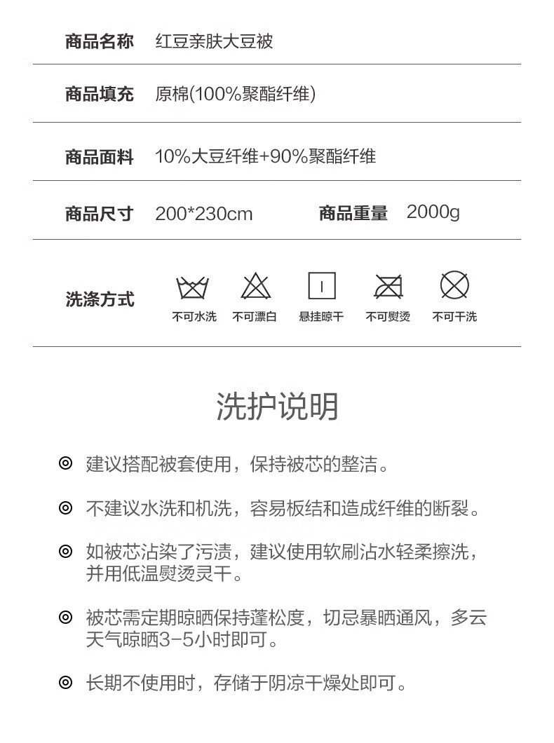 HONGDOU红豆亲肤大豆被HD-DB230111 200*230cm