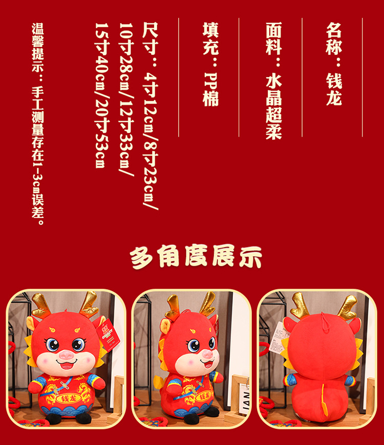 龙年玩偶娃娃毛绒玩具 年会礼品袋 摆件装饰 婚礼抛洒
